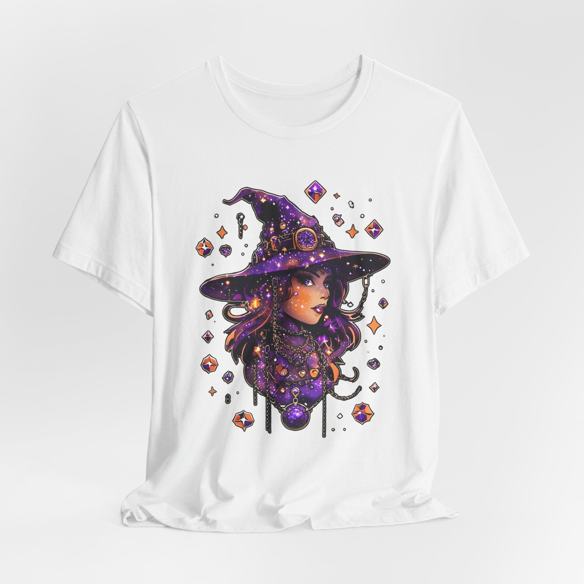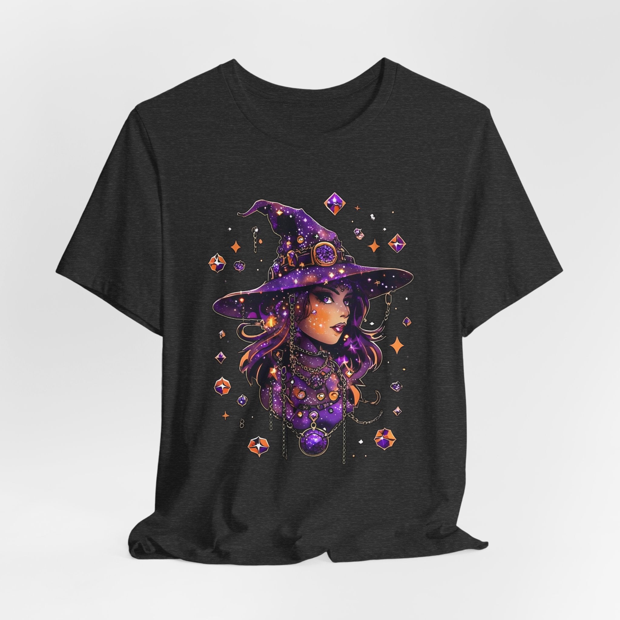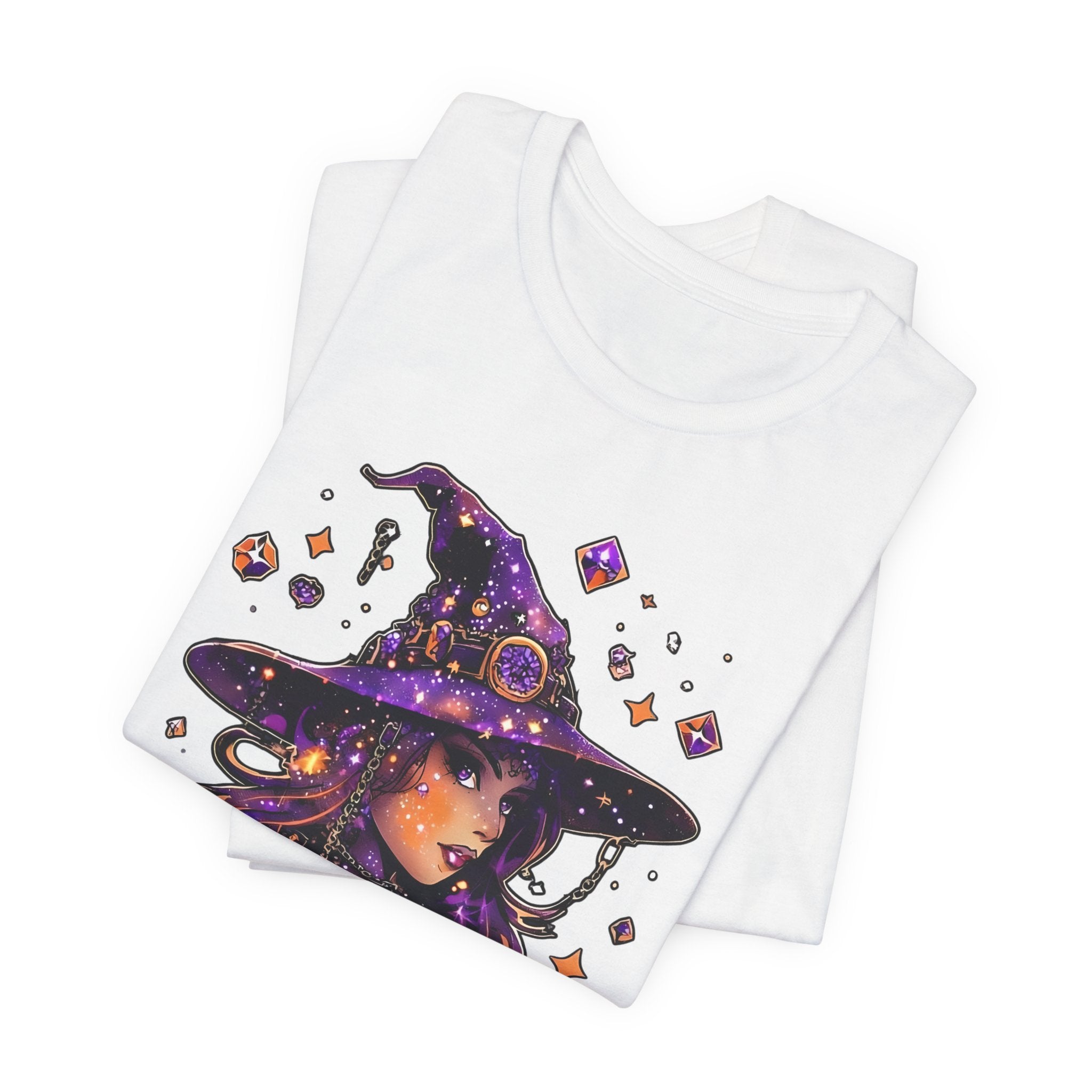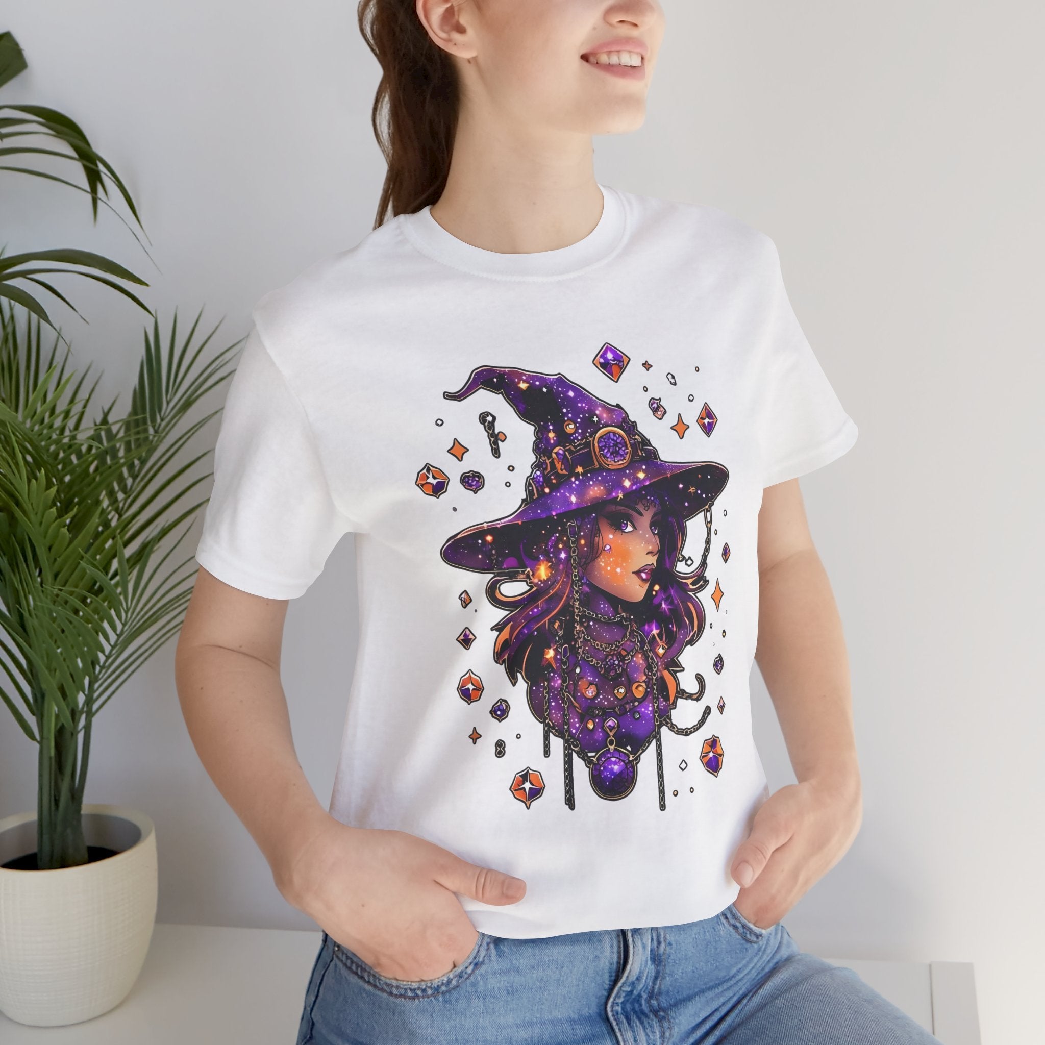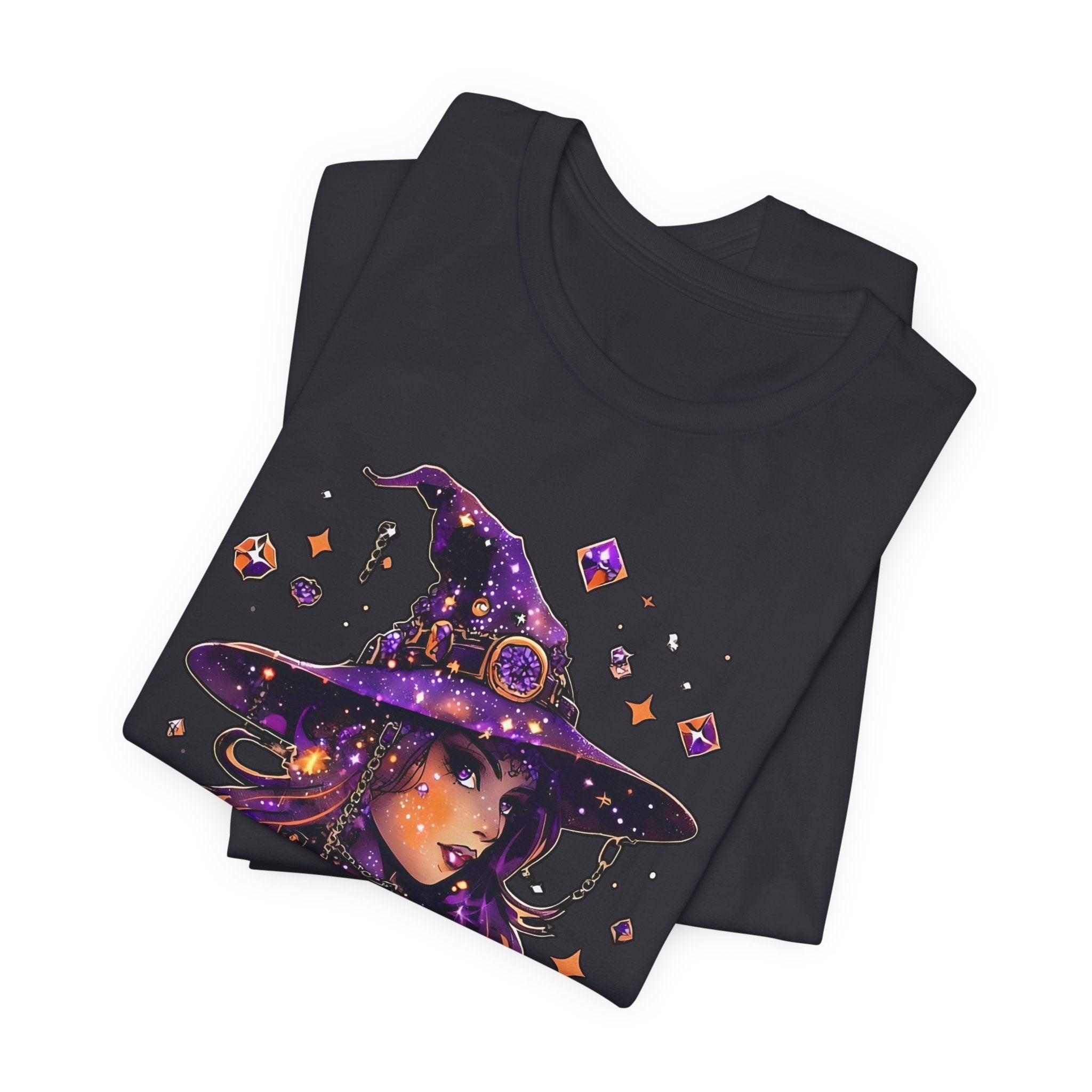Embrace your unique style with this eye-catching unisex jersey short sleeve tee. Designed for comfort and ease, this tee is perfect for casual outings, festive gatherings, or cozy nights in. The striking graphic features a whimsical witch, making it an ideal fit for Halloween celebrations, and a great gift for anyone who loves magic and mystique. Made from soft, breathable fabric, it offers a relaxed fit that looks great on everyone. Perfect for those who appreciate both style and comfort, this tee can be layered or worn independently, making it a versatile addition to any wardrobe.