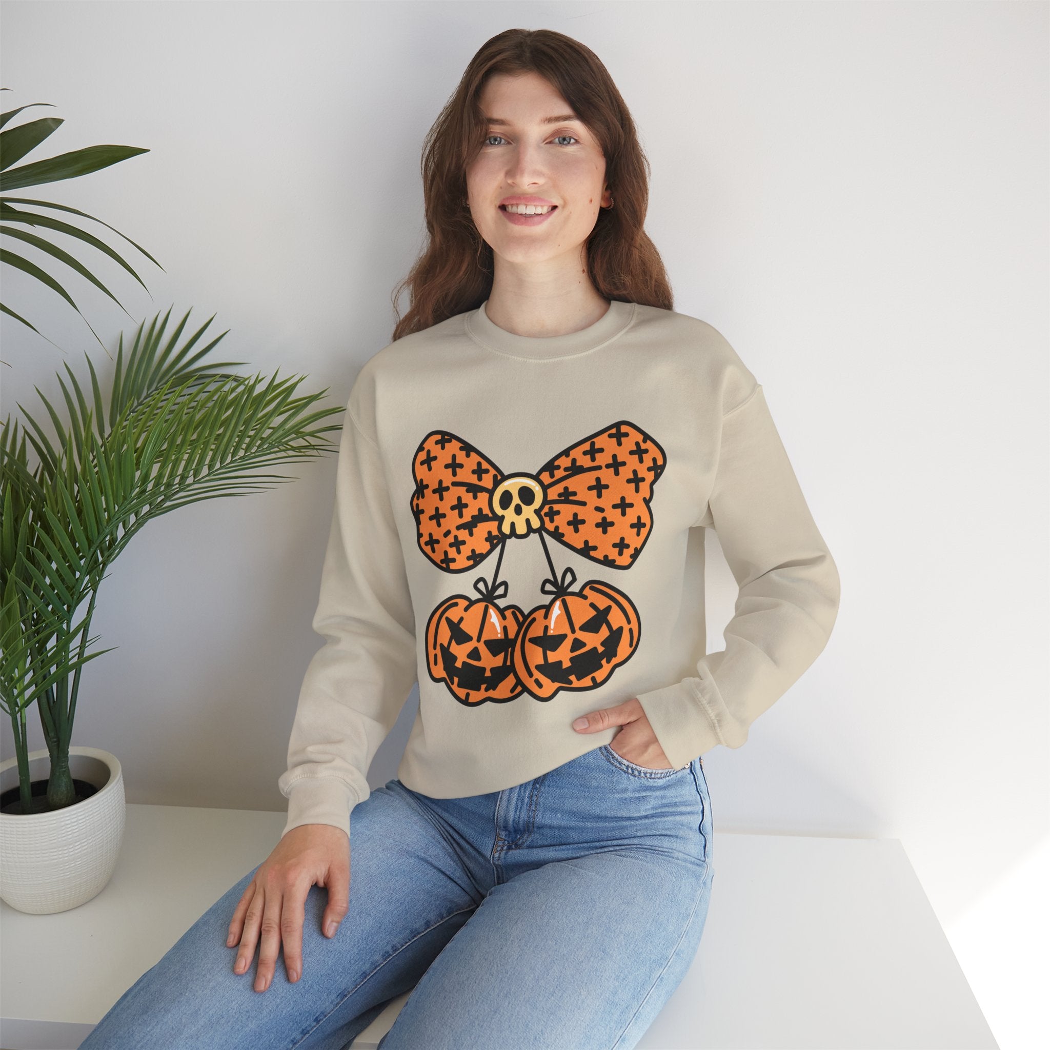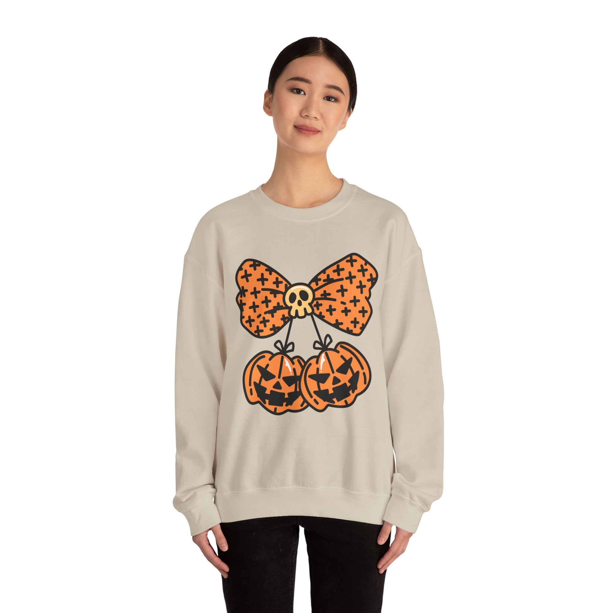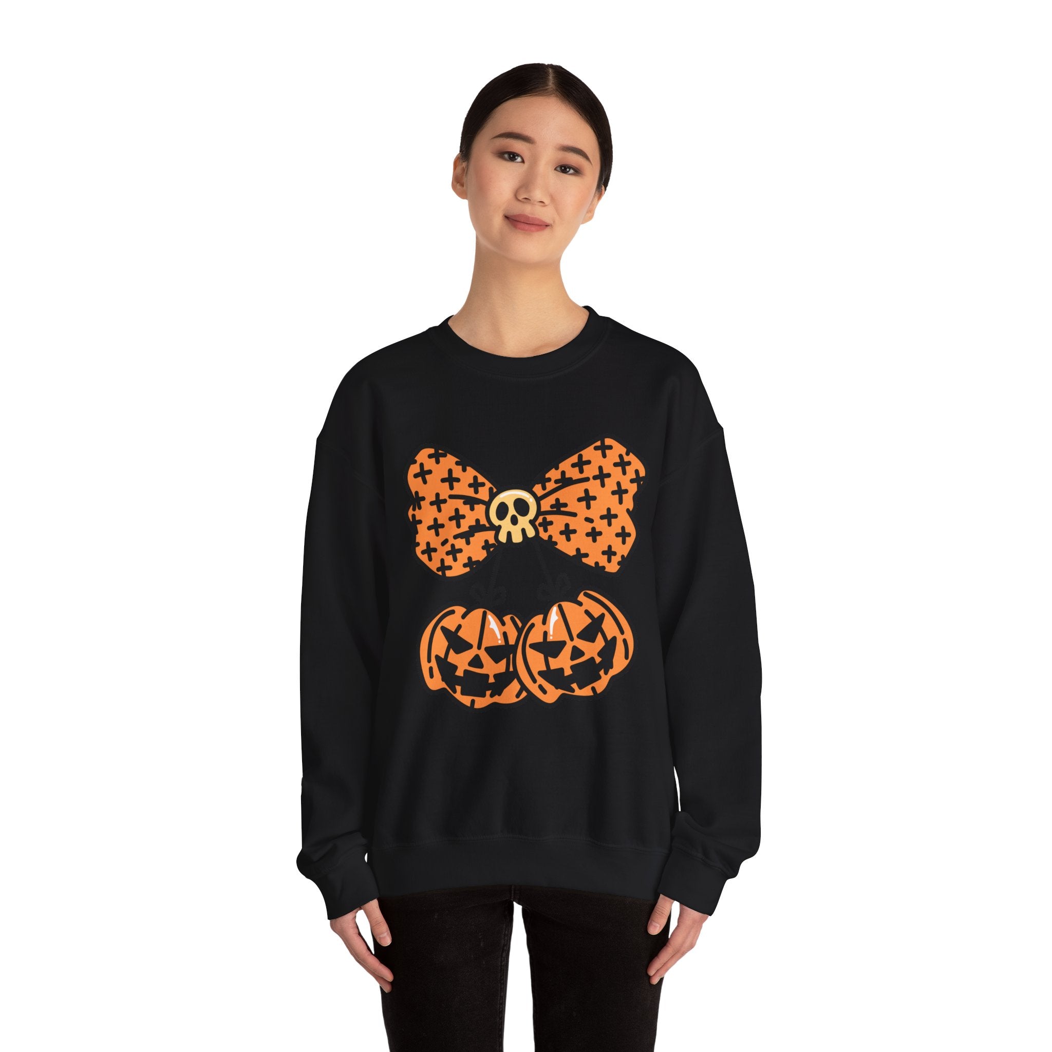 Halloween Pumpkin Bow Sweatshirt, Fall Fashion, Cozy Crewneck, Unisex Sweatshirts, Holiday Apparel, Seasonal Gift