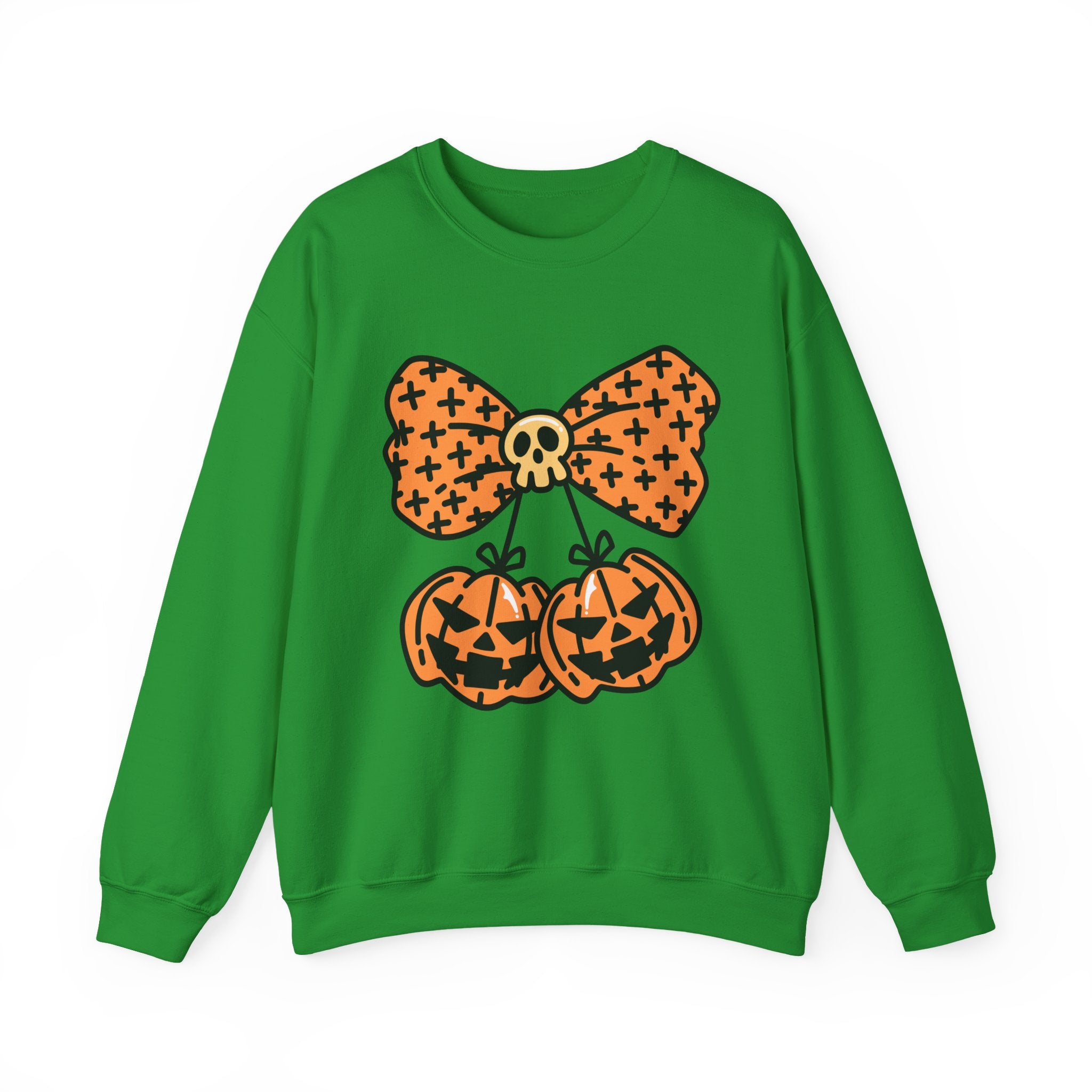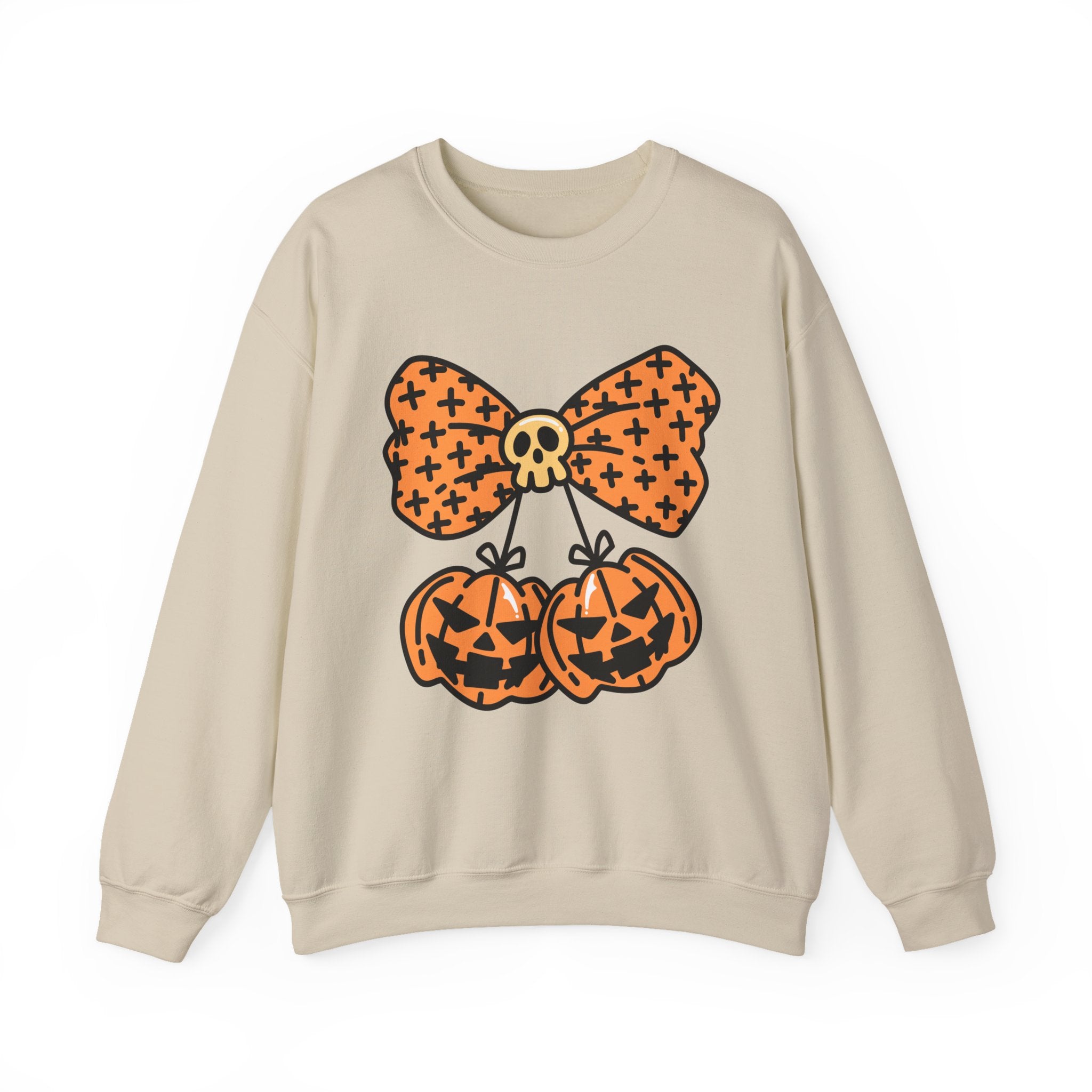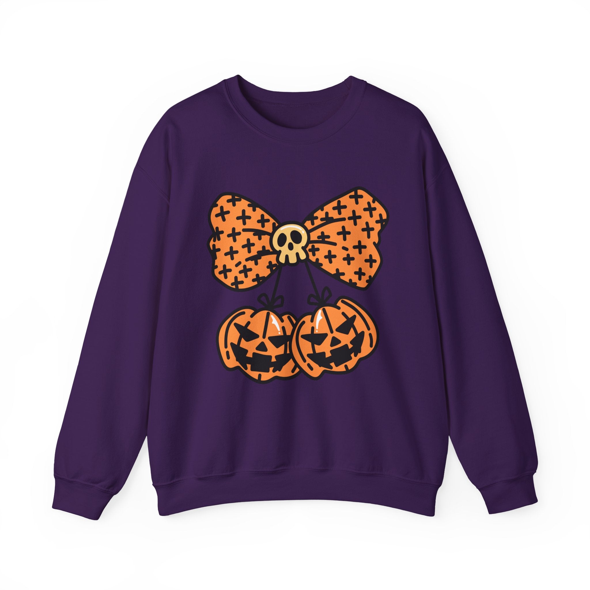 Halloween Pumpkin Bow Sweatshirt, Fall Fashion, Cozy Crewneck, Unisex Sweatshirts, Holiday Apparel, Seasonal Gift