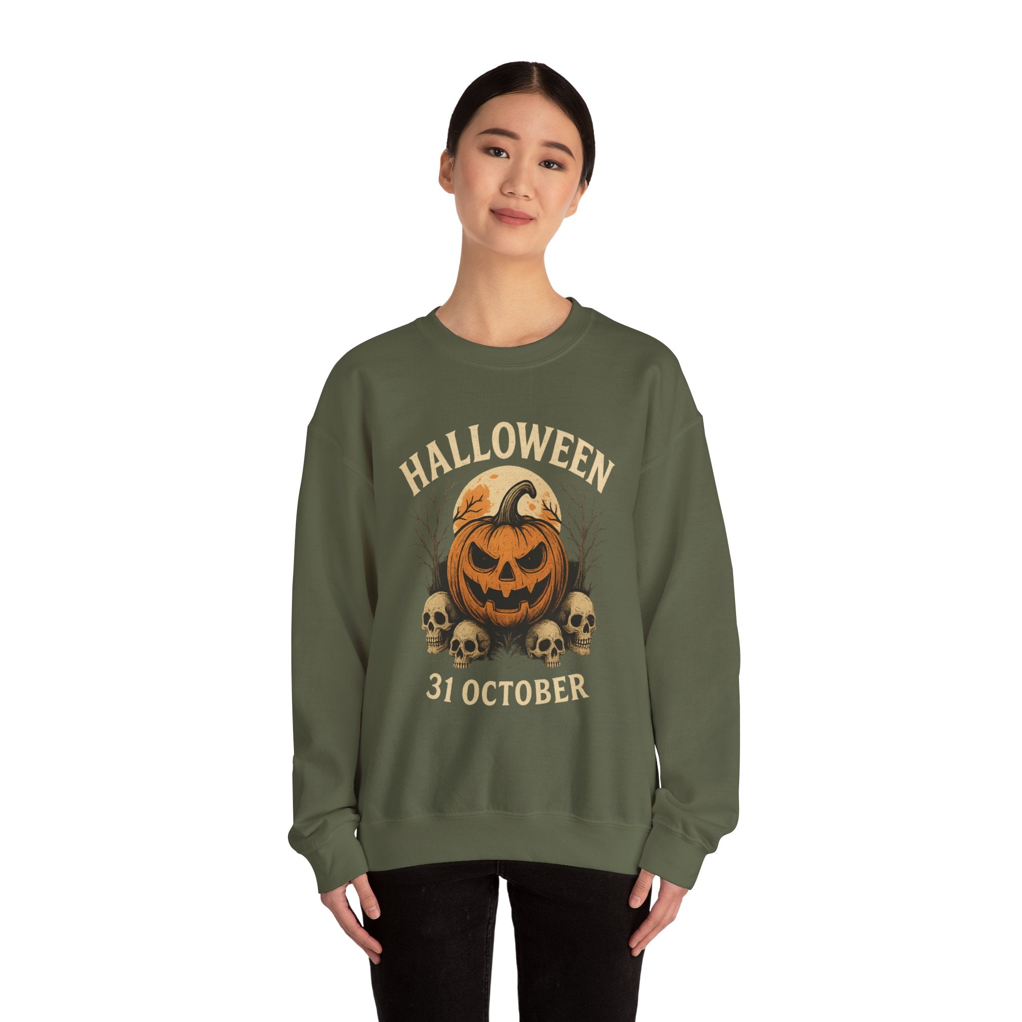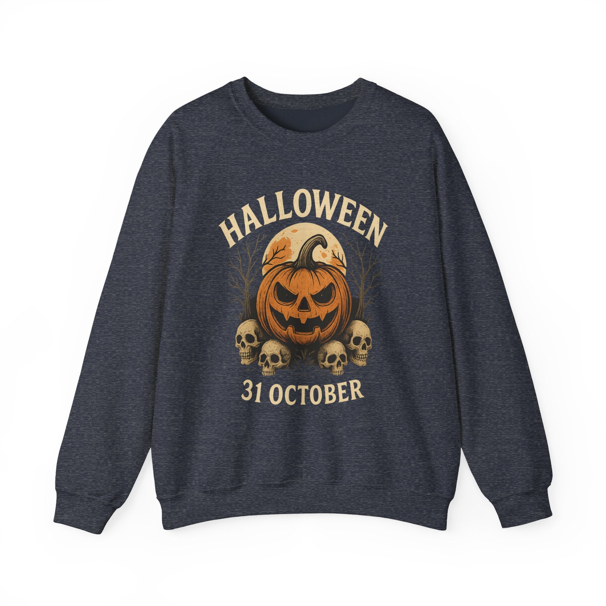 Stay cozy and stylish this autumn with our Unisex Heavy Blend™ Crewneck Sweatshir by Gildan . Perfect for crisp Halloween nights, this sweatshirt features a striking design that captures the festive spirit of October 31st. Whether you're out trick-or-treating or hosting a spooky gathering at home, this piece brings a fun yet comfortable vibe to your wardrobe. Ideal for all adults who embrace the Halloween excitement, it makes a thoughtful gift for friends and family who love to celebrate the season. Suitable for casual outings, themed parties, or cozy nights in, this sweatshirt is a must-have for this festive time of year.