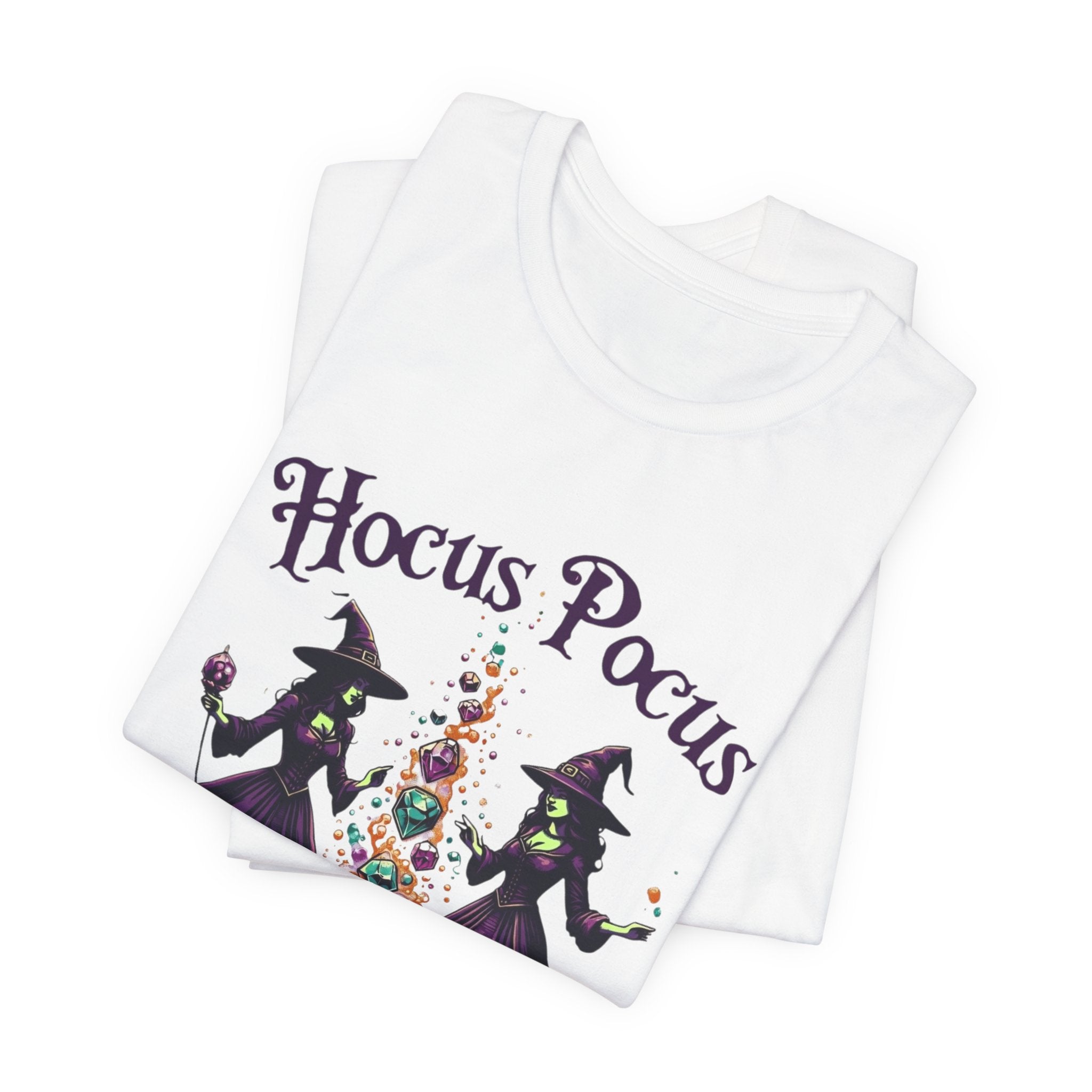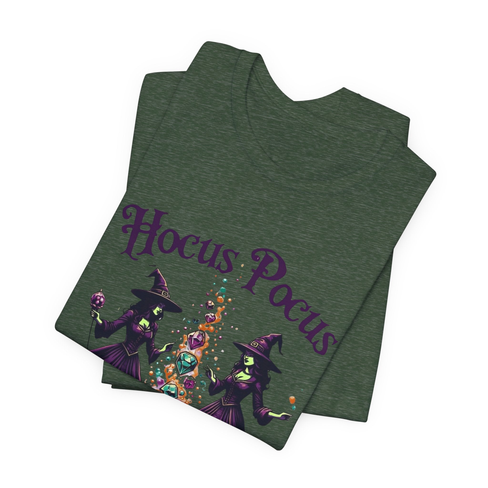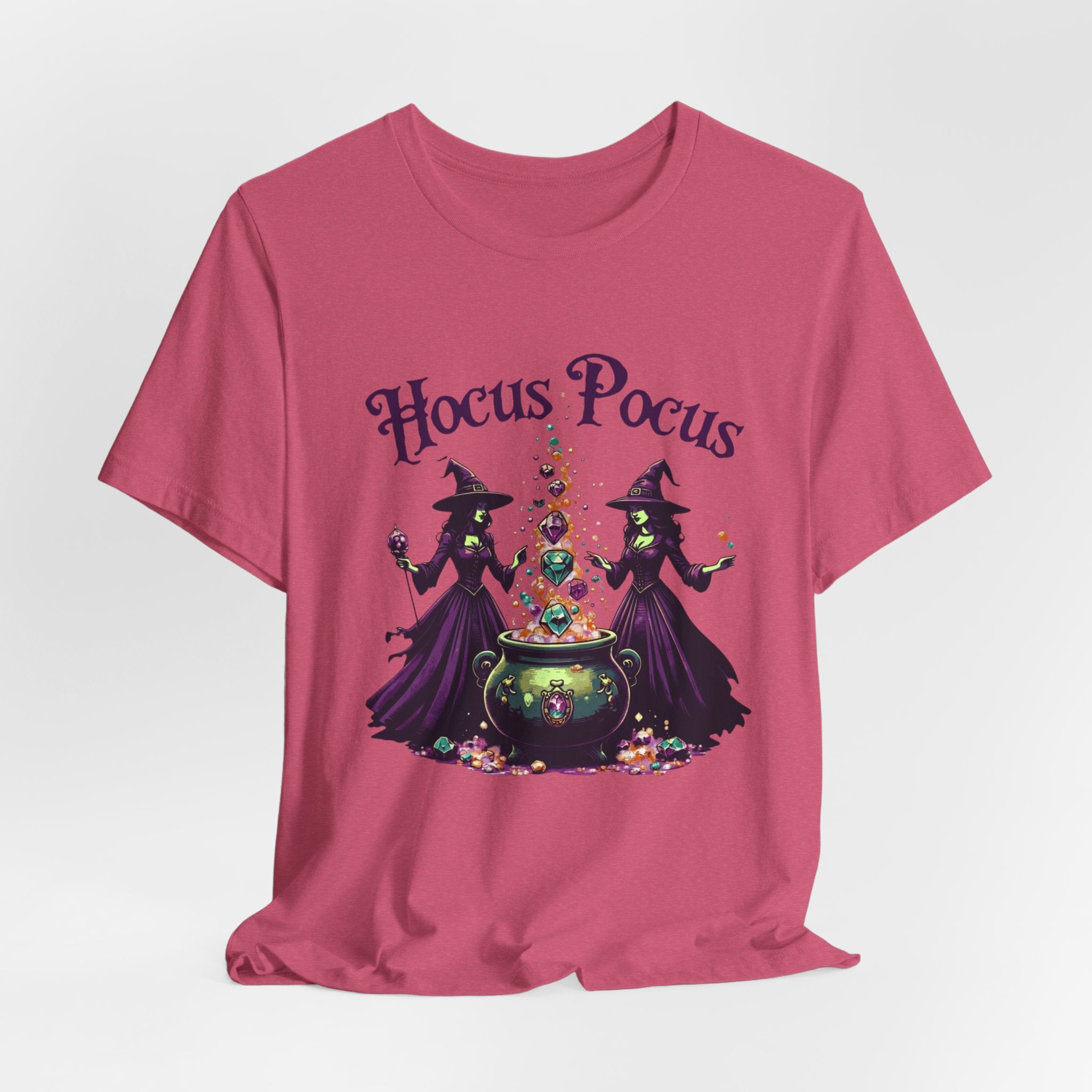 Experience the spirit of Halloween with our Unisex Jersey Short Sleeve Tee. This delightful shirt features a playful "Hocus Pocus" design, perfect for adding a touch of whimsy to your autumn wardrobe. The lightweight, breathable fabric ensures comfort during chilly nights of trick-or-treating or festive gatherings. Ideal for witches, wizards, and Halloween enthusiasts alike, this tee invites fun and magic into your life. Whether worn at haunted house parties, Halloween celebrations, or cozy movie nights, it embodies a charming vibe that will enchant everyone around you. Great as a thoughtful gift for those who love all things spooky, it's perfect for birthdays, Halloween, or just because!