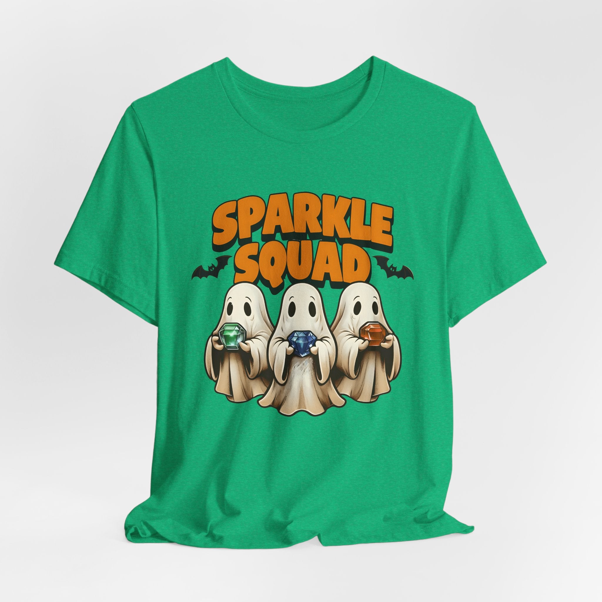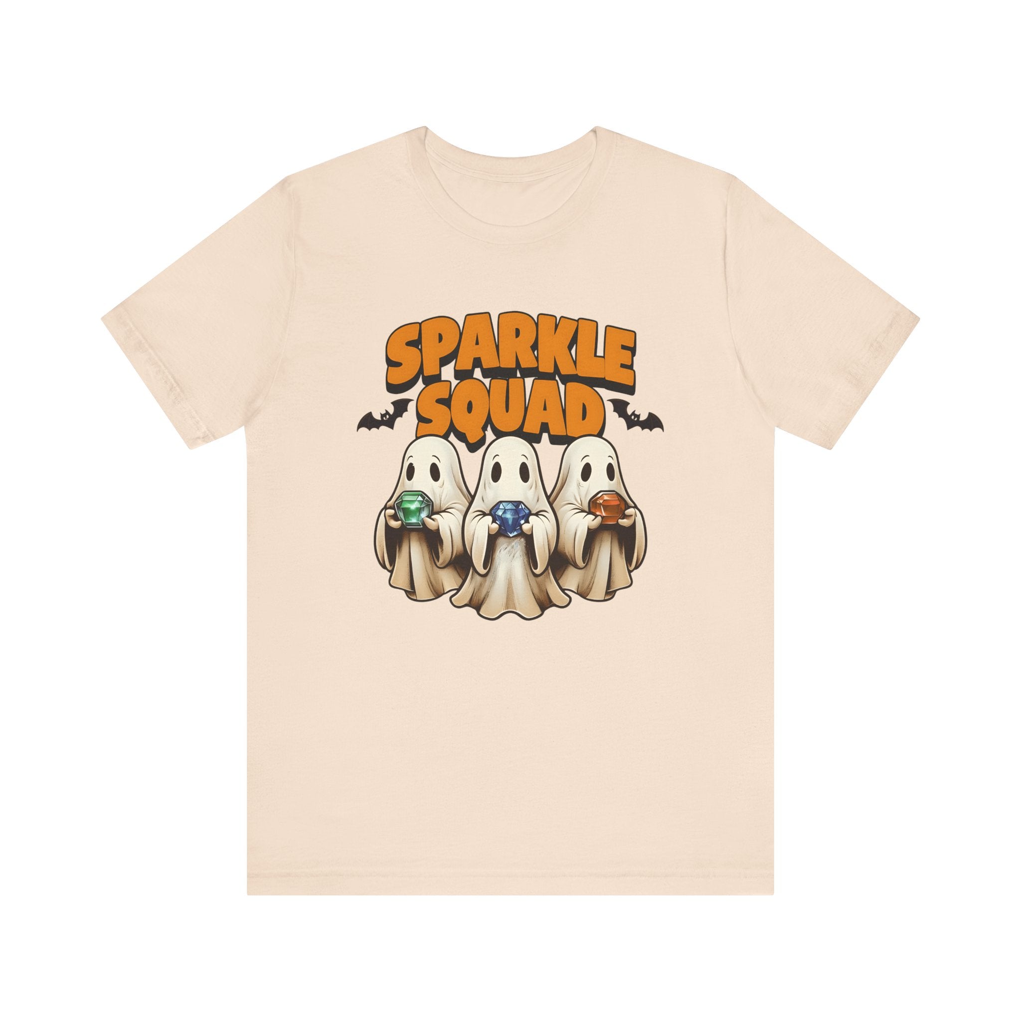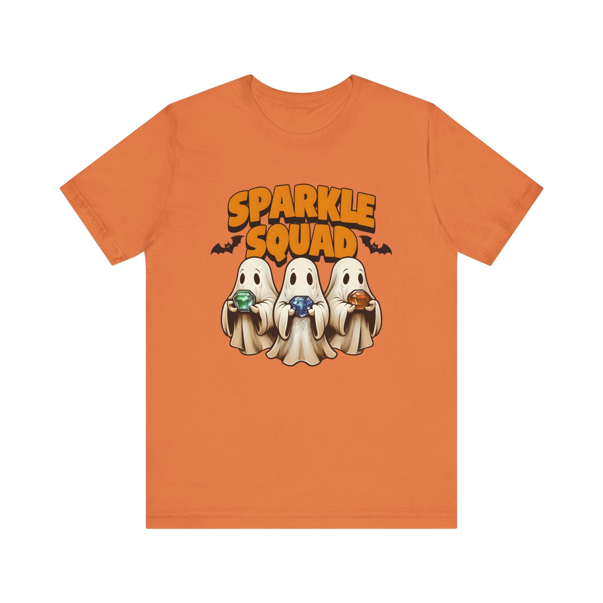 Embrace the spooky vibes with this adorable Unisex Jersey Short Sleeve Tee, perfect for the Halloween season. Featuring a charming 'Sparkle Squad' graphic, this tee captures a playful essence that brings joy to both kids and adults alike. It's an ideal choice for Halloween parties, trick-or-treating, or casual outings with friends. This festive addition to your wardrobe combines style and comfort, making it suitable for everyday wear or special celebrations. Whether you're a ghost lover or just want to showcase your fun side, this tee is designed for everyone who enjoys a touch of whimsy in their fashion. It's also a great gift for friends, family, or anyone looking to get into the Halloween spirit!