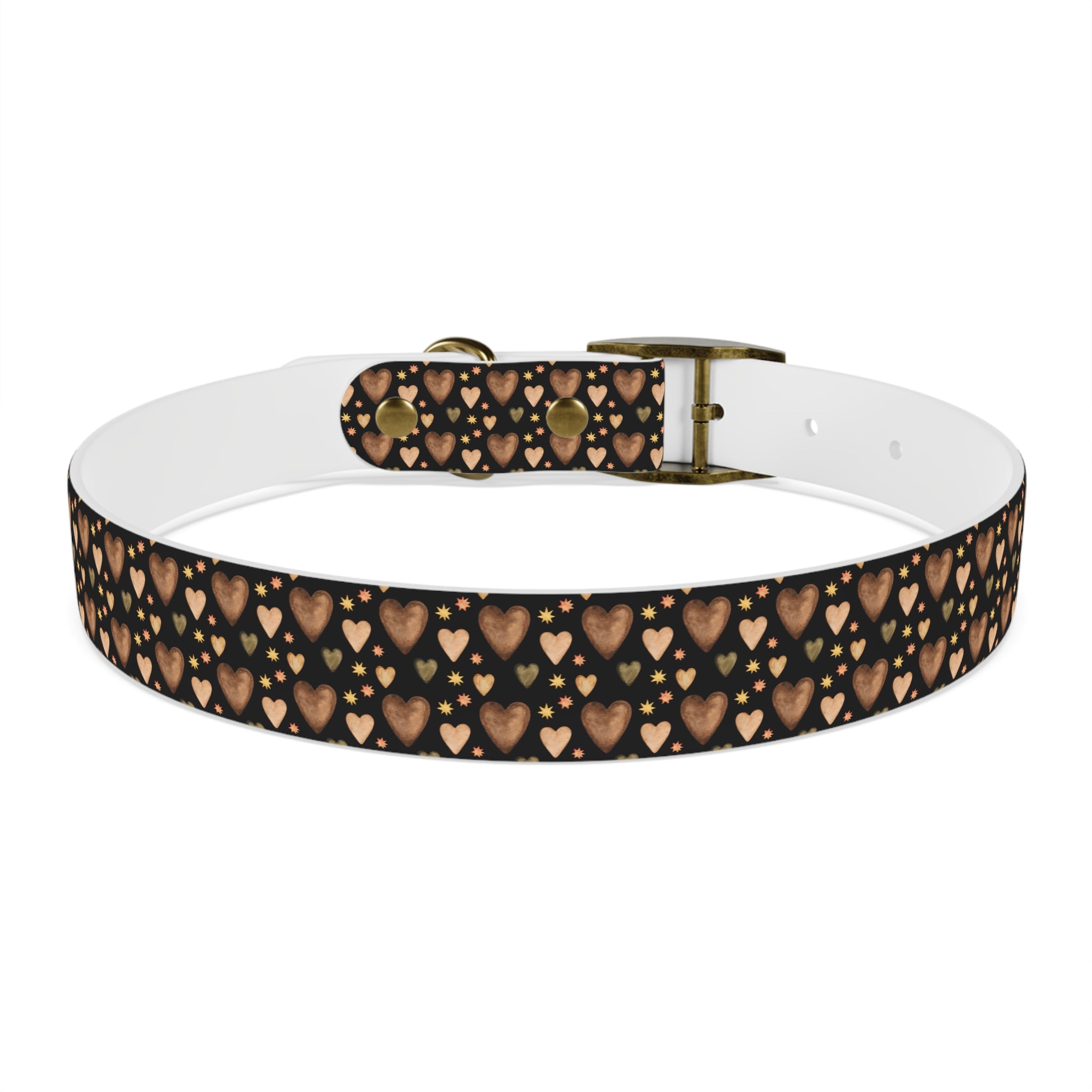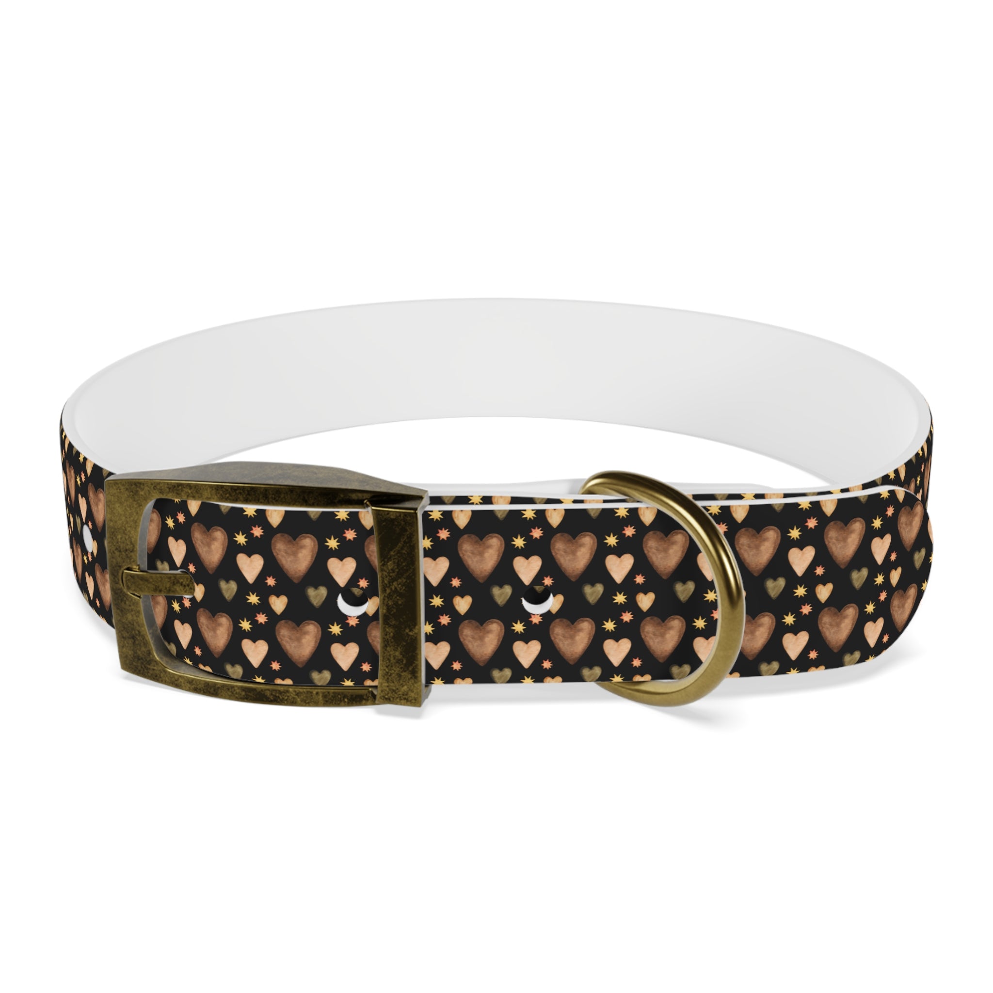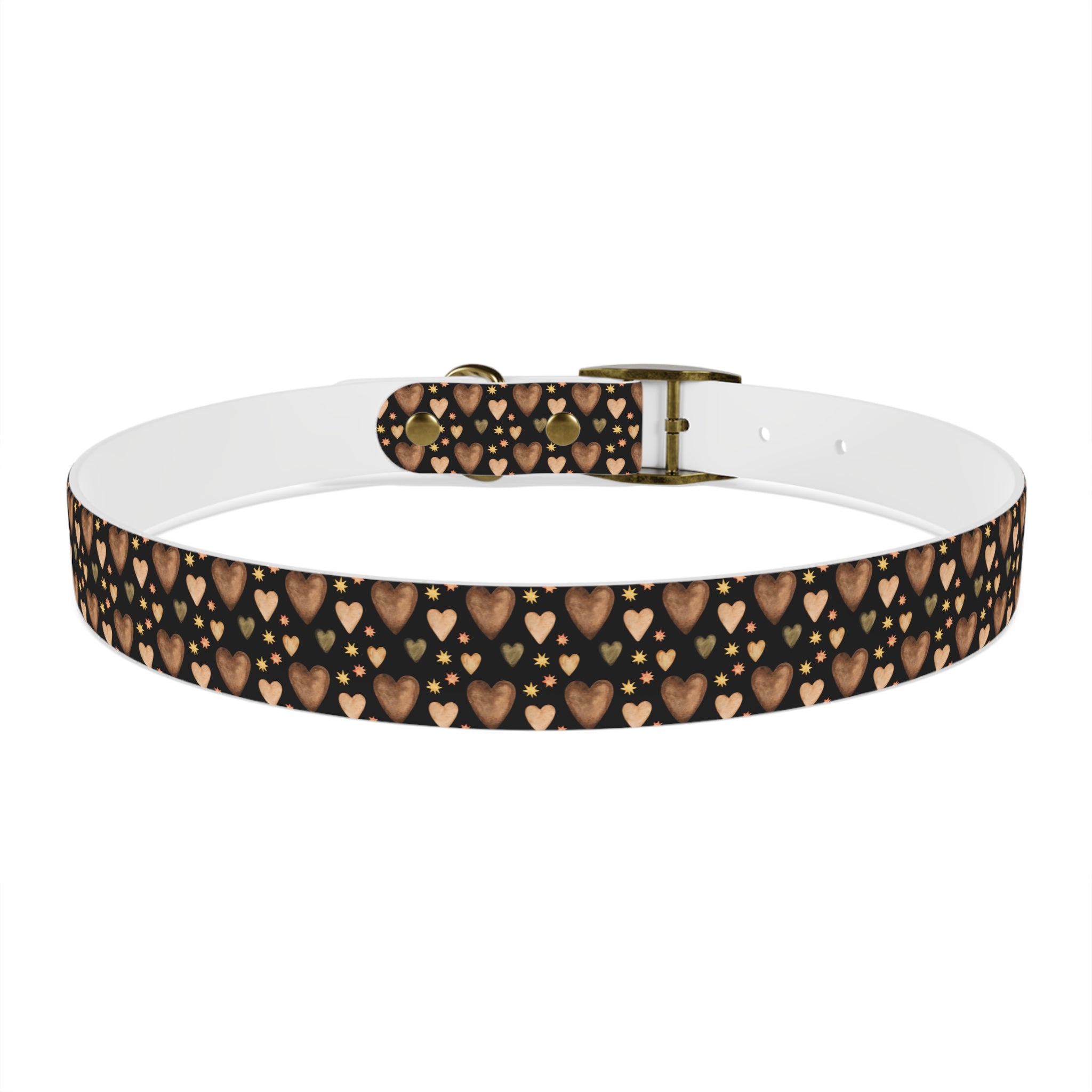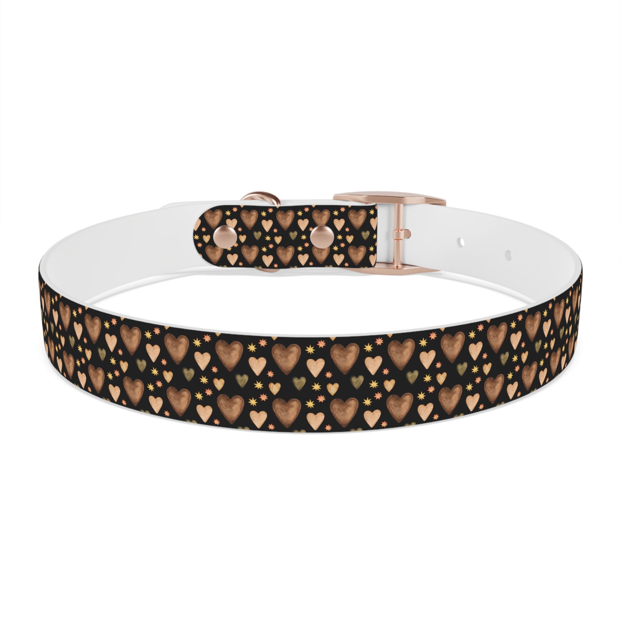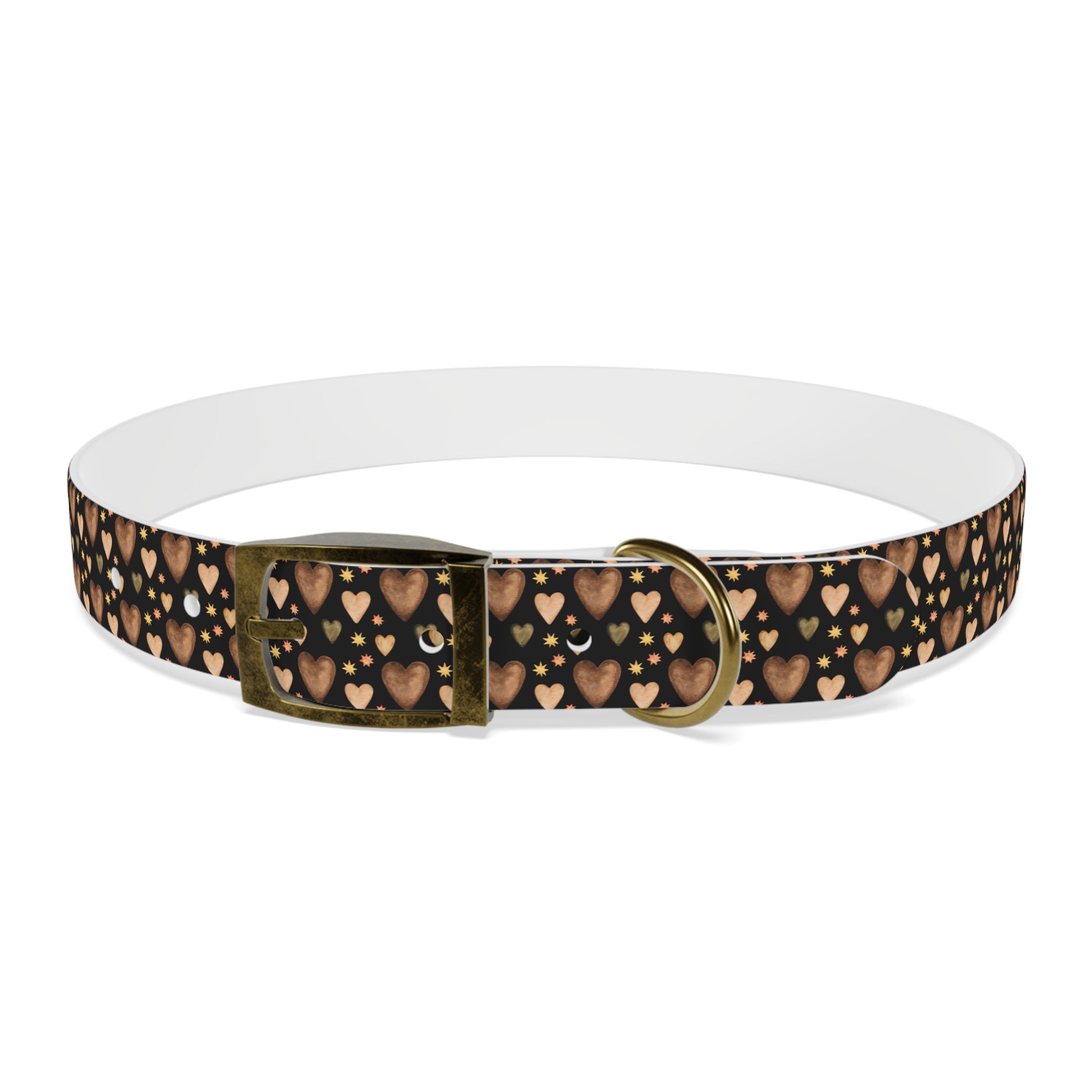 Make your pup part of the celebration with this stunning dog collar featuring Chocolate Hearts design. Perfect for weddings, engagements, Valentine’s Day, or any occasion where your furry friend deserves to shine. Crafted in the USA from advanced Thermo-Elastomer material, this collar is as durable as it is beautiful—odor-proof, stain-resistant, and hypoallergenic to keep your pet comfortable and stylish.