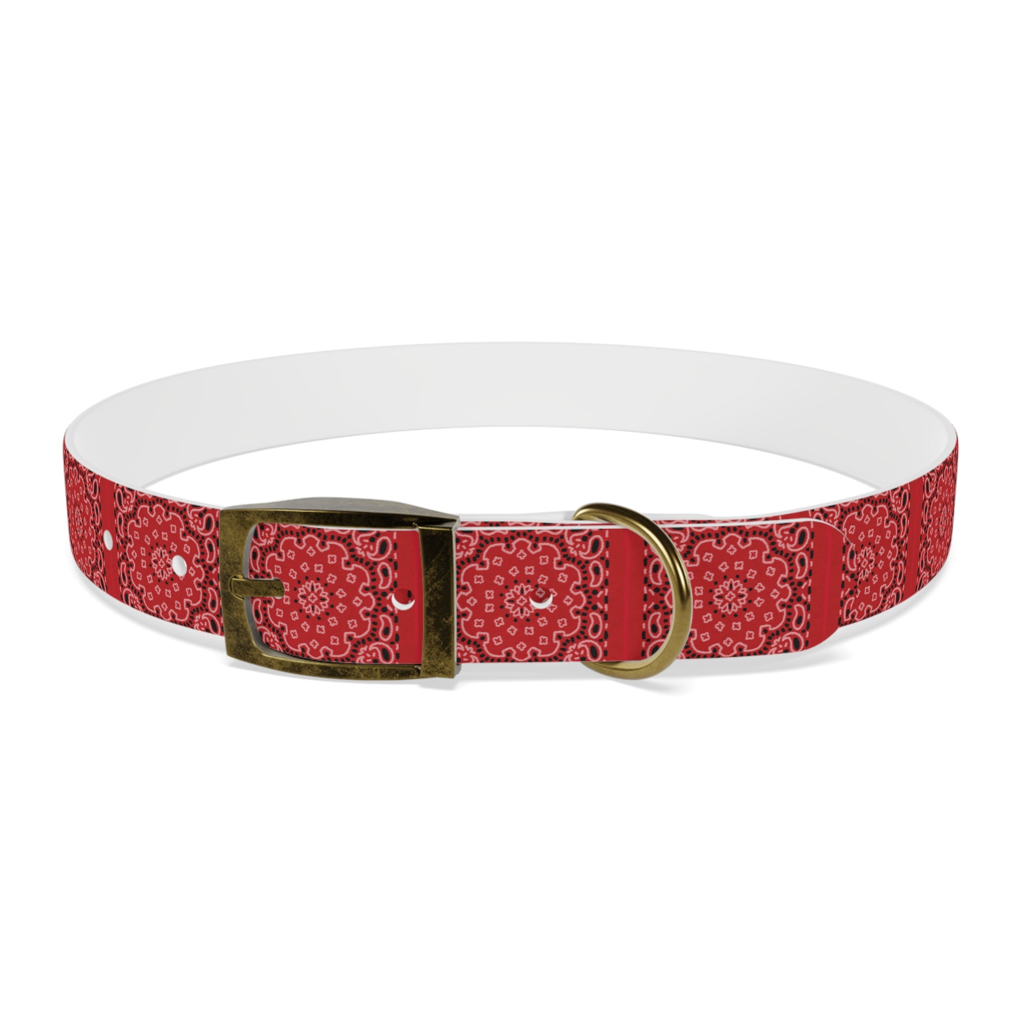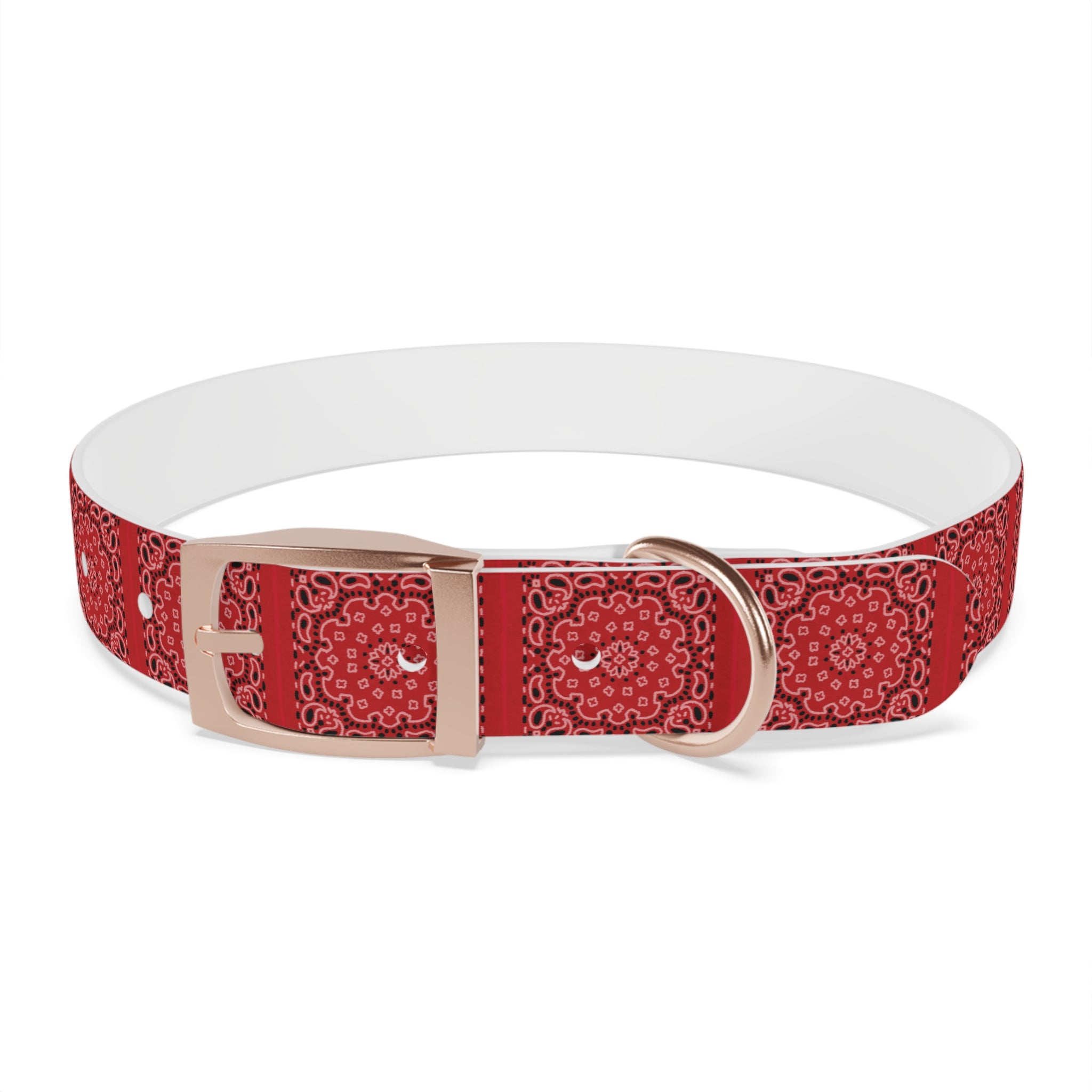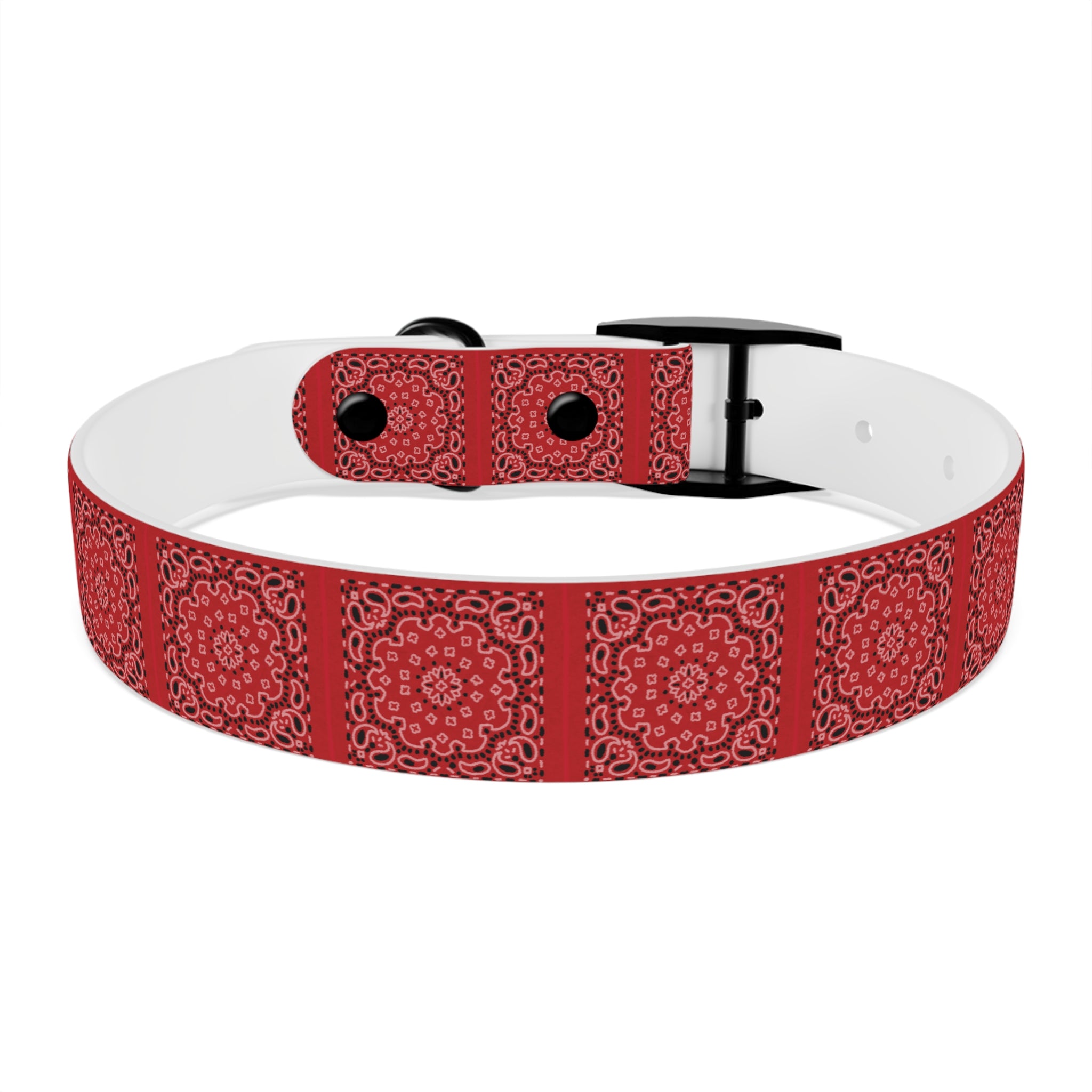 Add a touch of timeless charm to your pup’s look with this classic red bandana print dog collar! Whether for everyday wear, outdoor adventures, or special occasions, this collar combines rugged style with top-notch functionality. Made in the USA from advanced Thermo-Elastomer material, it’s odor-proof, stain-resistant, and hypoallergenic, keeping your furry friend comfortable while looking their best.