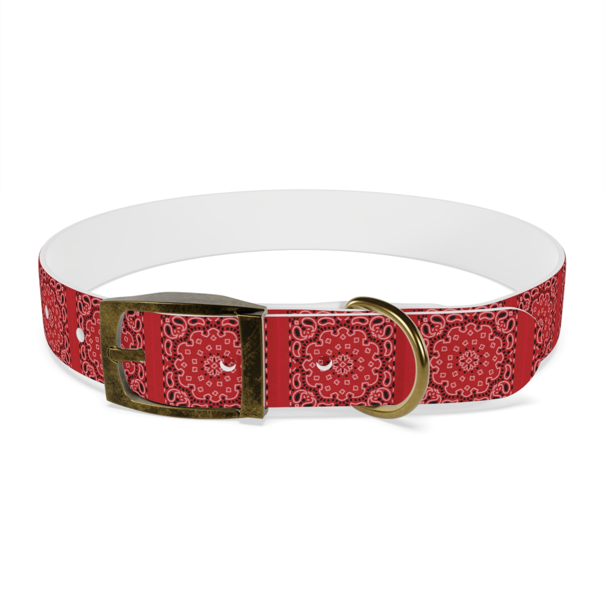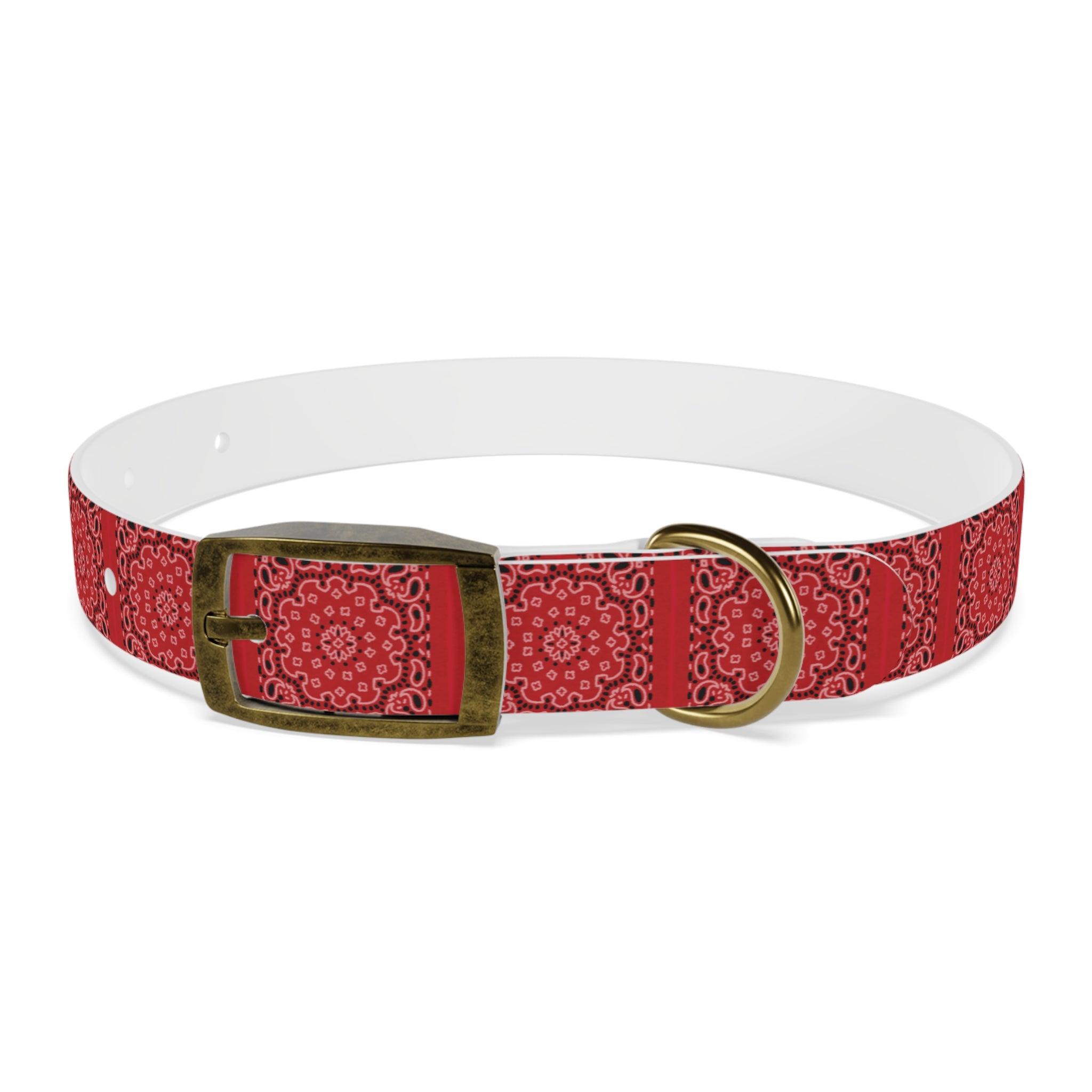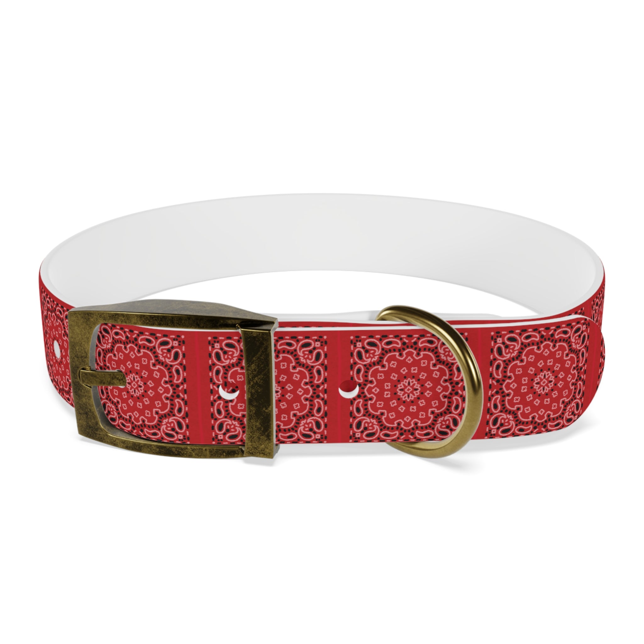 Add a touch of timeless charm to your pup’s look with this classic red bandana print dog collar! Whether for everyday wear, outdoor adventures, or special occasions, this collar combines rugged style with top-notch functionality. Made in the USA from advanced Thermo-Elastomer material, it’s odor-proof, stain-resistant, and hypoallergenic, keeping your furry friend comfortable while looking their best.