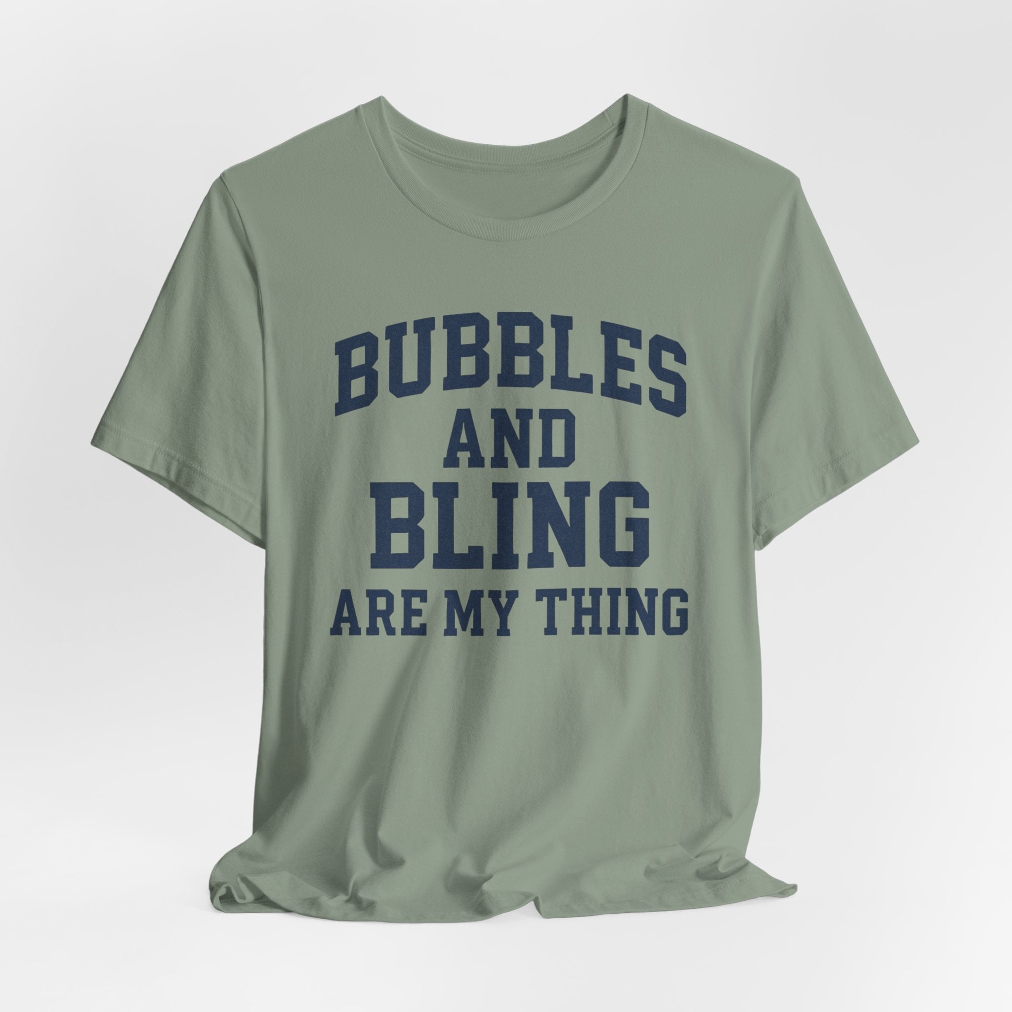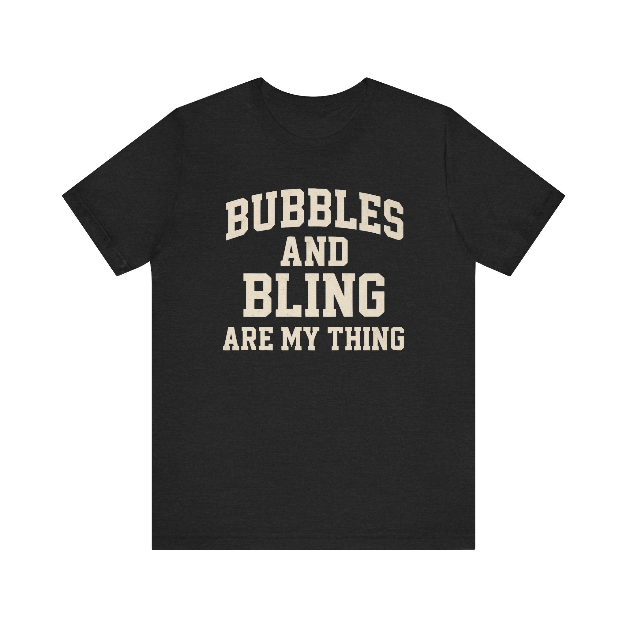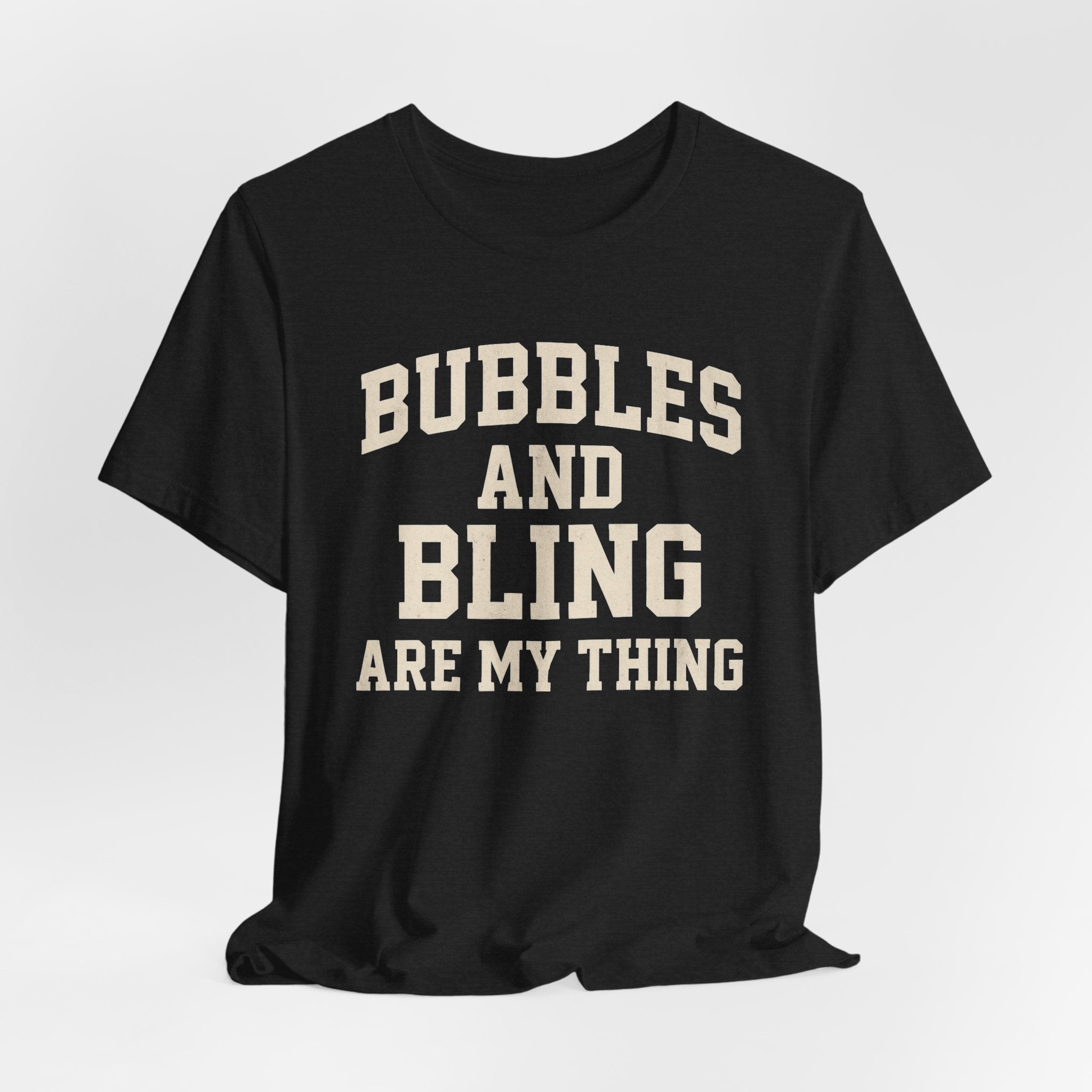 BUBBLES AND BLING ARE MY THING Tee, Fun Graphic T-Shirt, Unisex Comedy Shirt, Surprise Jewelry Reveals, Bella Canvas