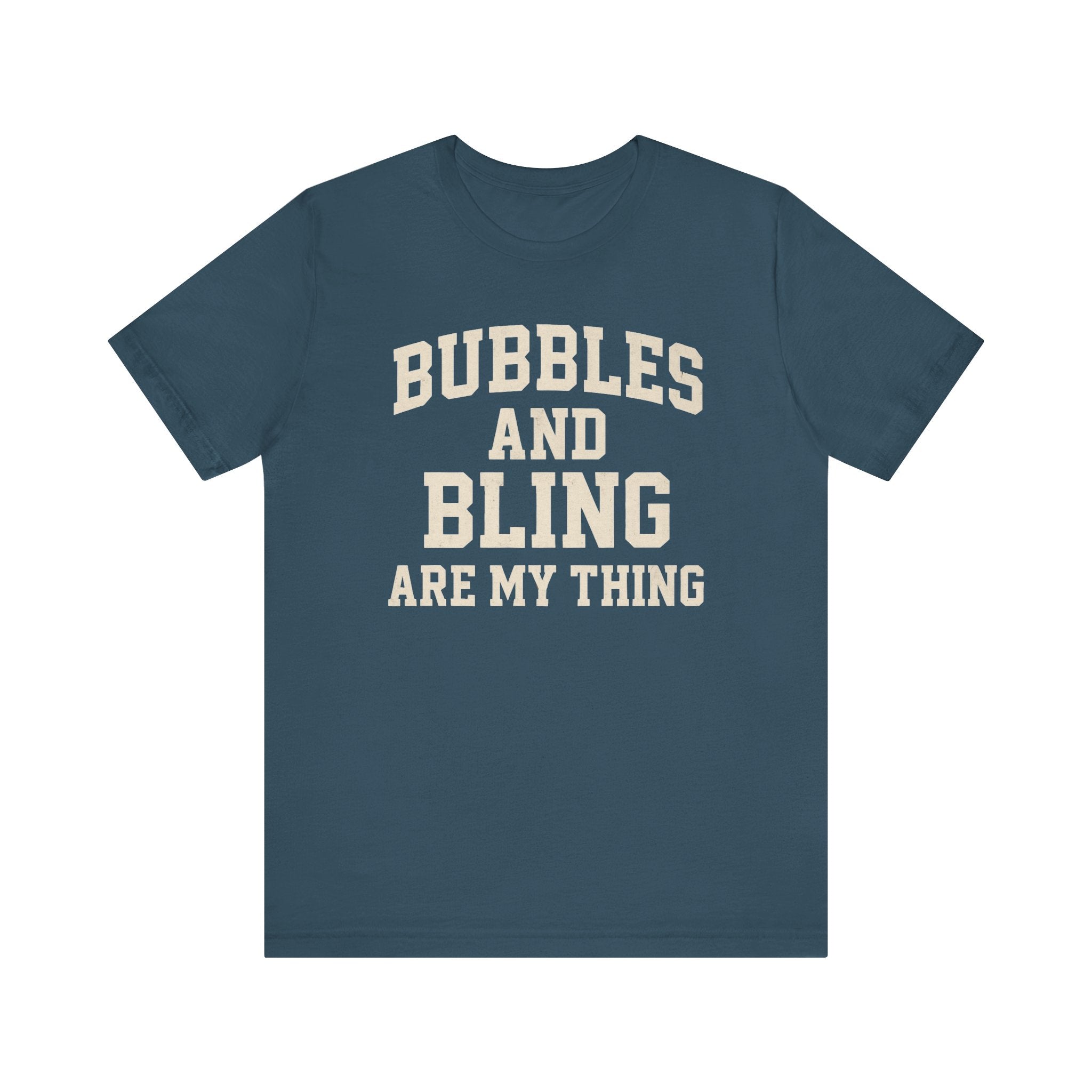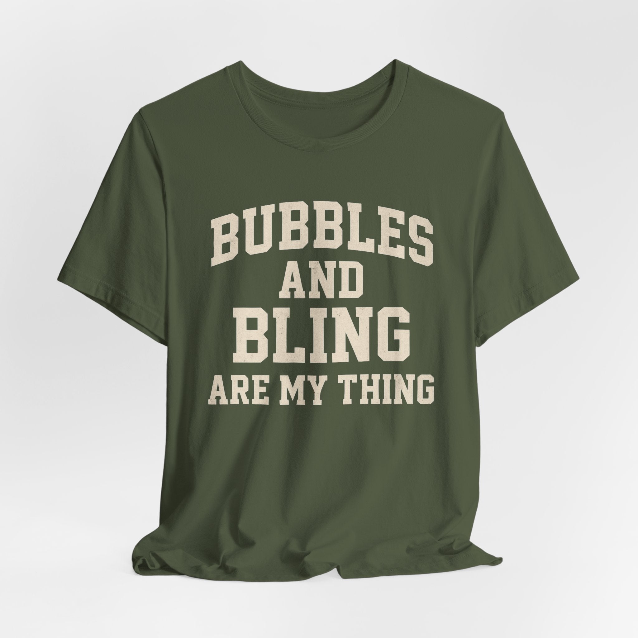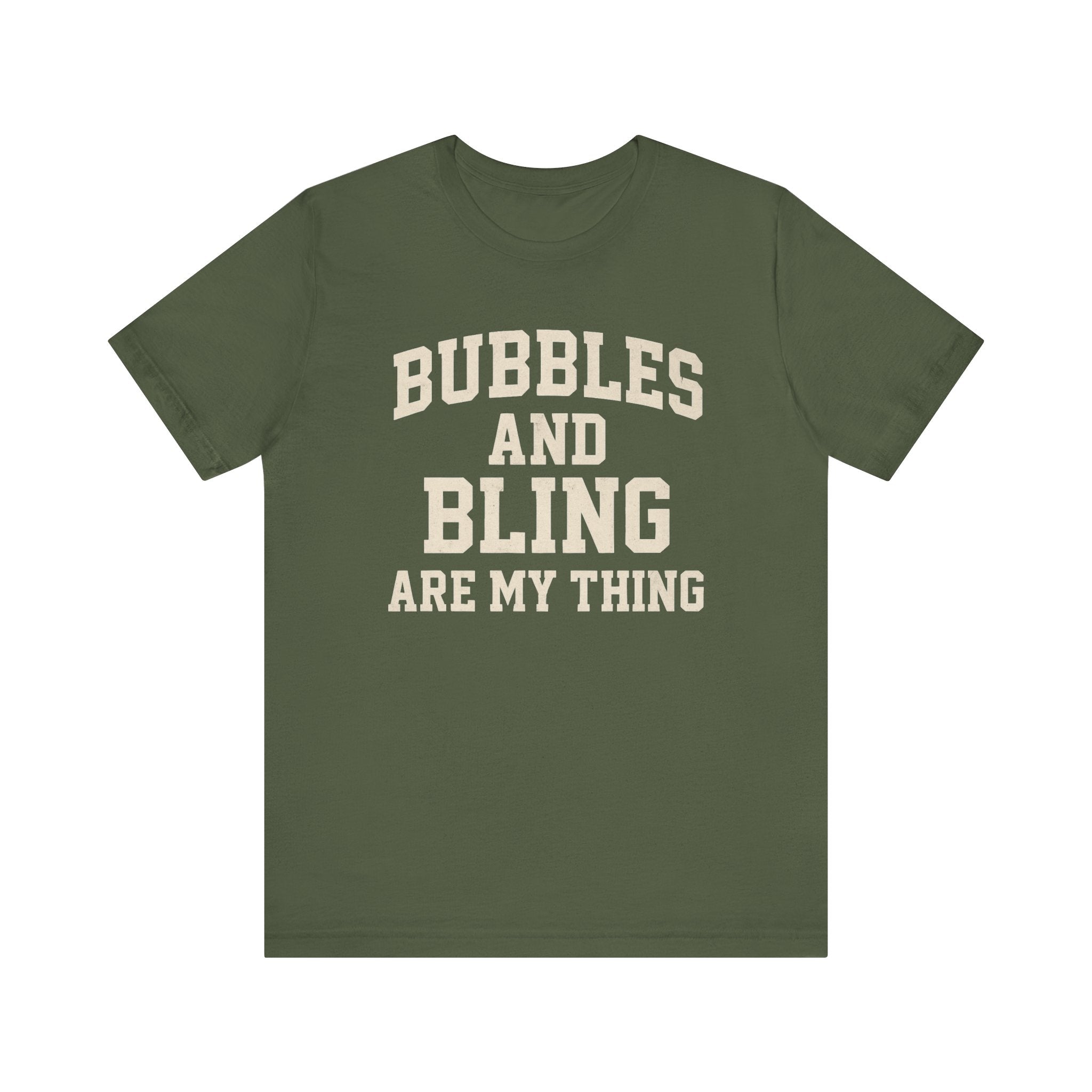 BUBBLES AND BLING ARE MY THING Tee, Fun Graphic T-Shirt, Unisex Comedy Shirt, Surprise Jewelry Reveals, Bella Canvas