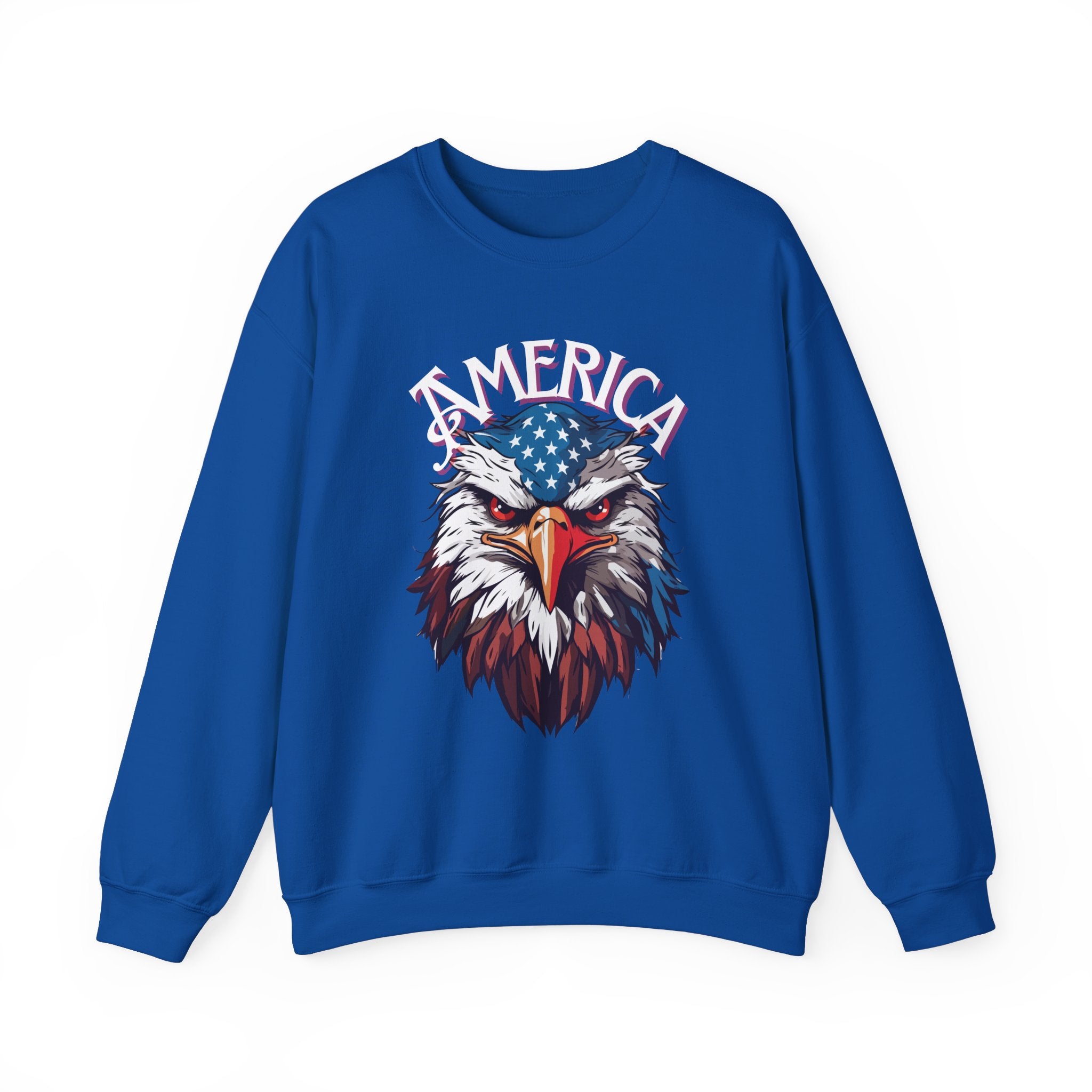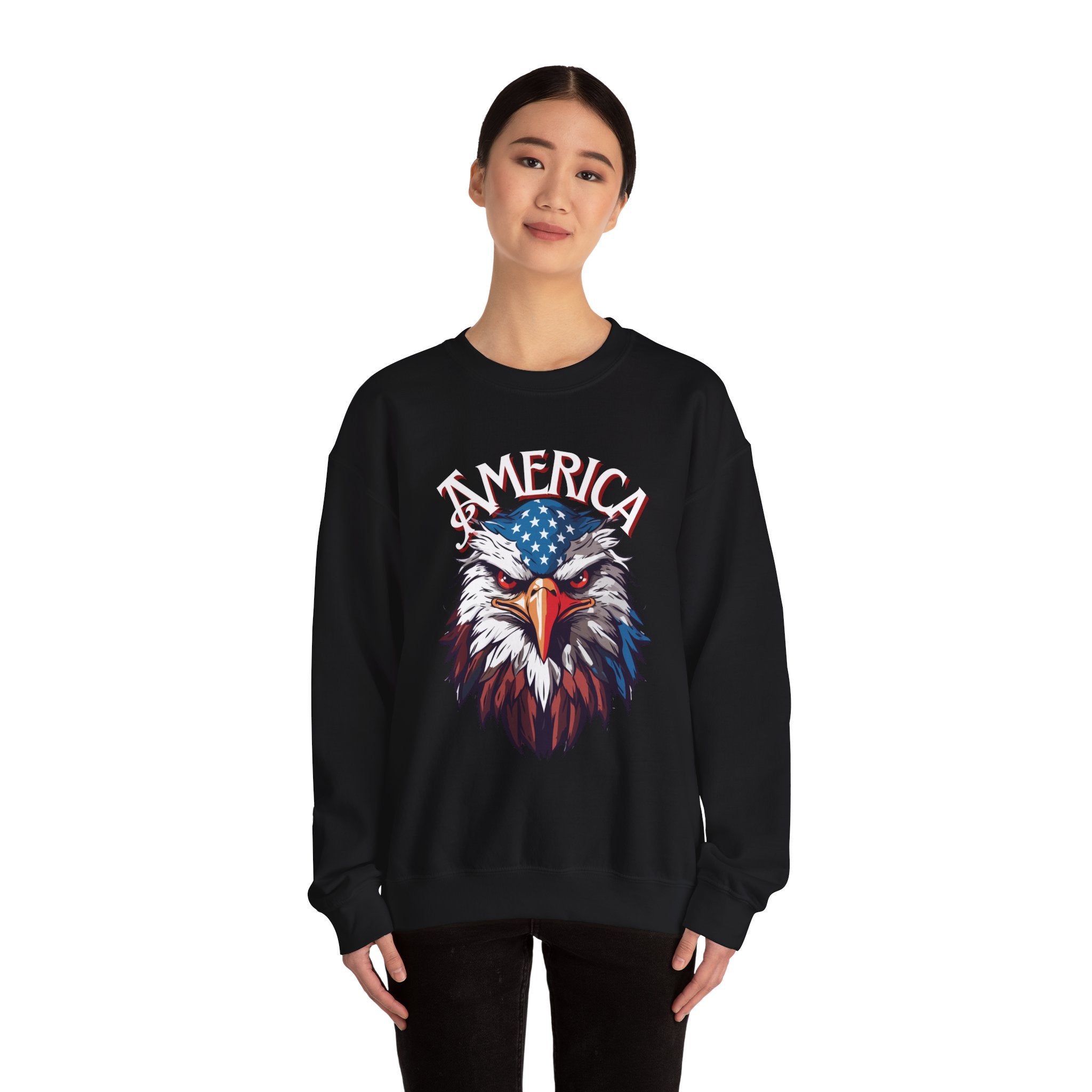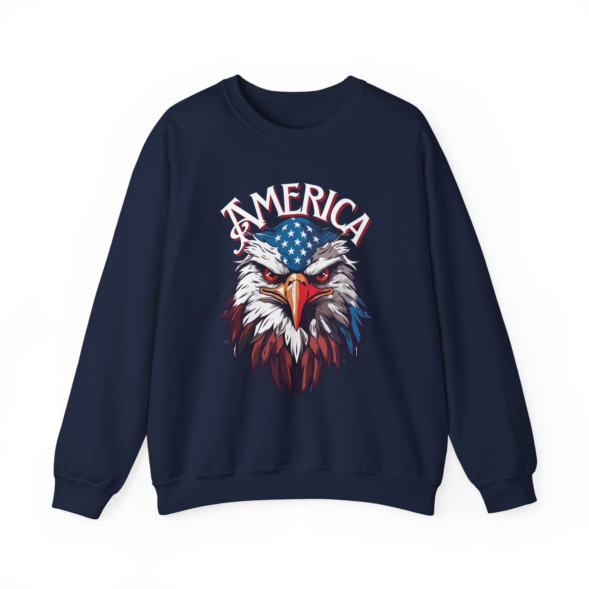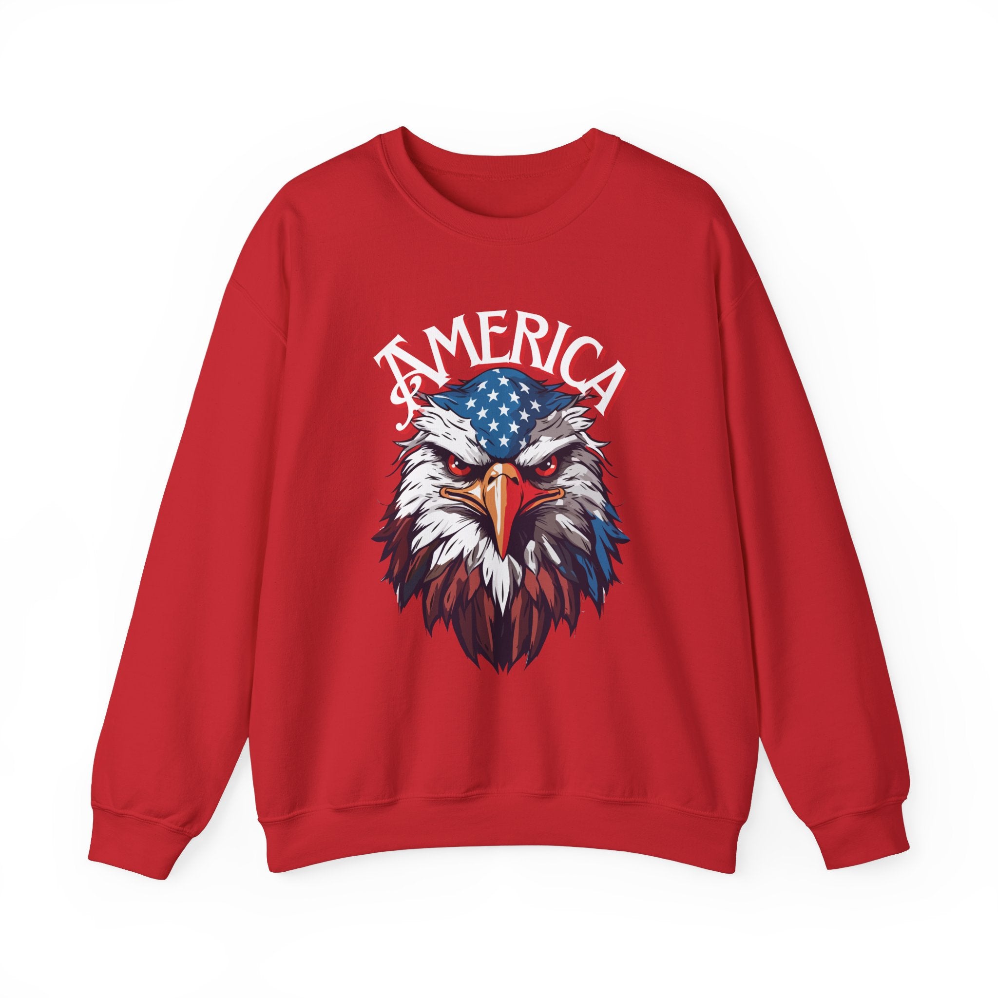 "America" - This patriotic sweatshirt is perfect for expressing the freedoms we share as an American. This top gives off a casual and patriotic vibe, fitting seamlessly into your everyday wardrobe. Great for the gym, the mall or grocery store, casual gatherings, a weenie roast & marshmallows around a fire, game night and other casual hangouts with friends. It looks good on a number of different solid shirt backgrounds so pick your favorite color and relax. This heavy blend crewneck sweatshirt is pure comfort. These garments are made from polyester and cotton. This combination helps designs come out looking fresh and beautiful. The collar is ribbed knit, so it retains its shape even after washing. There are no itchy side seams on these sweaters.