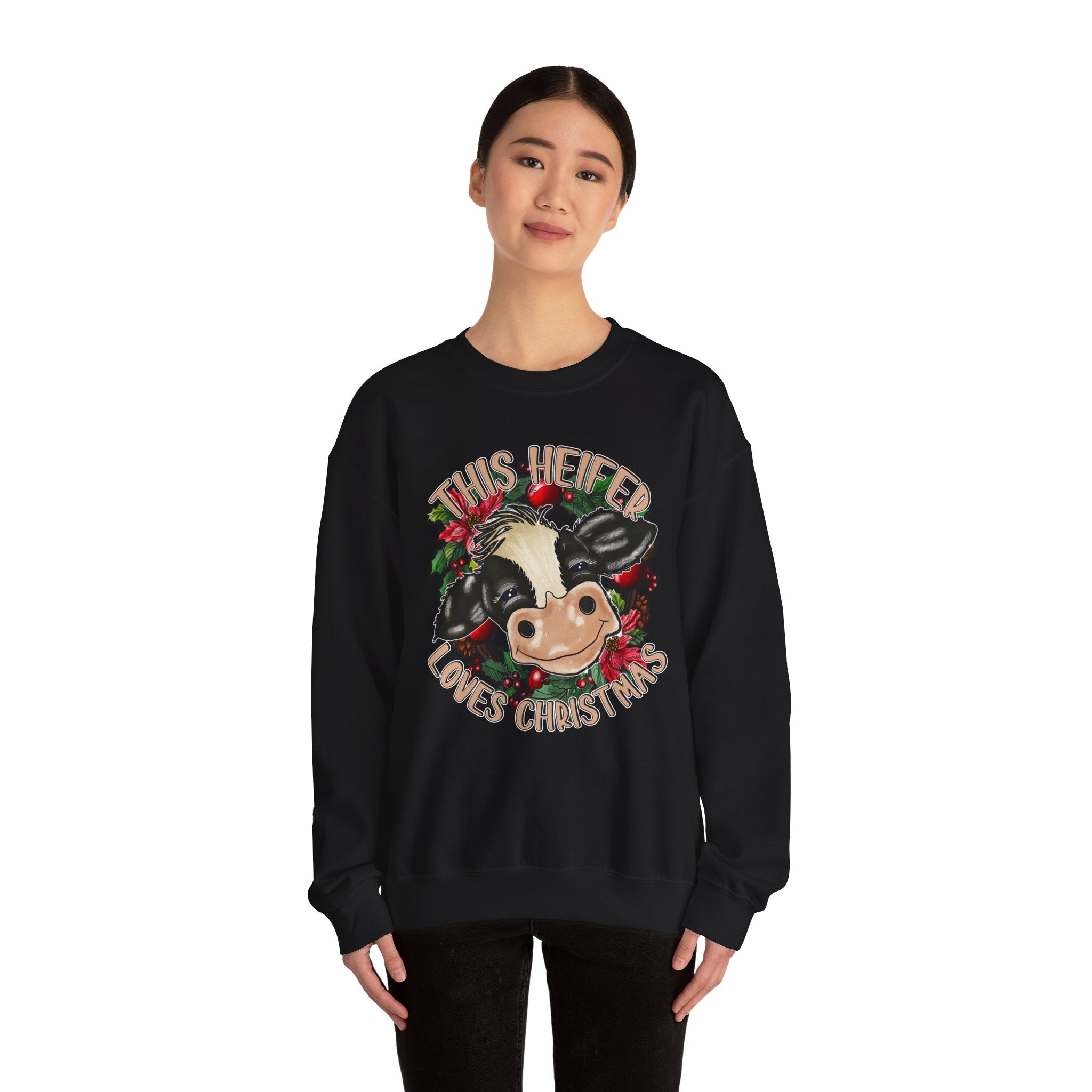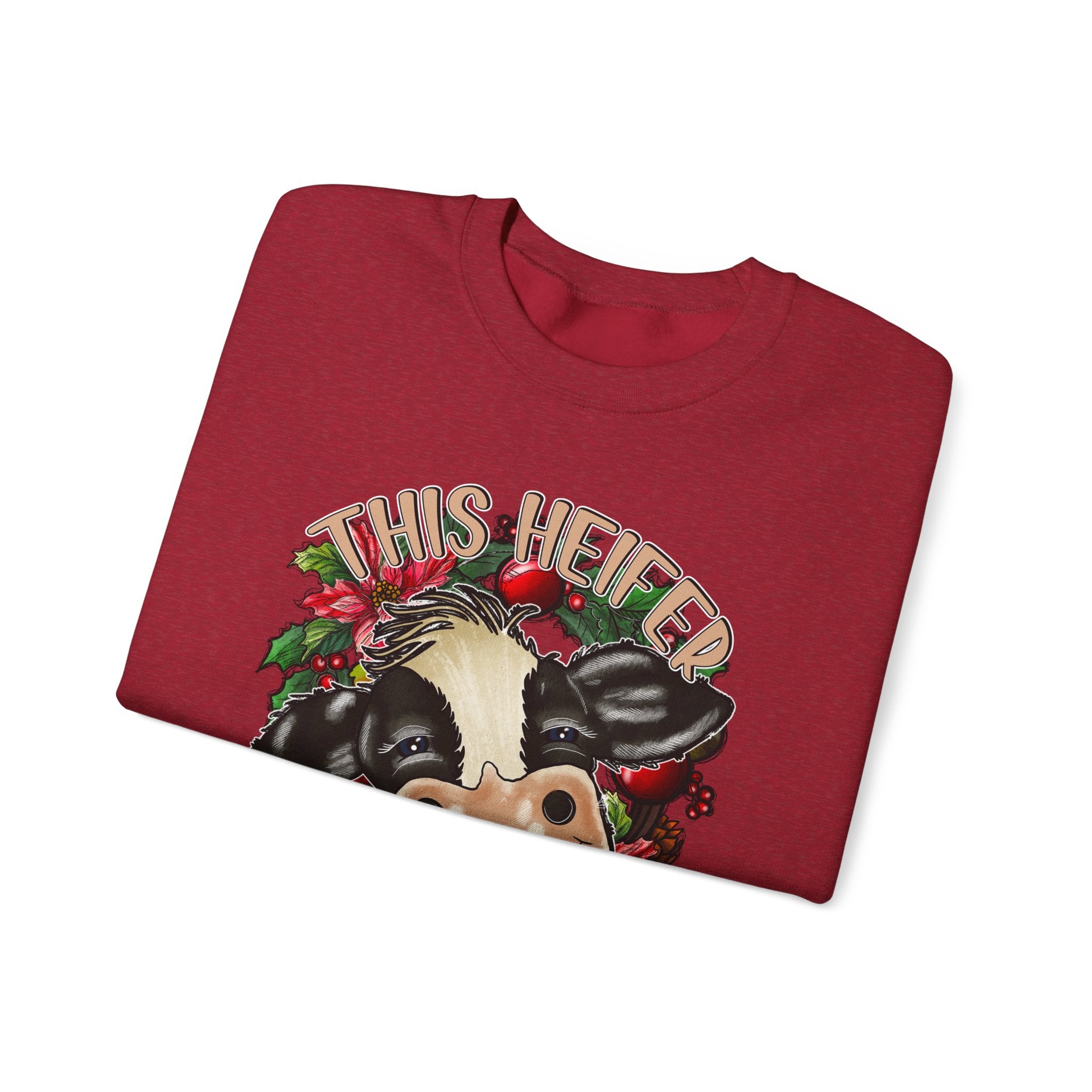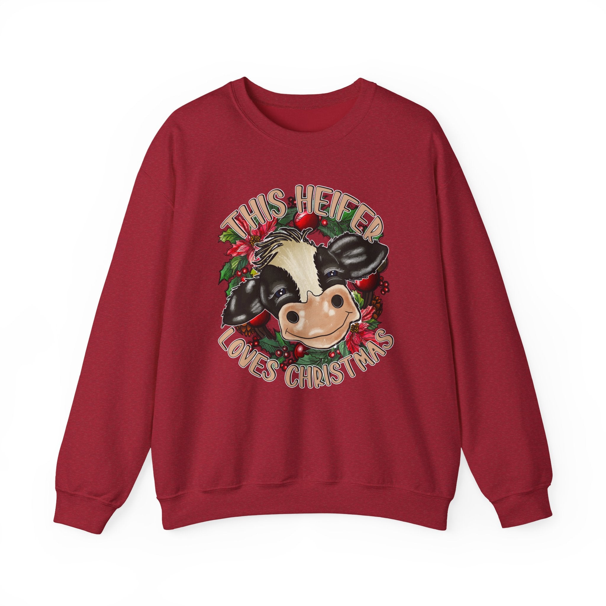 This cute cow design Sweatshirt is perfect for anyone who loves Christmas and wants to add a touch of holiday cheer to their wardrobe. The cozy blend of cotton and polyester makes it ideal for colder months, while the classic fit and crew neckline ensure a comfortable and stylish wearing experience. The double-needle stitching adds durability, and the tear-away label prevents itchiness. It is relevant for Christmas celebrations and cow lovers.