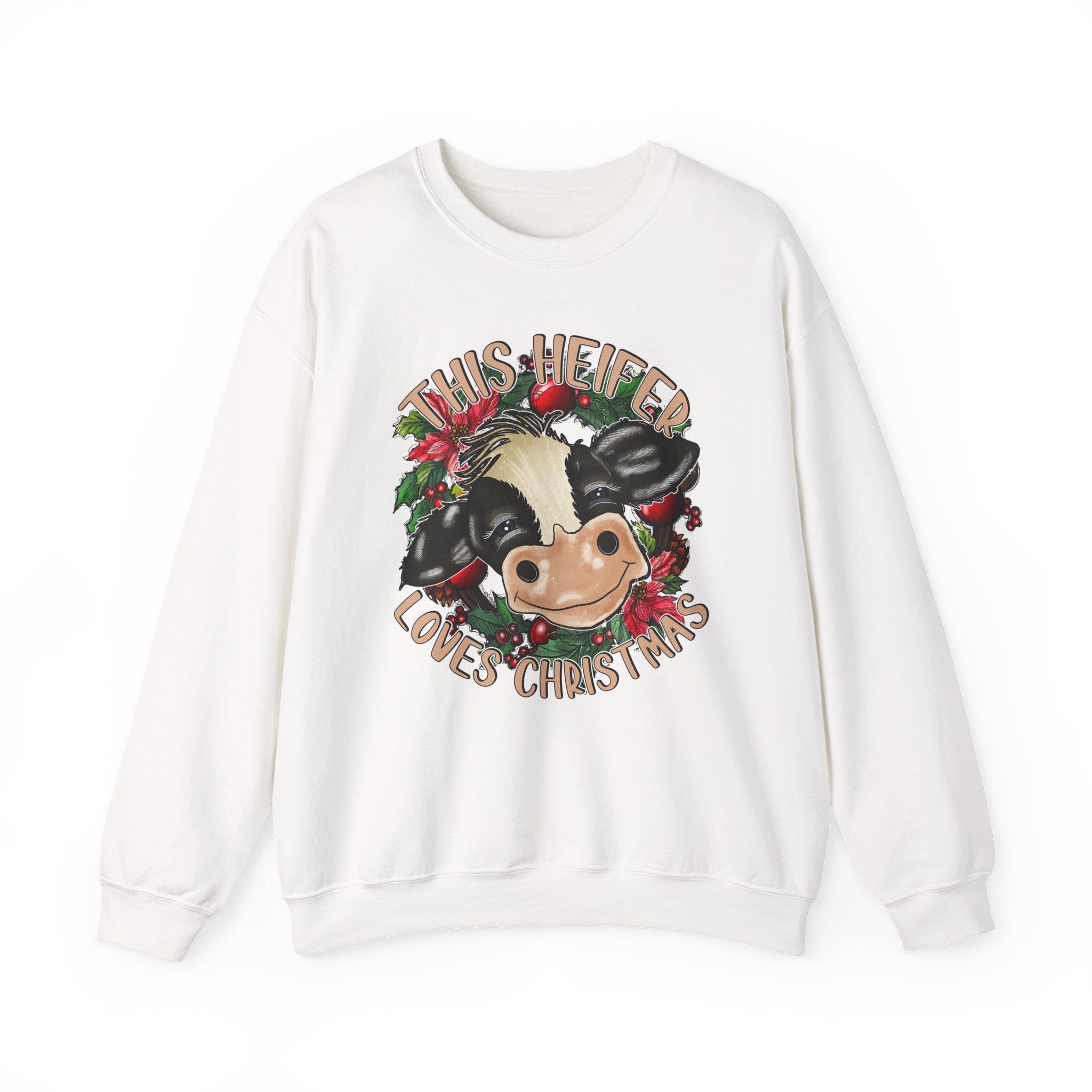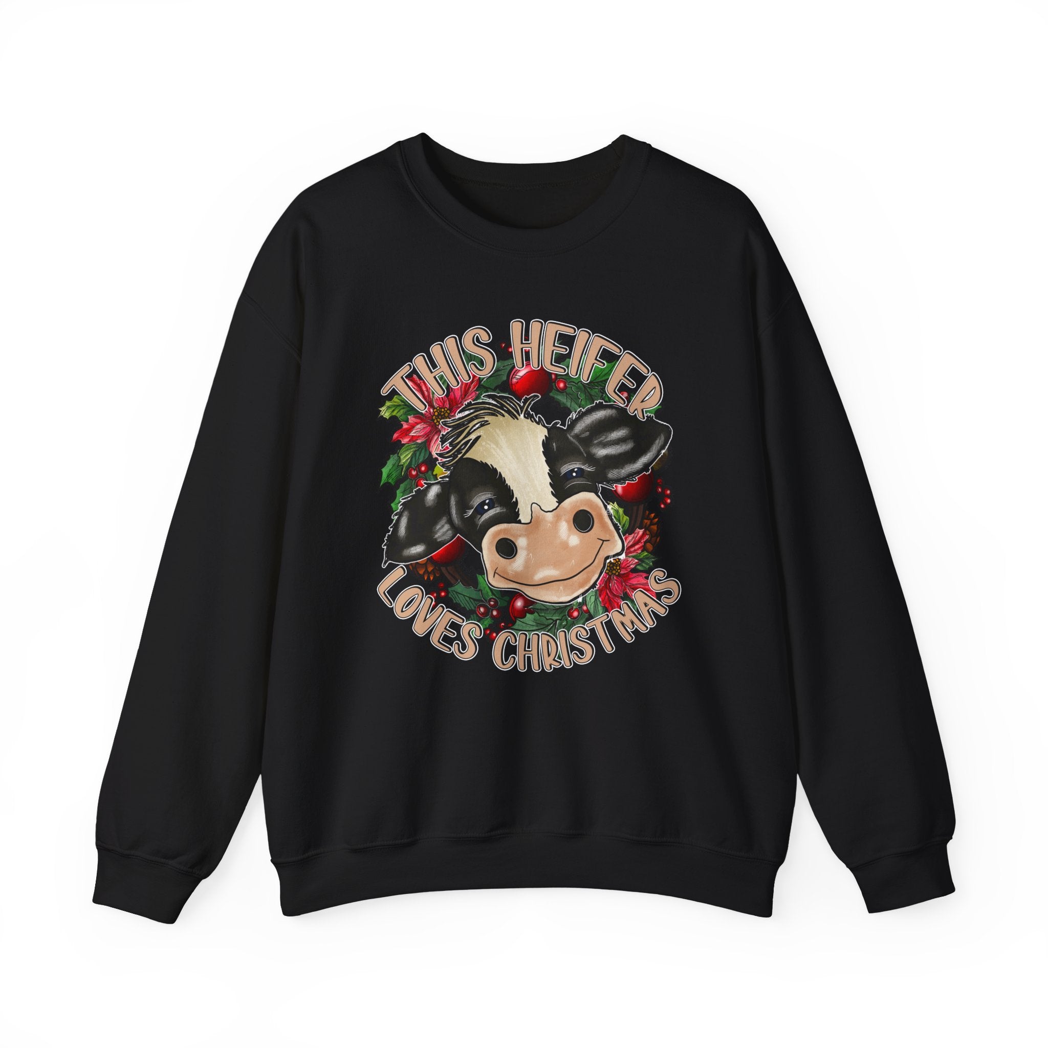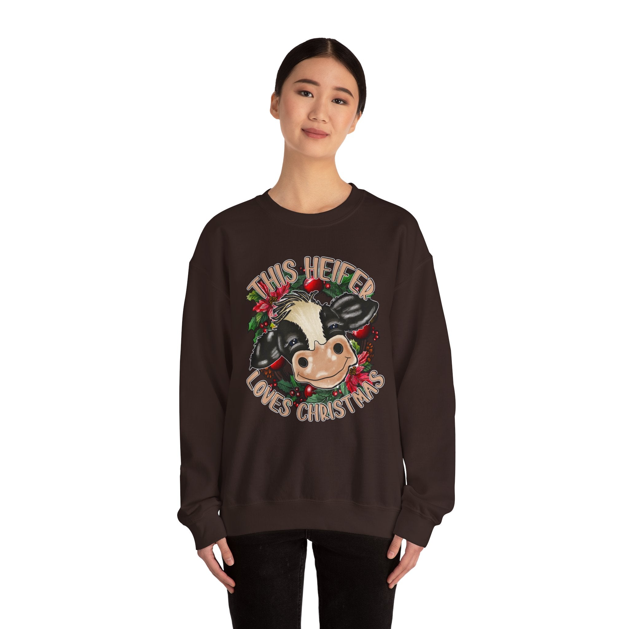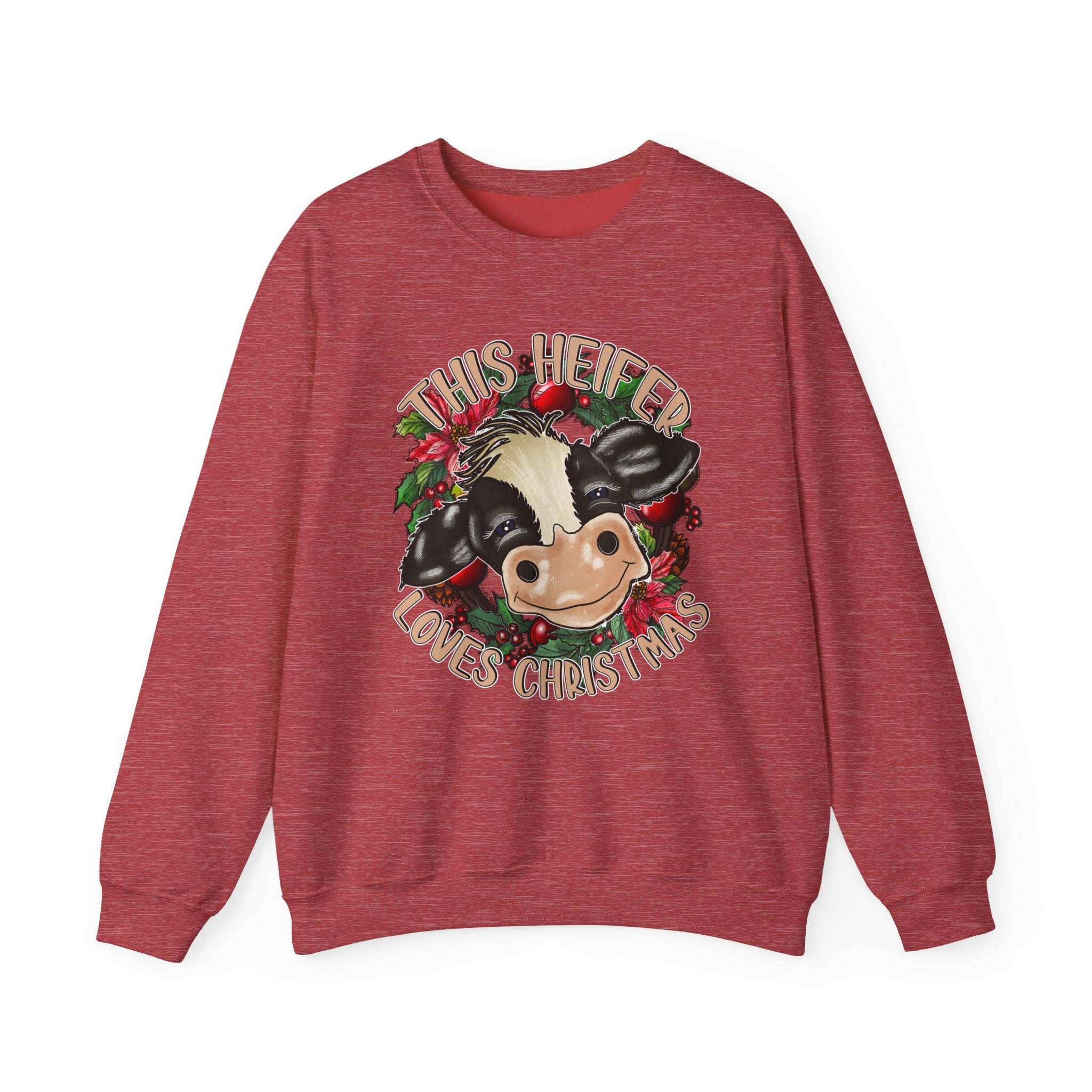 This cute cow design Sweatshirt is perfect for anyone who loves Christmas and wants to add a touch of holiday cheer to their wardrobe. The cozy blend of cotton and polyester makes it ideal for colder months, while the classic fit and crew neckline ensure a comfortable and stylish wearing experience. The double-needle stitching adds durability, and the tear-away label prevents itchiness. It is relevant for Christmas celebrations and cow lovers.