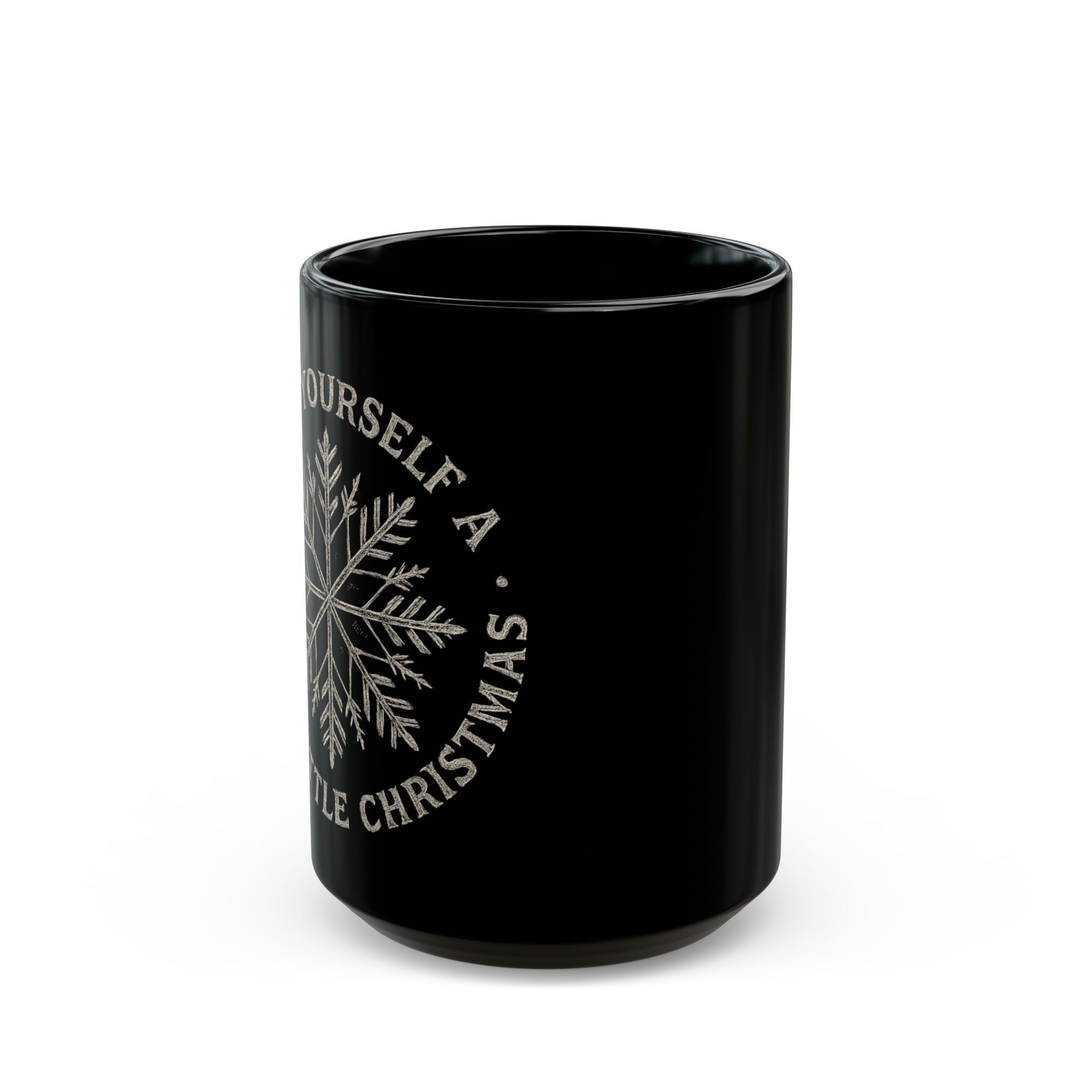 Hold a quiet, sharp joy in your hands. This black ceramic mug carries a soft glossy sheen and a subtle winter motif that reads like a private joke between you and the season — snowflake lines and curved text that peek as you tilt the cup. It’s the kind of mug you reach for on chilly mornings, breathing in hot coffee or spiced tea while the world outside softens. Built to be used and loved, it stands up to everyday life: warm beverages, late-night writing, and slow conversation. The deep black finish makes the artwork feel modest and modern, slipping easily into a minimalist kitchen or a cozy holiday table without shouting. Practical and slightly cheeky, it settles into routines and small rituals — a cup that ages into memory alongside your favorite chair and playlists.
