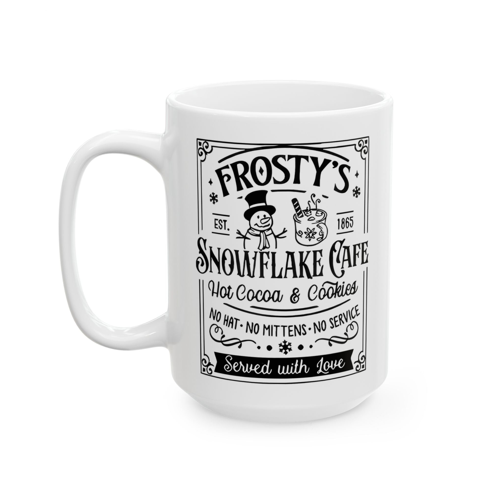 This glossy ceramic mug brings a quiet, handcrafted charm to everyday coffee and tea moments. Crisp black-and-white artwork wraps the side in vintage-inspired lettering and small decorative accents, making each sip feel like a pause in a well-loved rustic café. Step back in time to when the town met for breakfast, lunch, and dinner in their favorite spot in town. Lightweight but sturdy, it fits naturally in hand with a comfortable C-handle and a shiny finish that brightens countertops. Choose between 11oz for a standard morning brew or 15oz when you want an extra pour — both sizes are microwave- and dishwasher-safe and printed with vibrant, long-lasting colors on durable white ceramic. Lead- and BPA-free, it’s built for daily use and small rituals: slow mornings, late-night study sessions, and cozy conversations held over warm mugs.