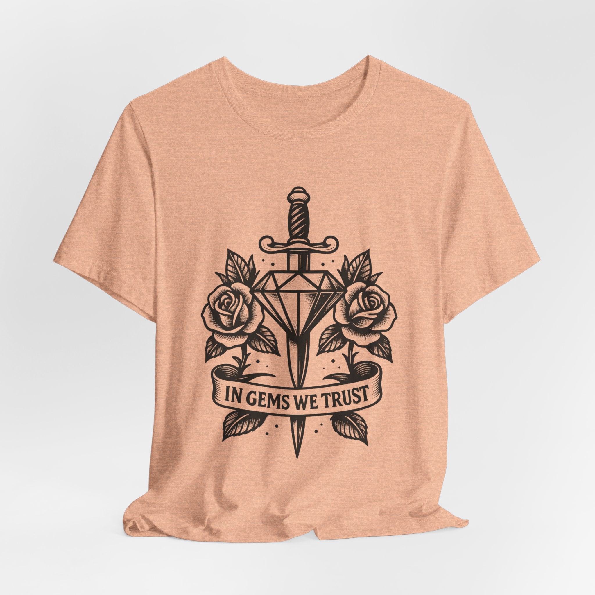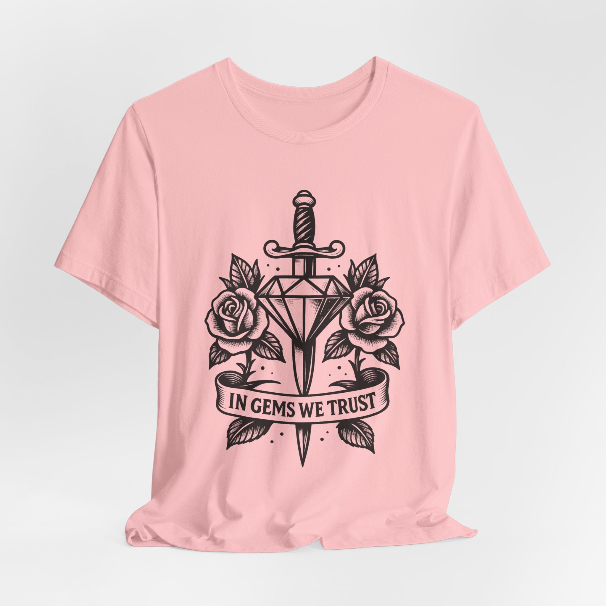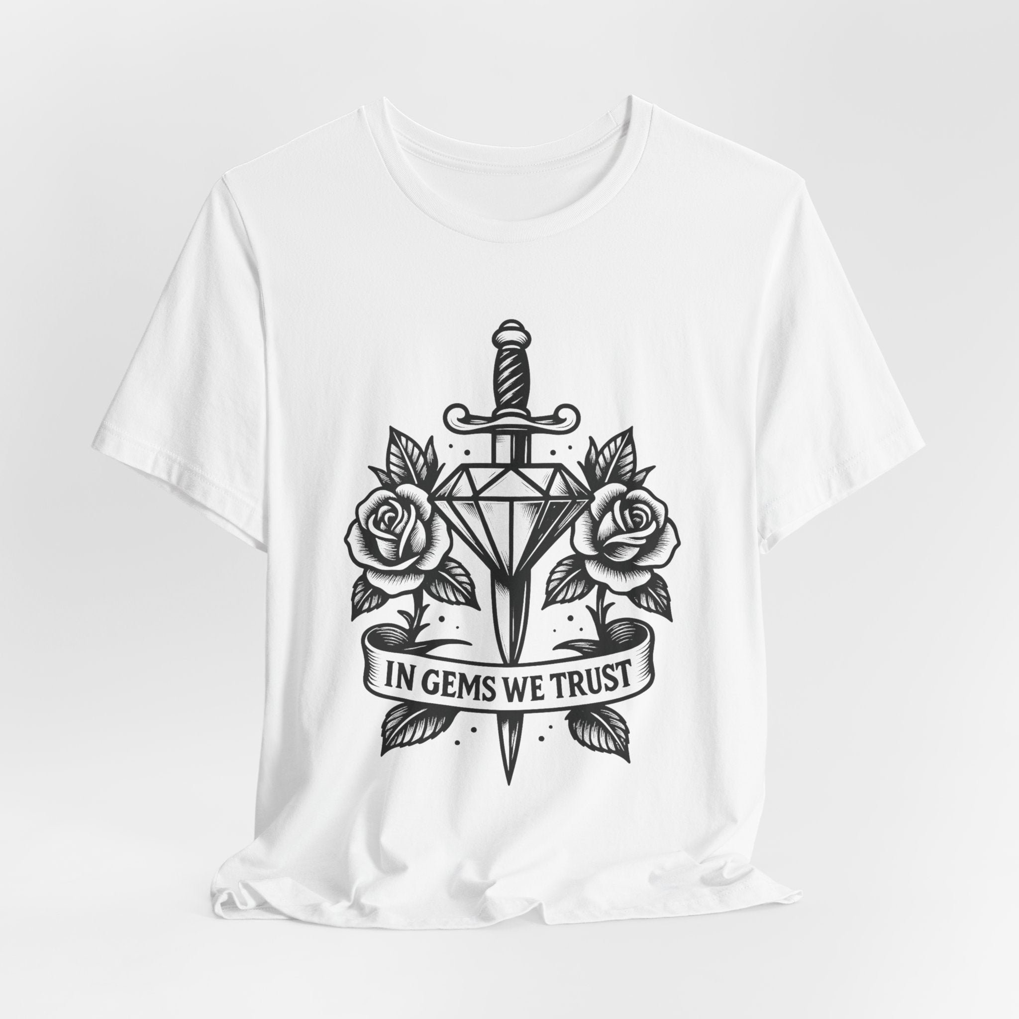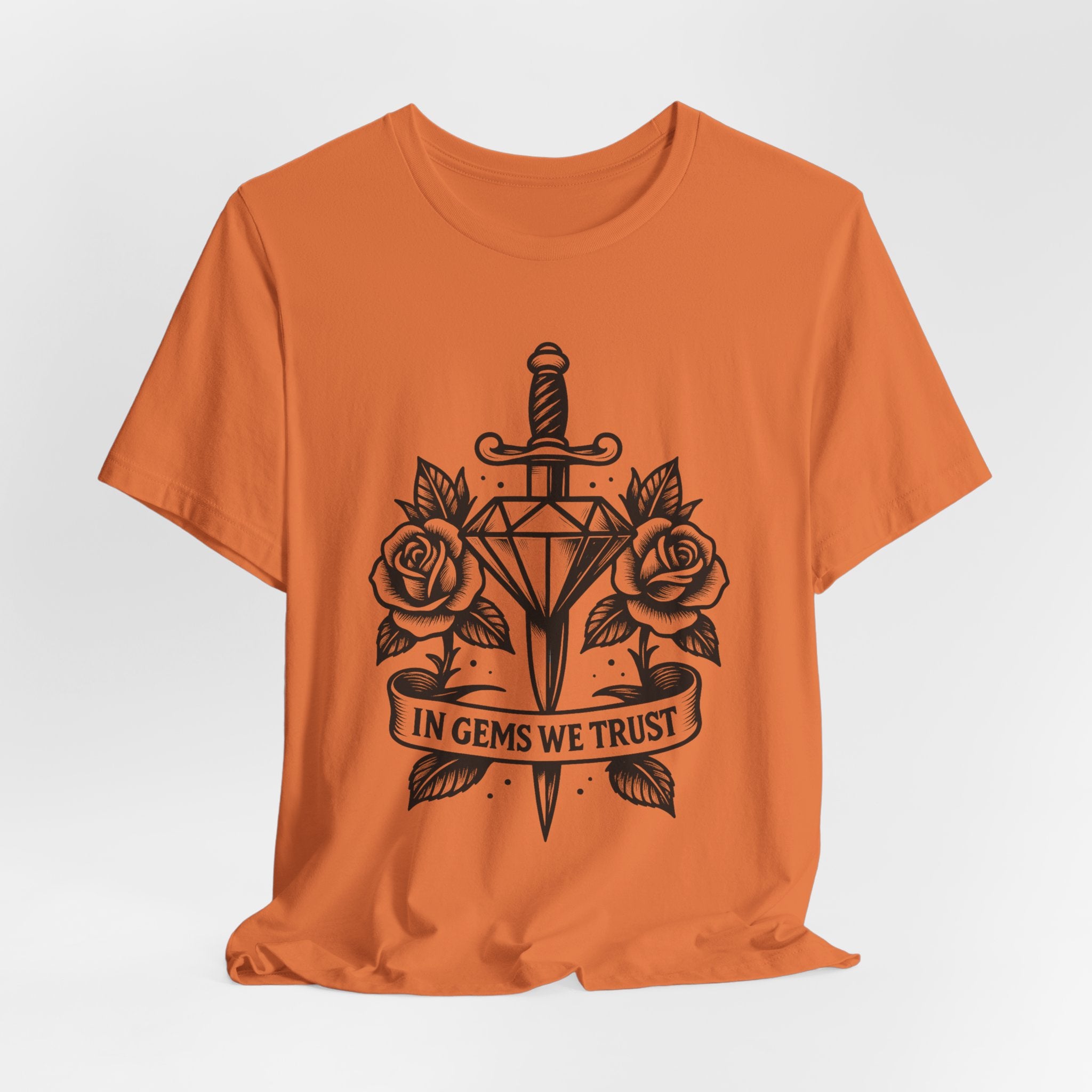 Introducing a stylish Unisex Jersey Short Sleeve Tee, perfect for those who appreciate artful expression and casual comfort. Featuring a striking design that combines roses and a dagger, this tee embodies a blend of elegance and boldness. Ideal for creative souls and individuals who love to make a statement. The lightweight, breathable fabric makes it perfect for everyday wear, while its relaxed fit keeps you comfortable on any occasion. Whether you’re hanging out with friends, attending a music festival, or just enjoying a day at home, this tee fits into your lifestyle seamlessly. It’s a fantastic gift for birthdays, holidays, and celebrations for those who love unique and artsy apparel.