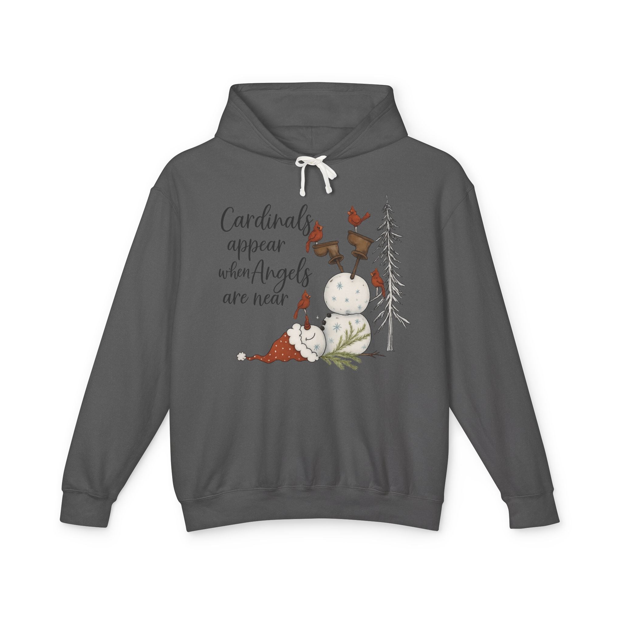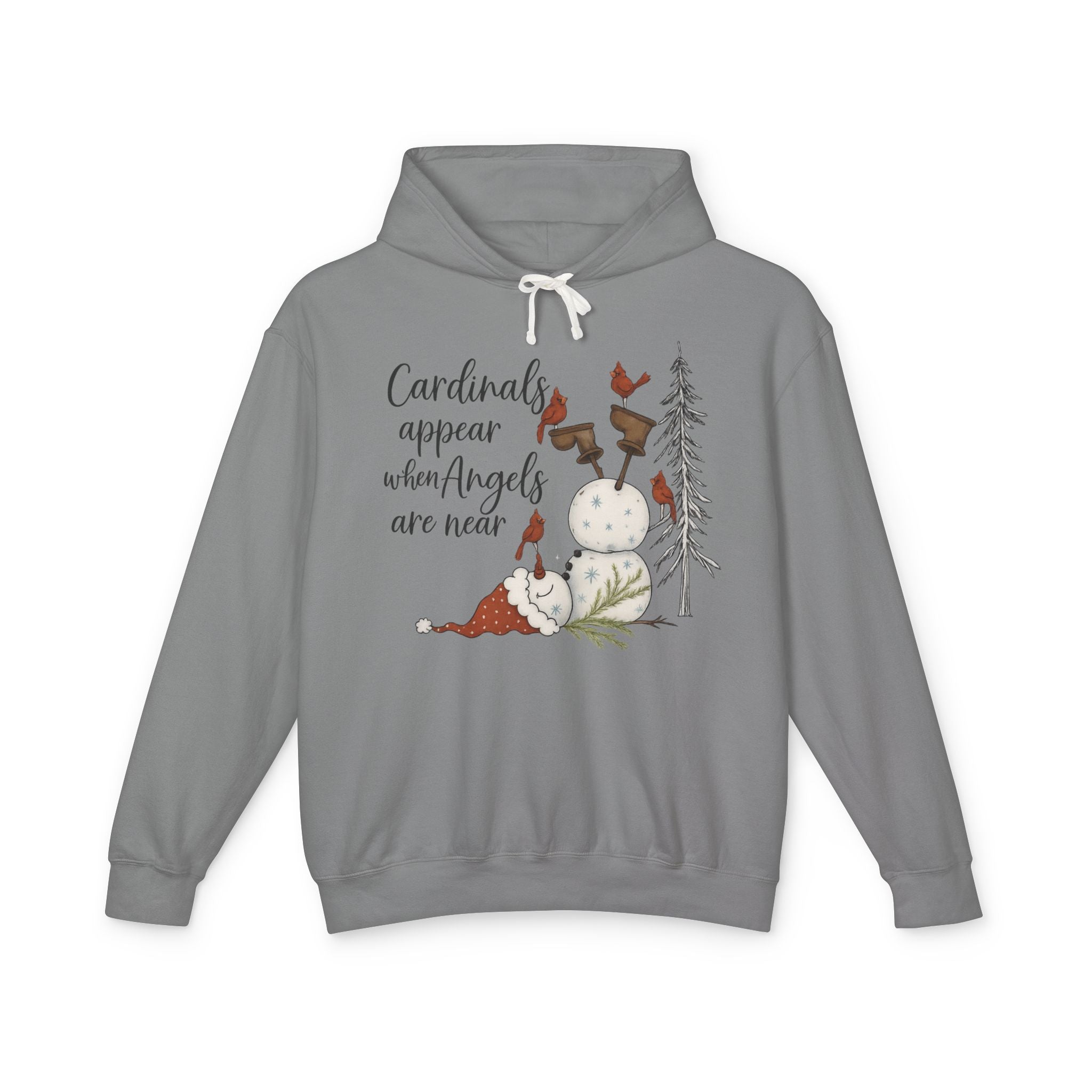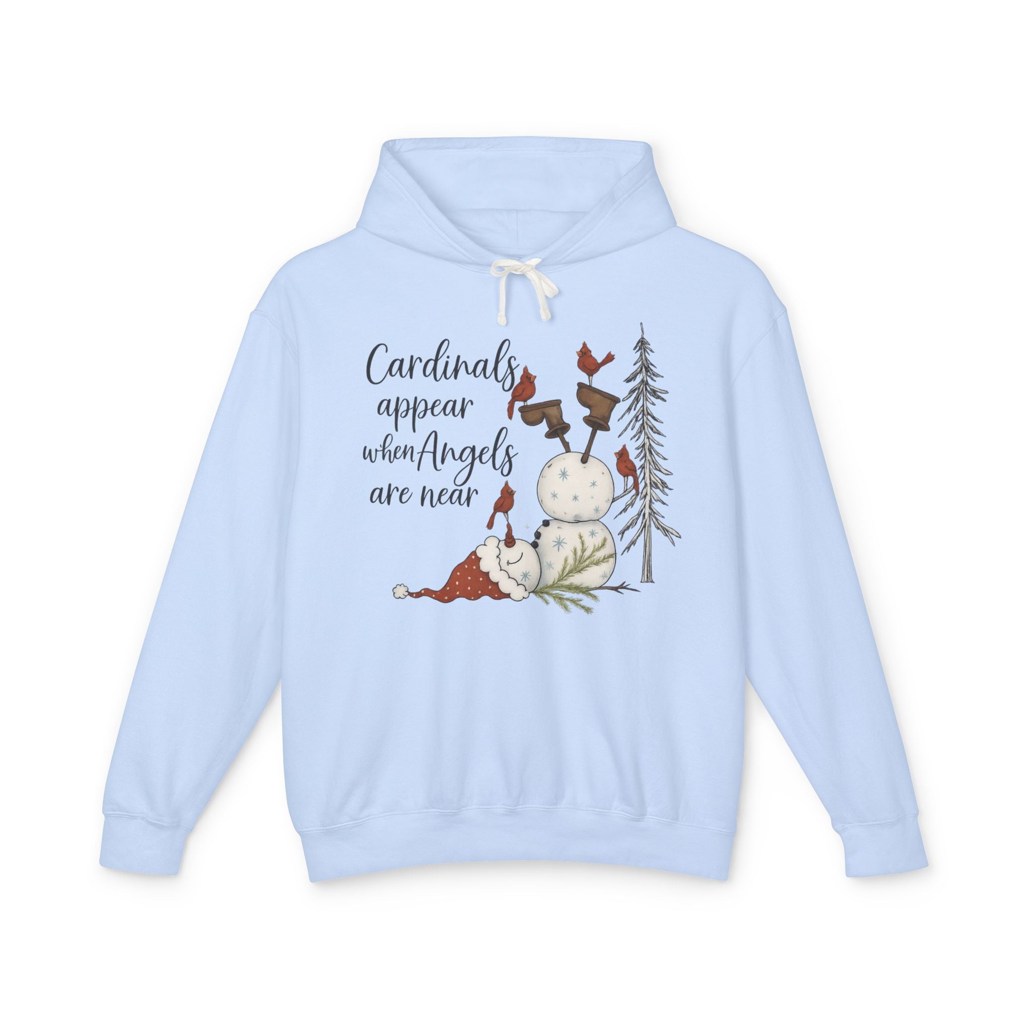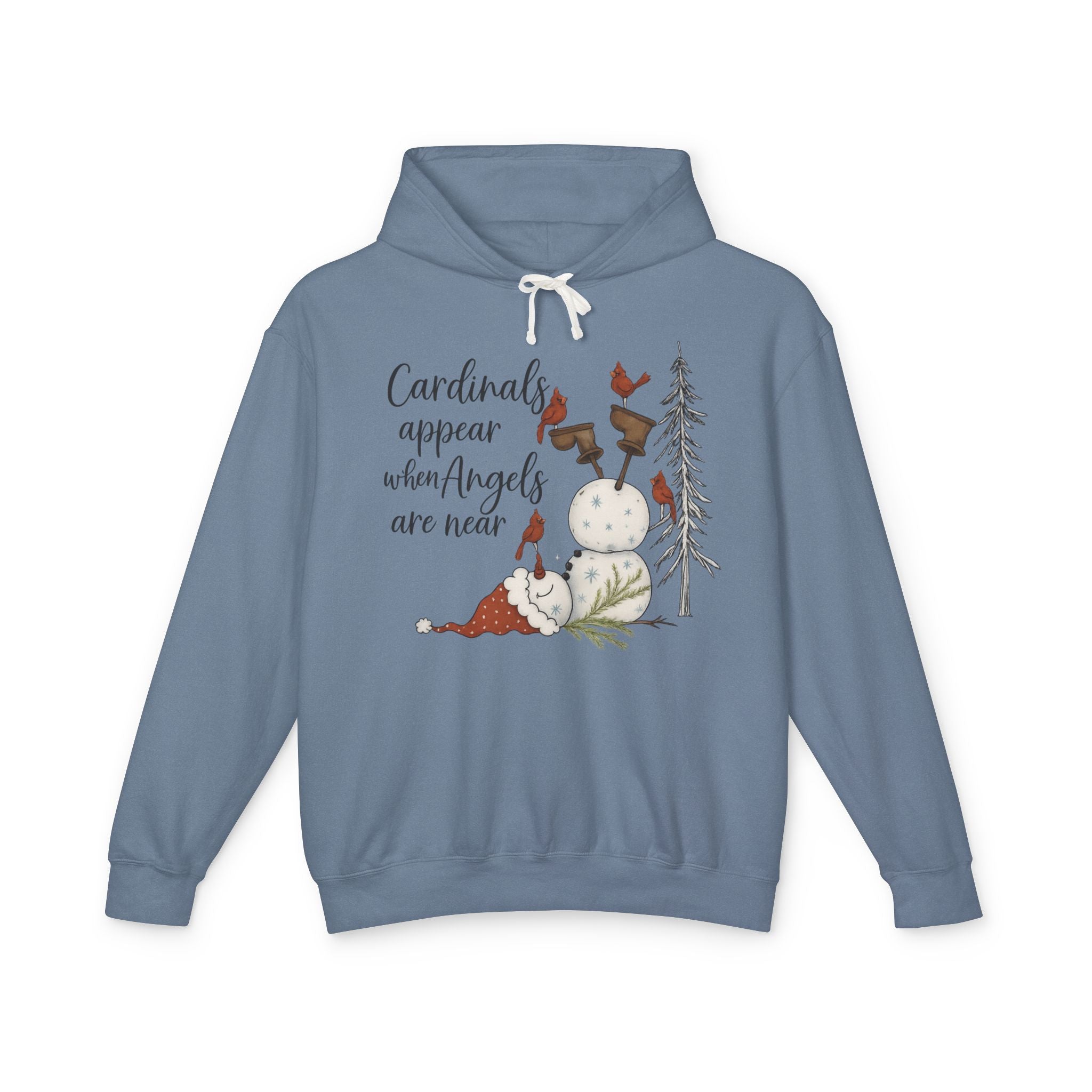Wrap yourself in comfort and warmth with this unisex lightweight hooded sweatshirt by Comfort Colors. Perfect for chilly evenings or casual outings, it brings a cozy vibe that elevates any outfit. The charming design featuring cardinals and a snowman adds a touch of cheer, making it ideal for the holiday season and celebrating special gatherings with family and friends. This sweatshirt is perfect for nature lovers and those who appreciate a meaningful message, making it a thoughtful gift for loved ones during Christmas, New Year, or any winter celebration. Whether lounging at home or enjoying outdoor festivities, this sweatshirt combines style and comfort effortlessly.