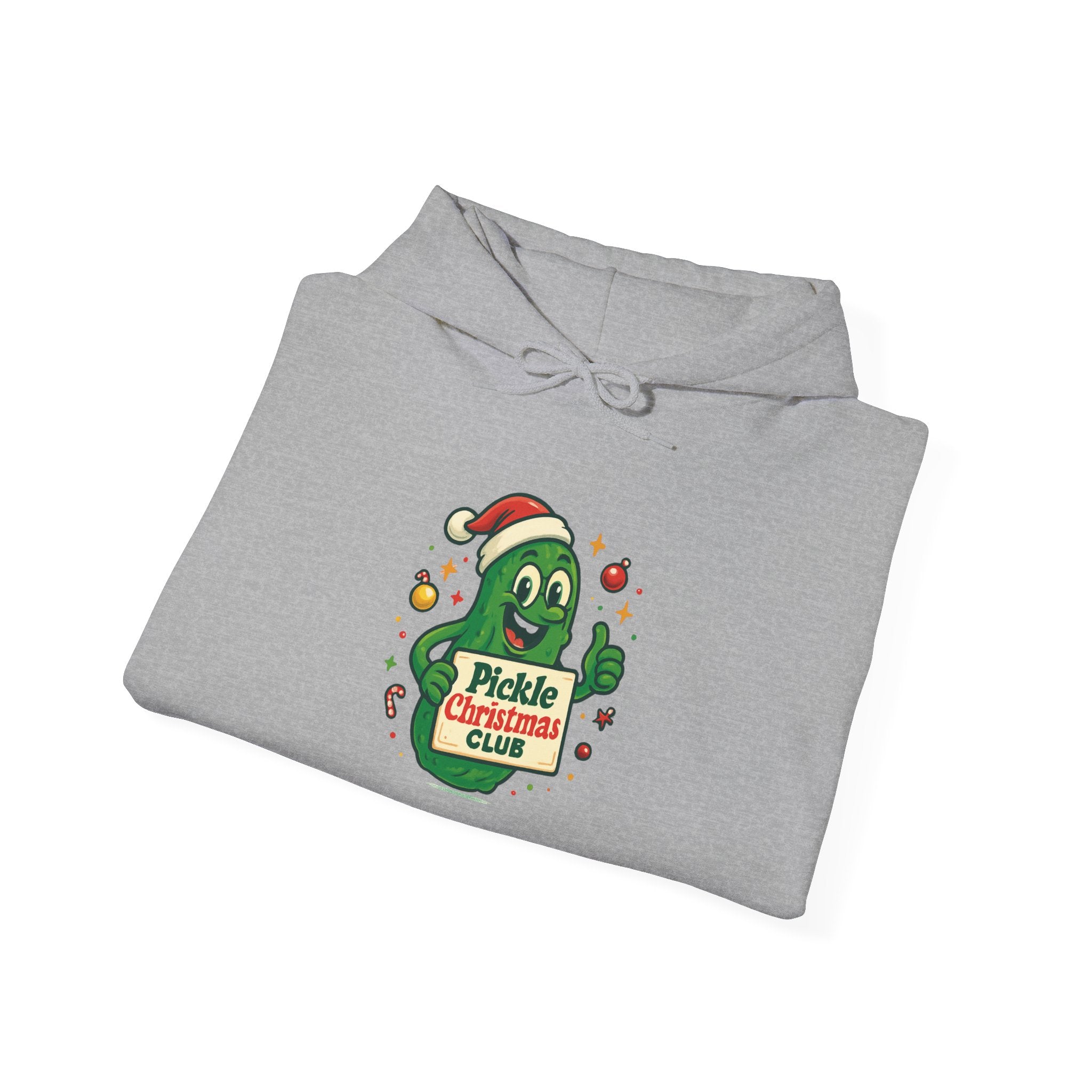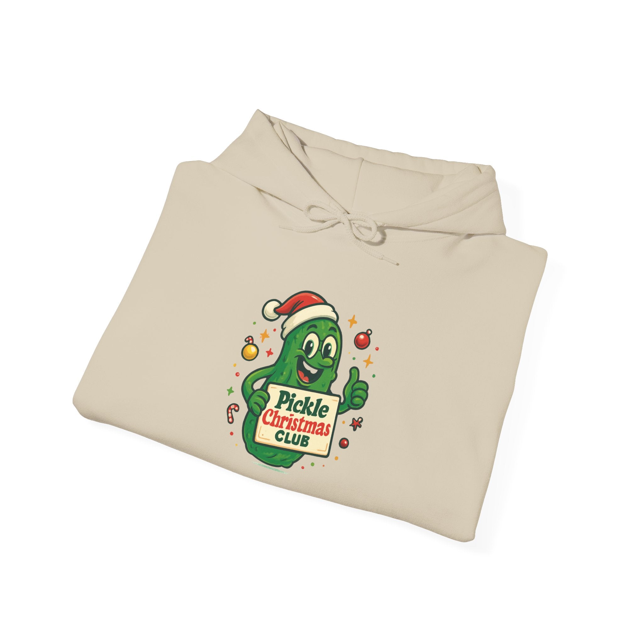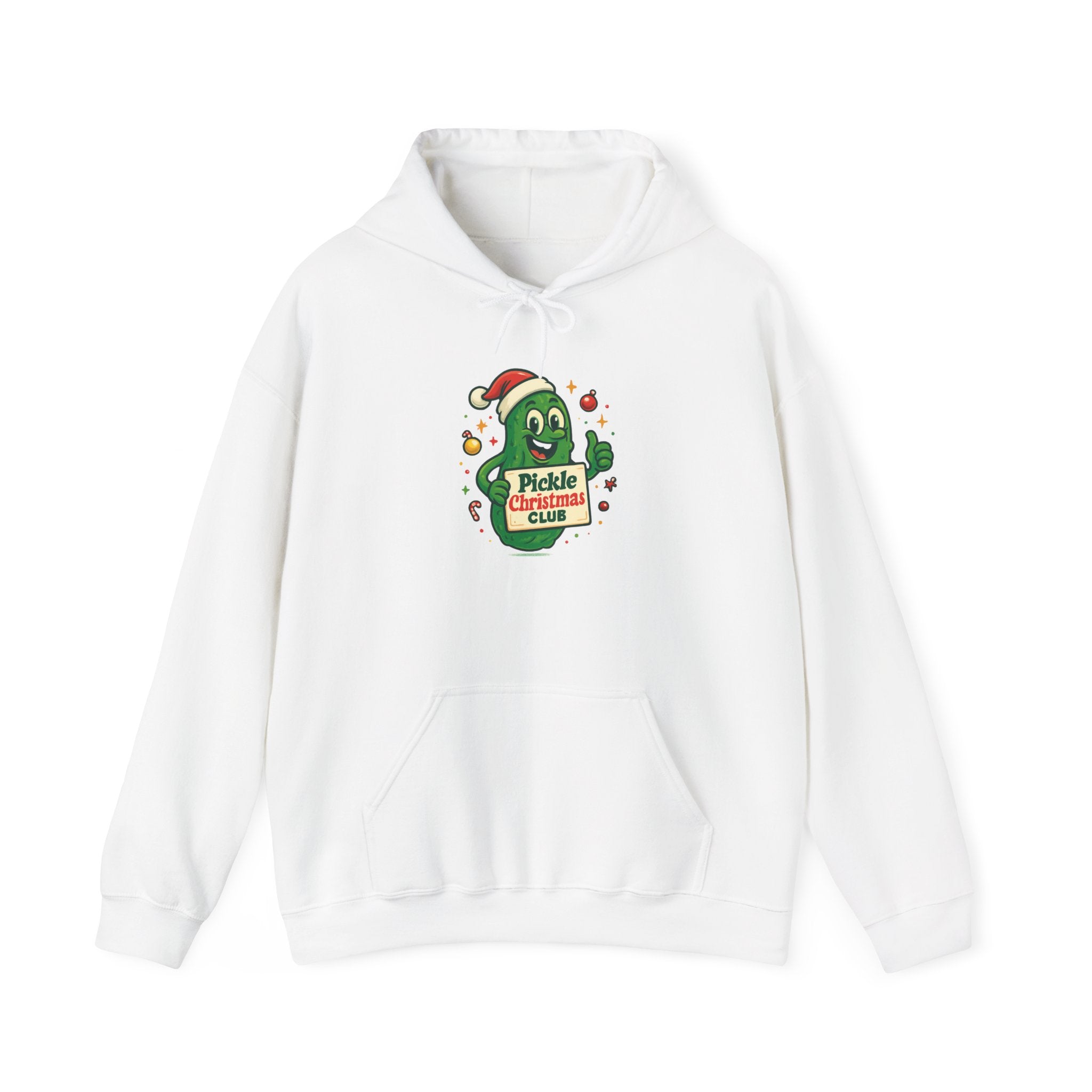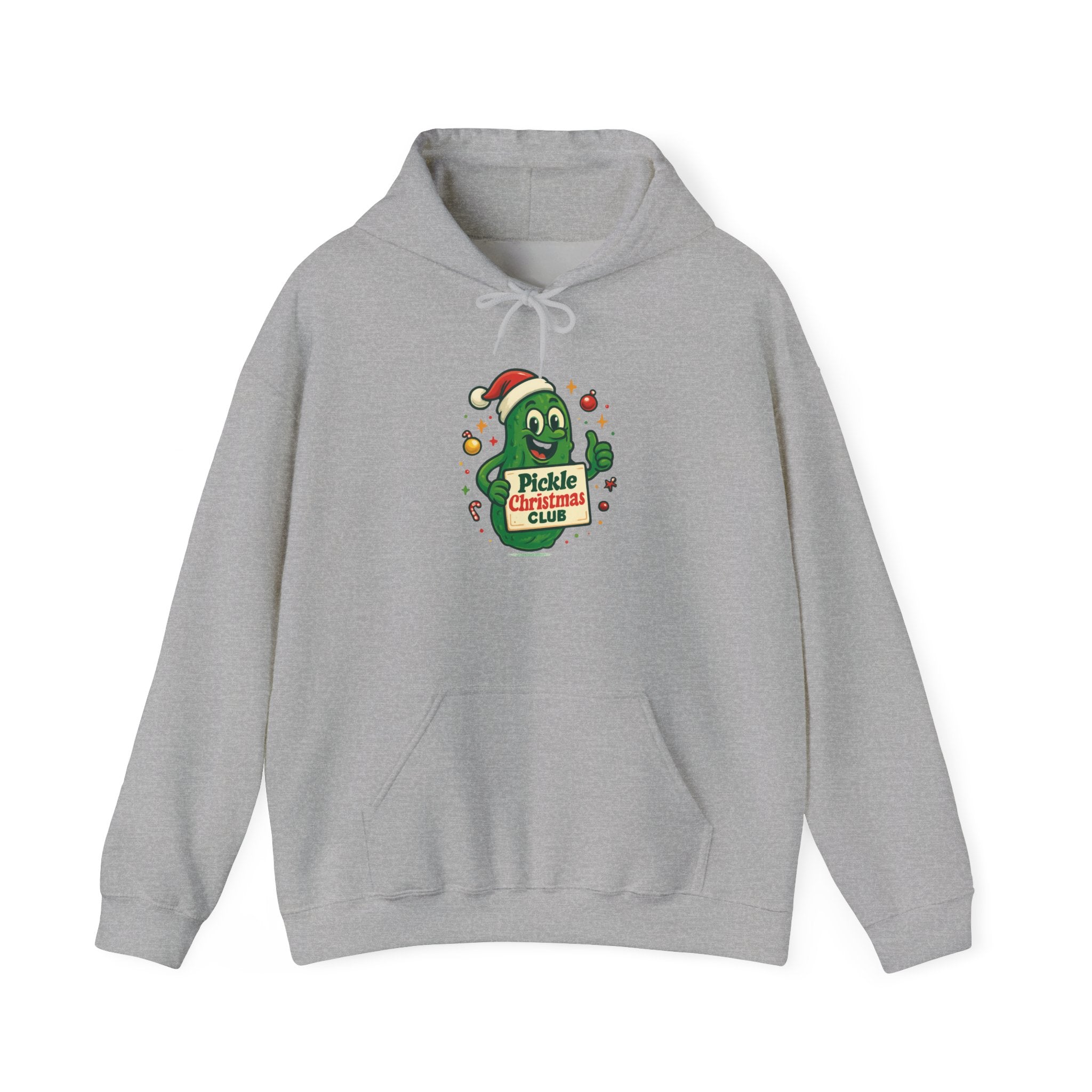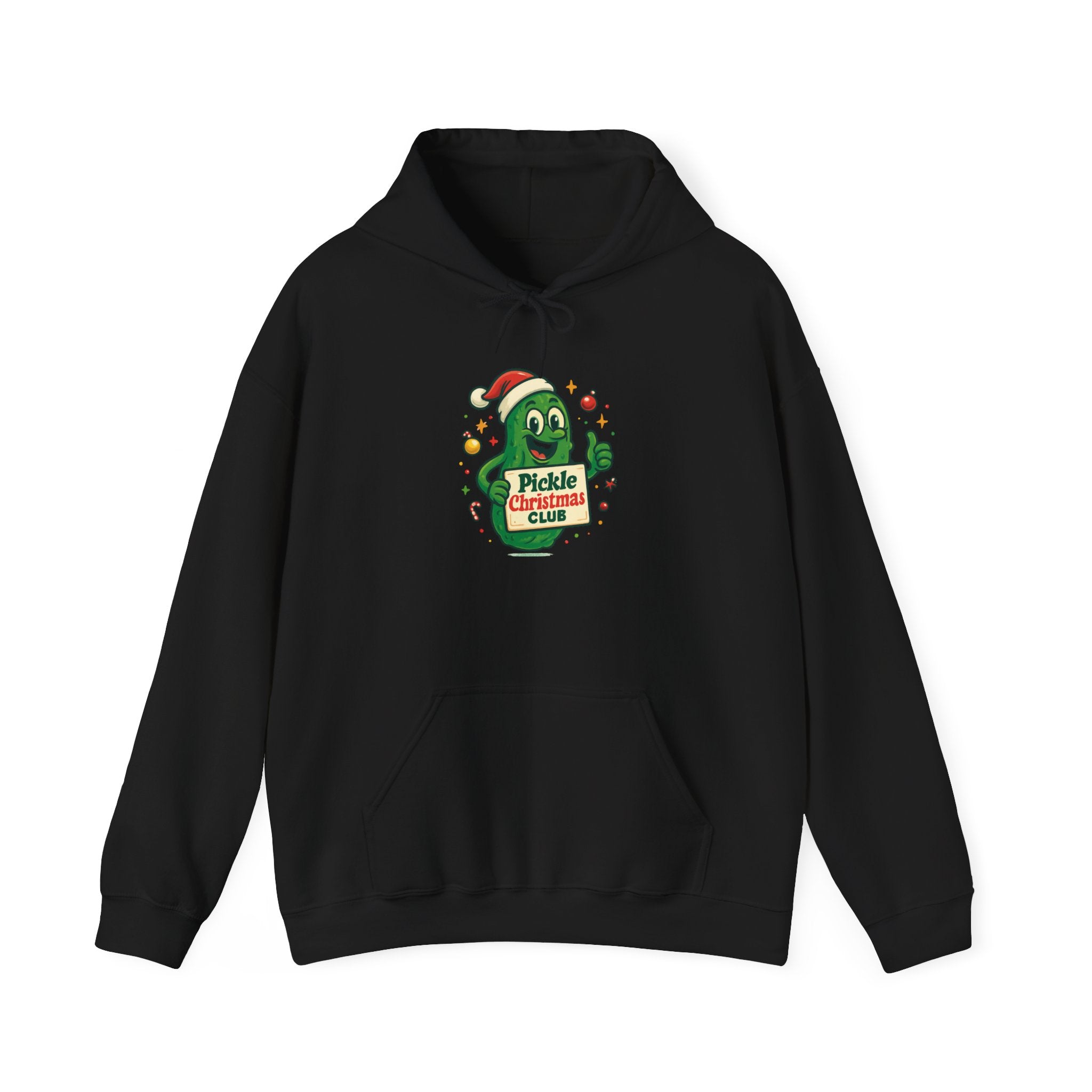 This cozy hooded sweatshirt brings a playful holiday mood to chilly nights. A cheerful, cartoon pickle wearing a Santa hat and surrounded by ornaments is printed on the chest with bright, festive colors and crisp detail. The roomy kangaroo pocket and double-lined hood make it easy to curl up with a mug of cocoa or head out to carol or tree-lighting events. It carries a relaxed, classic fit that layers well over tees and flannels — great for people who like to celebrate the season with a little humor and a lot of warmth. Ethically grown-cotton blend fabric feels soft against the skin and holds prints well, so the design keeps its pop through washes. Whether you’re joining a quirky holiday party, running winter errands, or hanging by the fire, this hoodie adds a lighthearted, merry touch to the day.