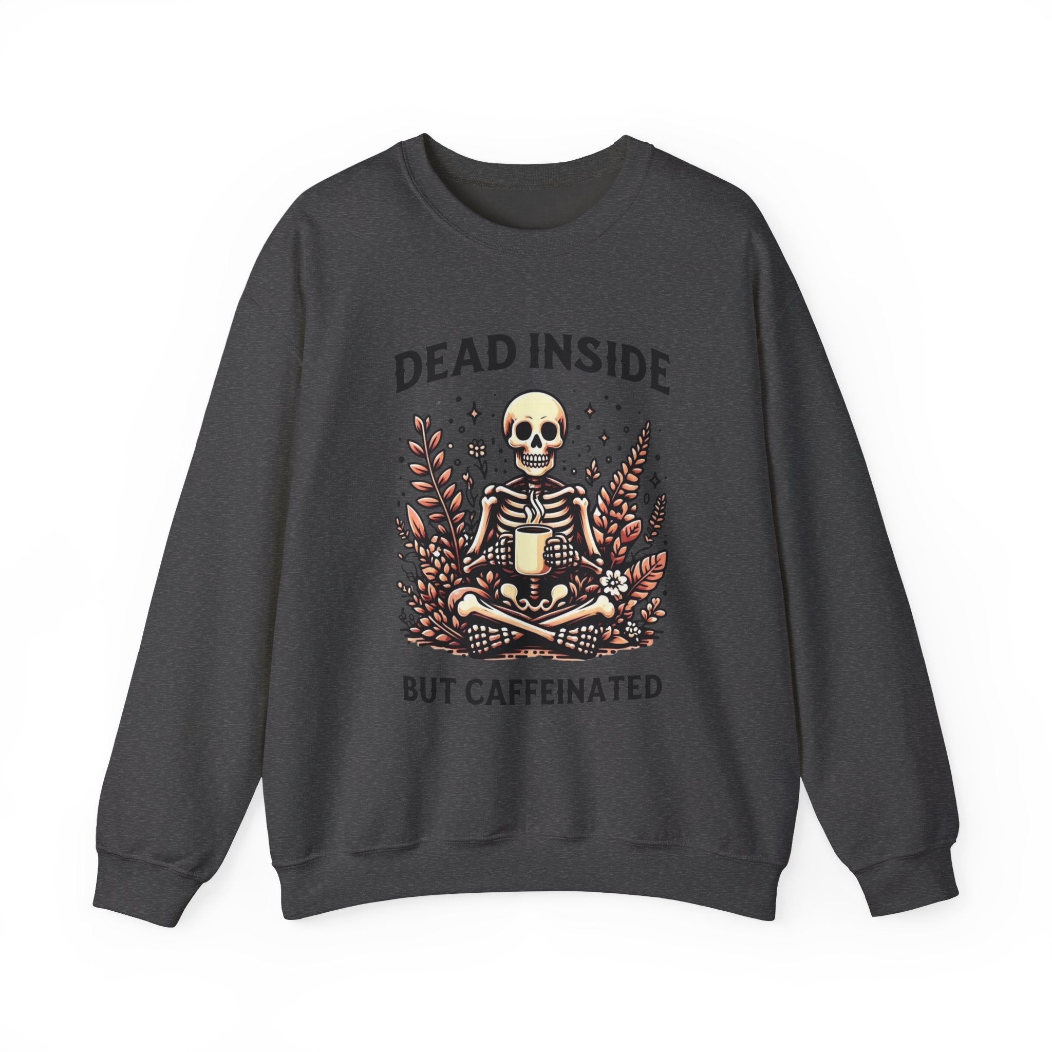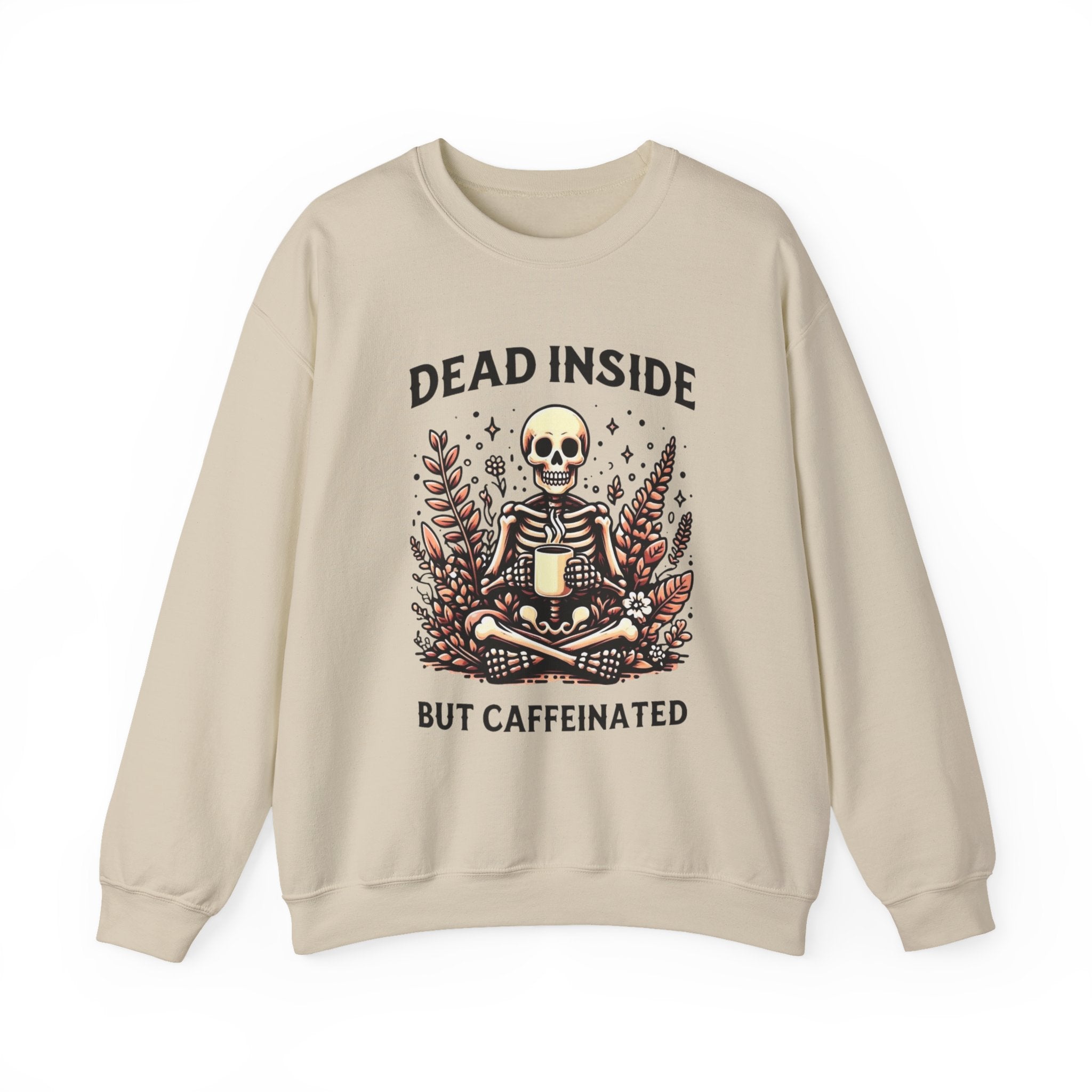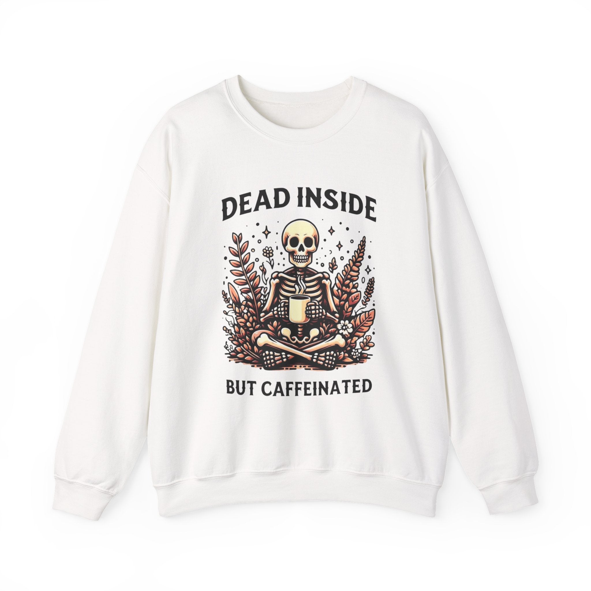 Introducing a cozy and stylish crewneck sweatshirt by Gildan that embodies a playful yet relatable vibe, perfect for those who feel a bit "dead inside" but still find joy in their caffeine fix. This versatile sweatshirt is crafted for comfort and can easily become your go-to layering piece for chilly days or lounging at home. Ideal for coffee lovers, students, or anyone who appreciates humor in their wardrobe, this cozy crewneck makes for an excellent gift during popular celebrations such as Halloween, festive gatherings, or even virtual coffee dates. Its unique design allows you to express your personality while staying warm, making any occasion a bit more memorable.