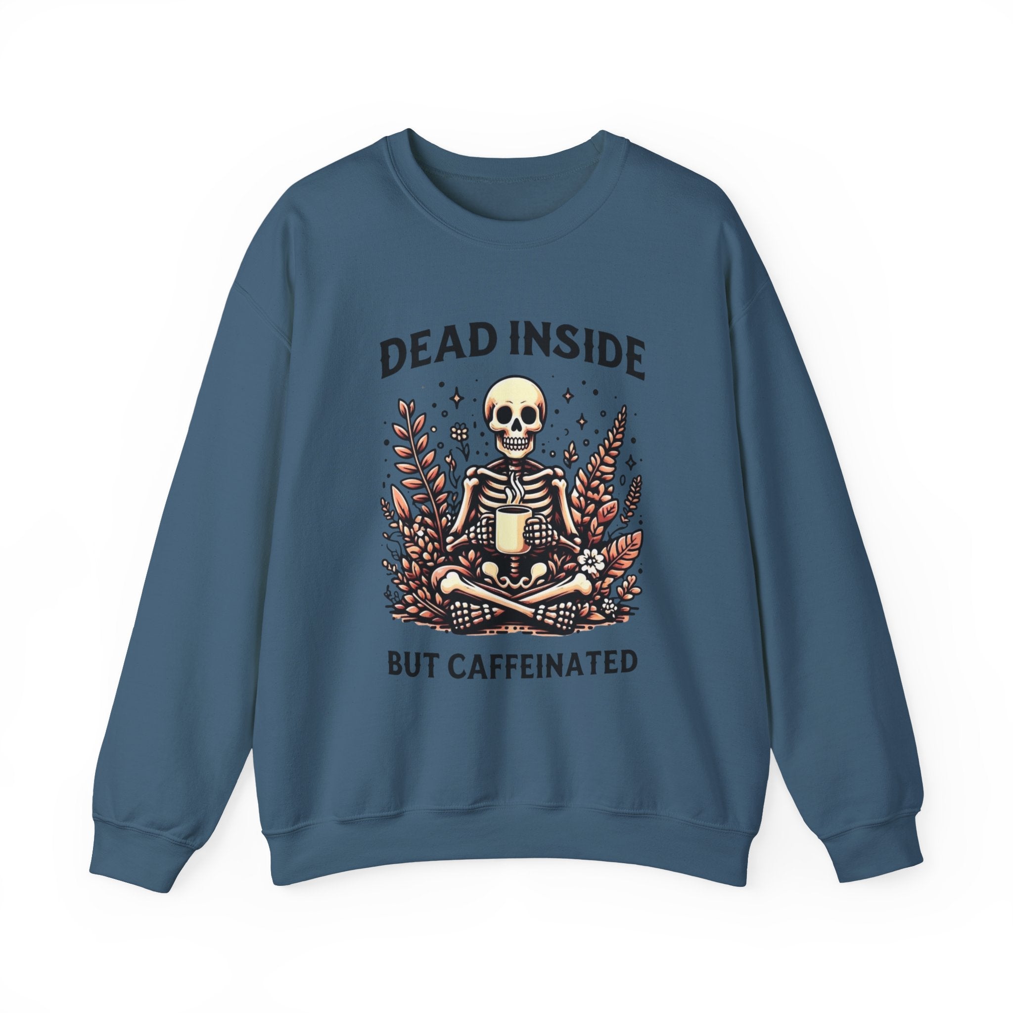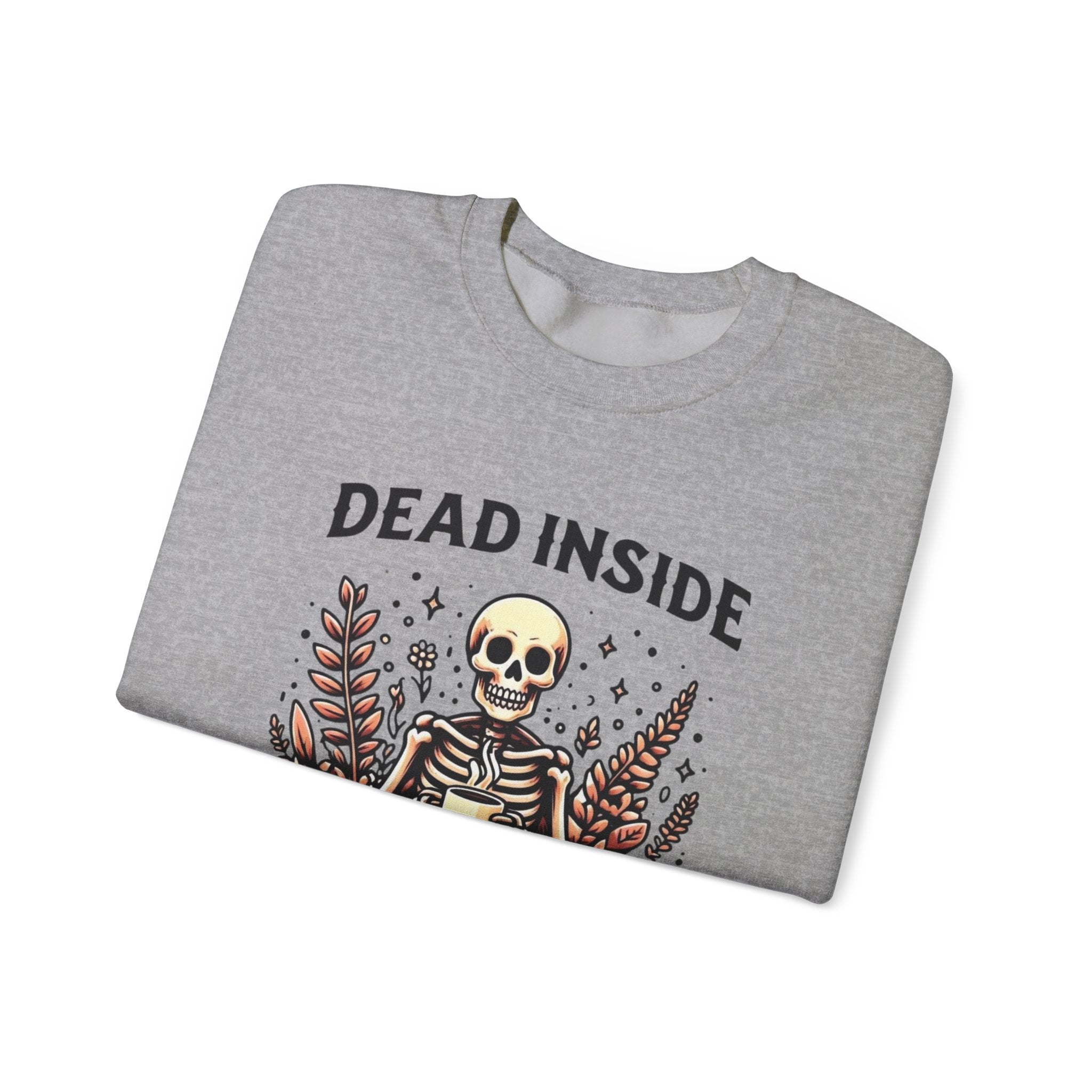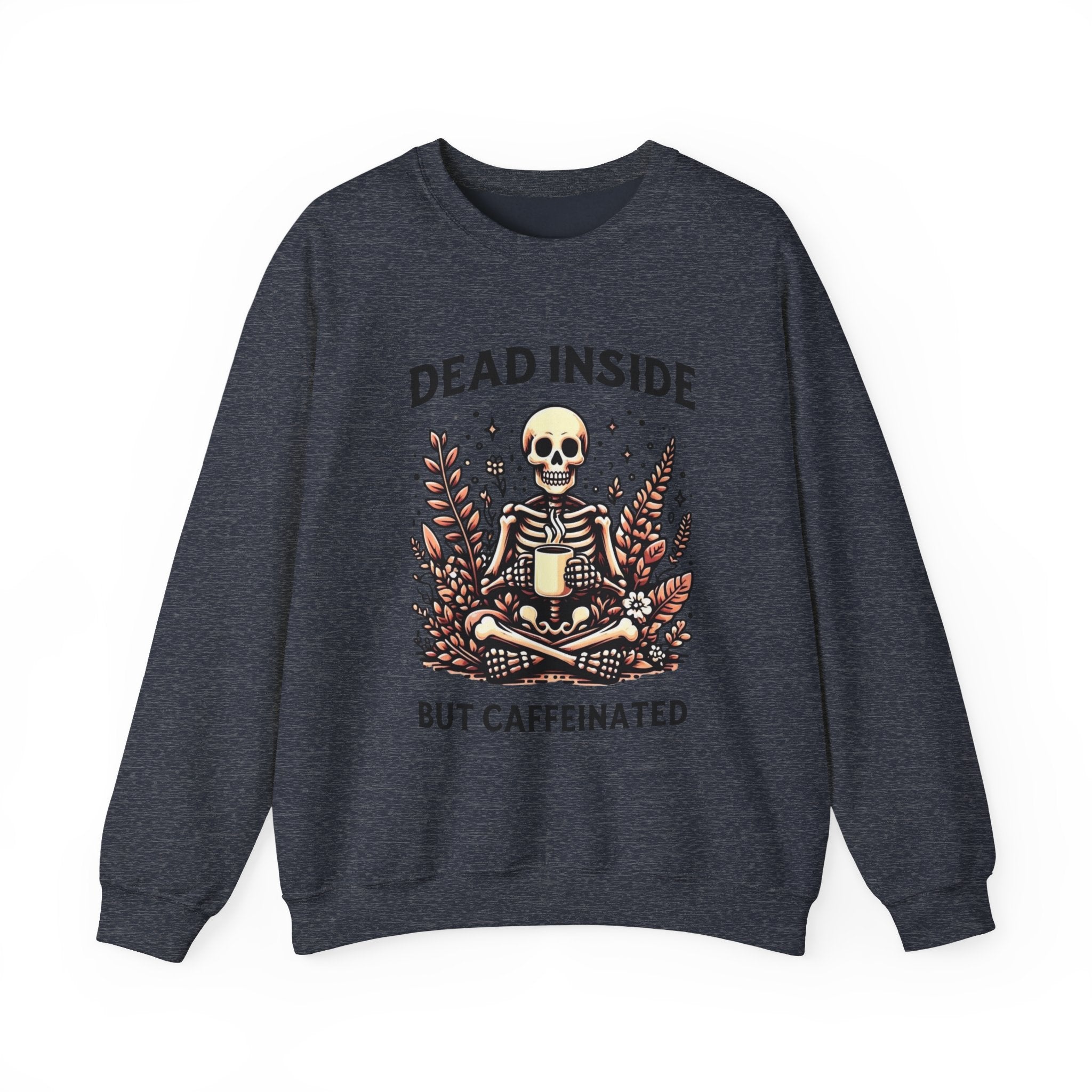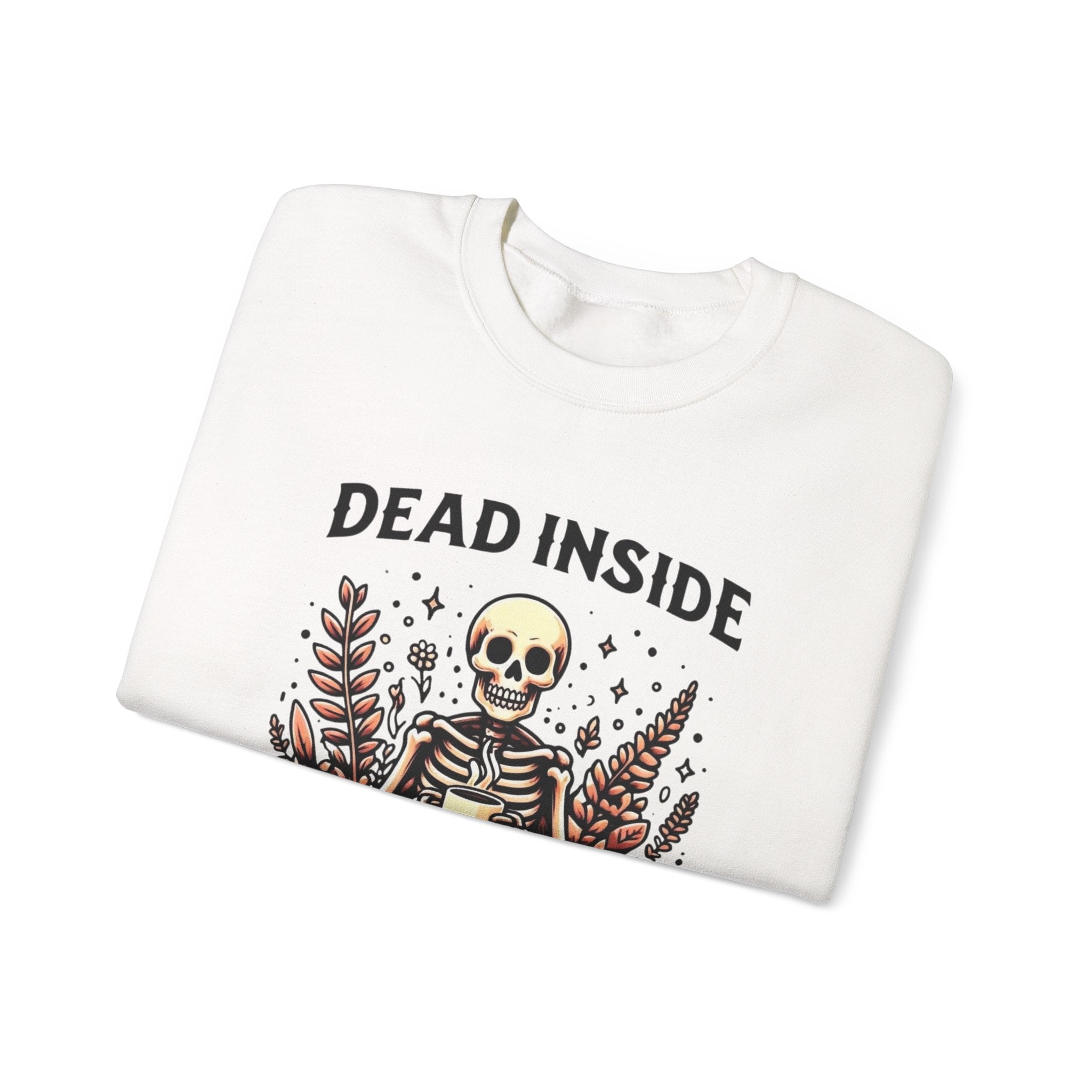 Introducing a cozy and stylish crewneck sweatshirt by Gildan that embodies a playful yet relatable vibe, perfect for those who feel a bit "dead inside" but still find joy in their caffeine fix. This versatile sweatshirt is crafted for comfort and can easily become your go-to layering piece for chilly days or lounging at home. Ideal for coffee lovers, students, or anyone who appreciates humor in their wardrobe, this cozy crewneck makes for an excellent gift during popular celebrations such as Halloween, festive gatherings, or even virtual coffee dates. Its unique design allows you to express your personality while staying warm, making any occasion a bit more memorable.