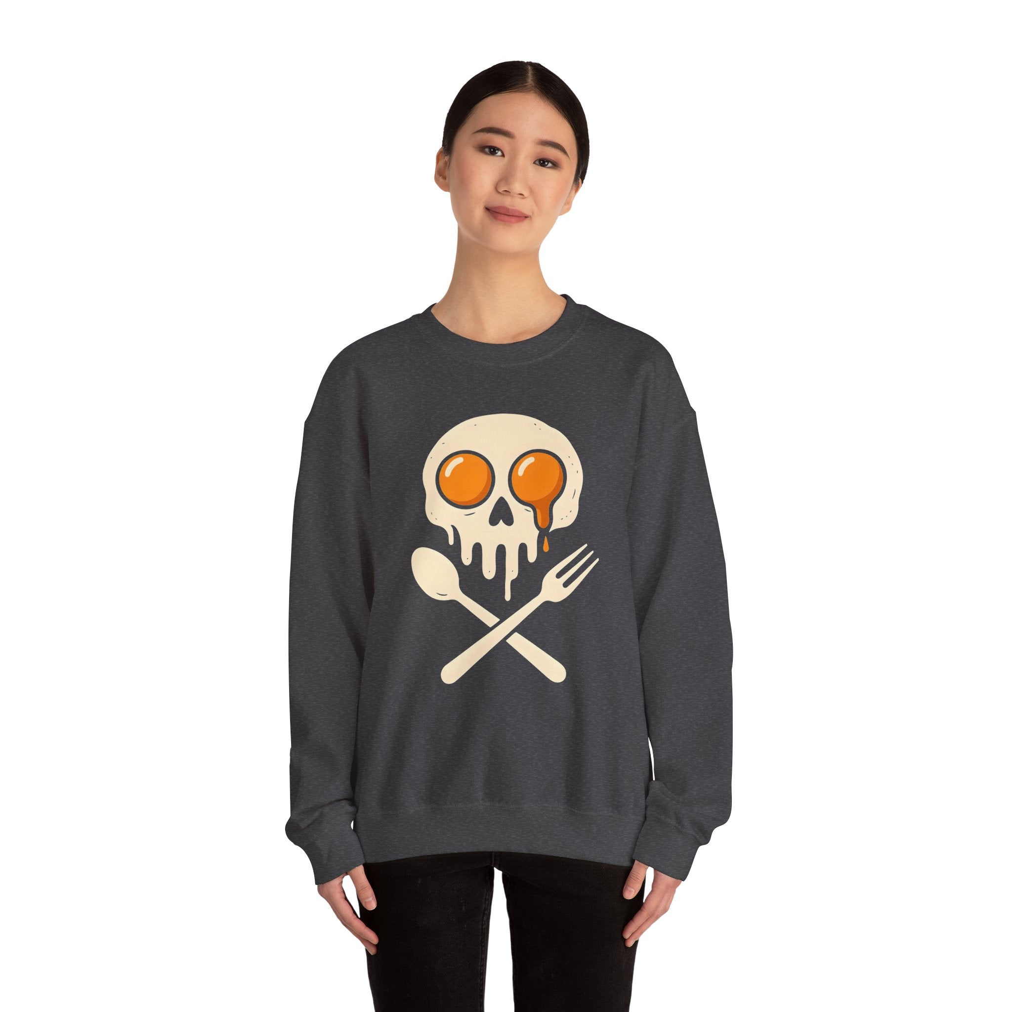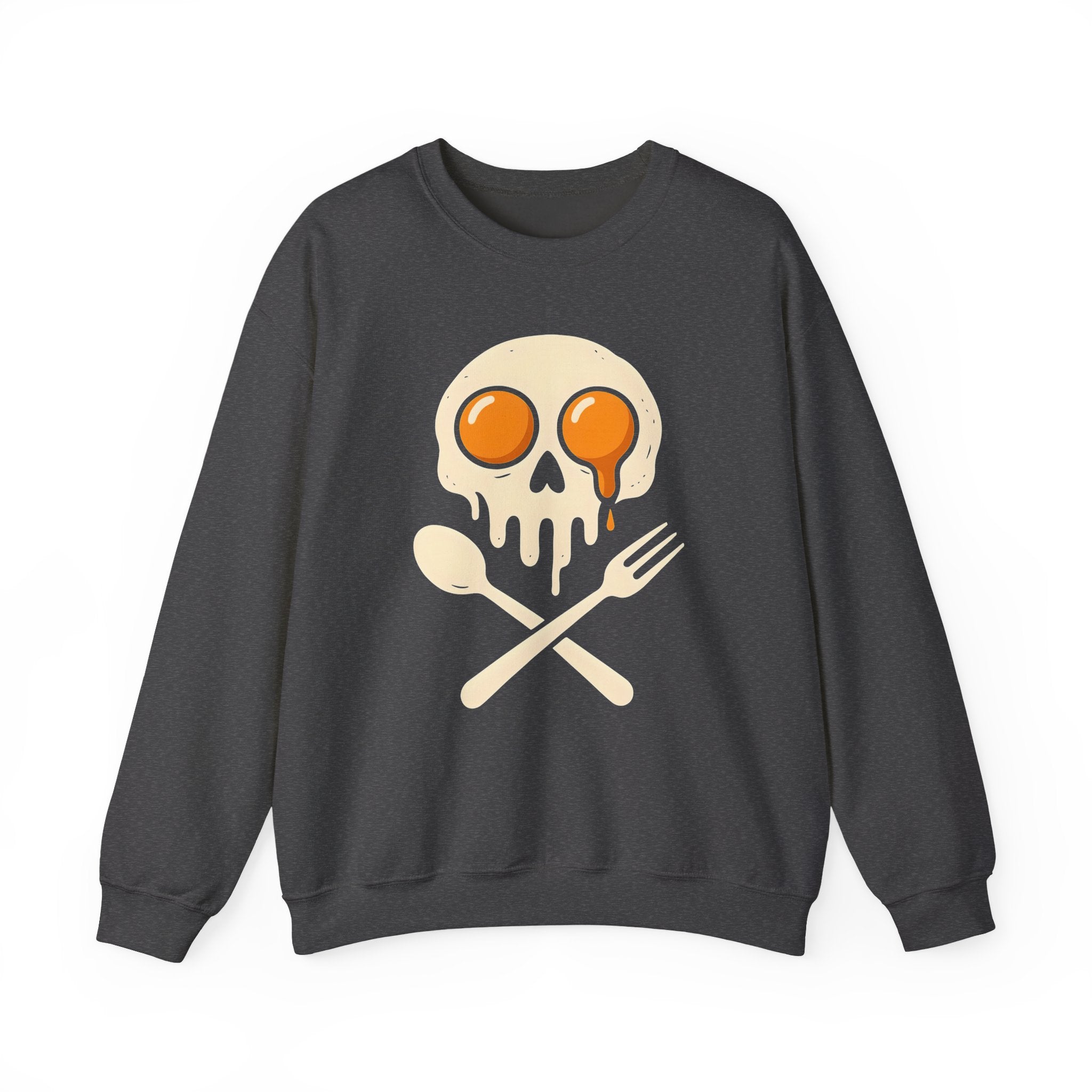 Skull & Fork Sweatshirt - Edgy Unisex Crewneck, Perfect for Food Lovers, Casual Wear, Halloween, Unique Gift
