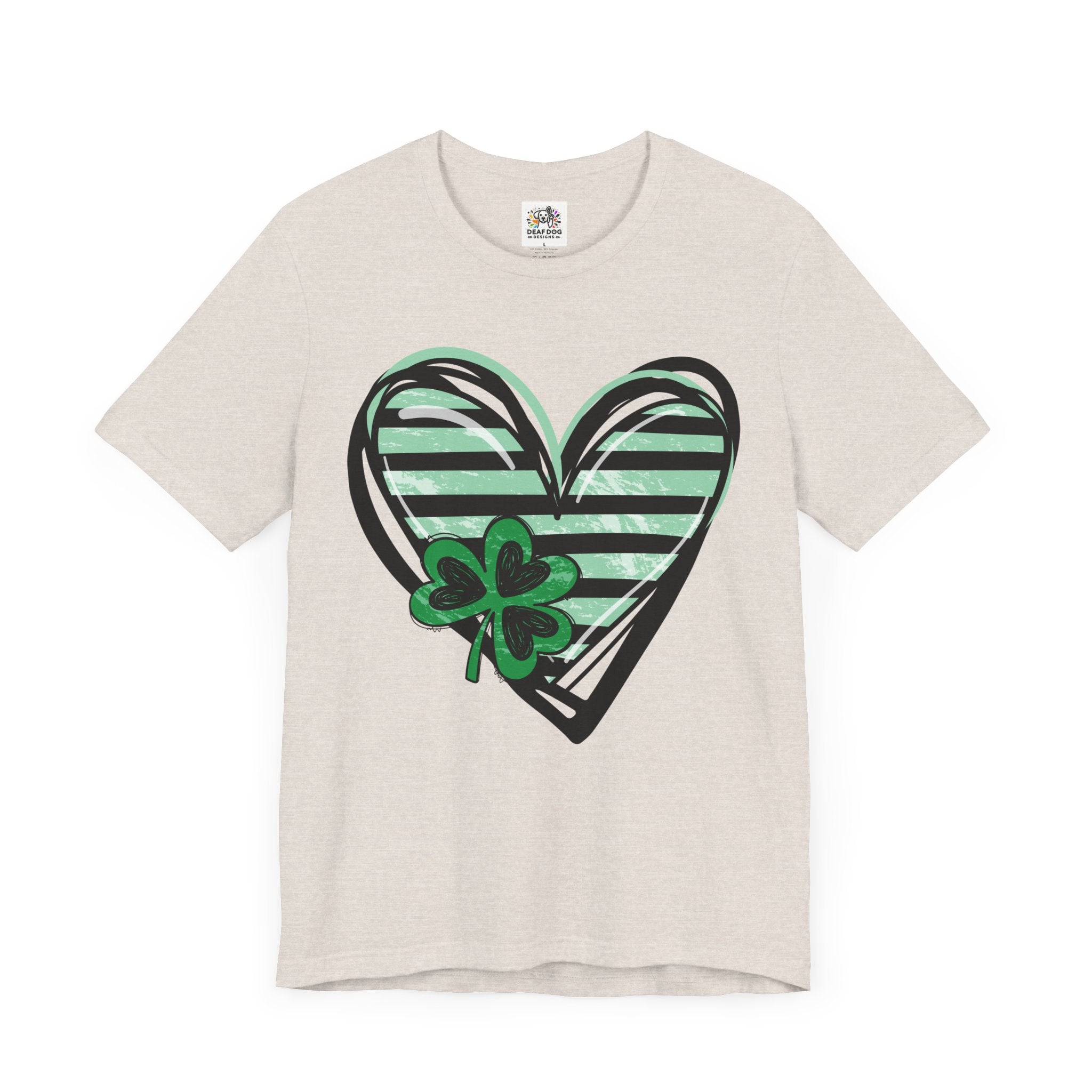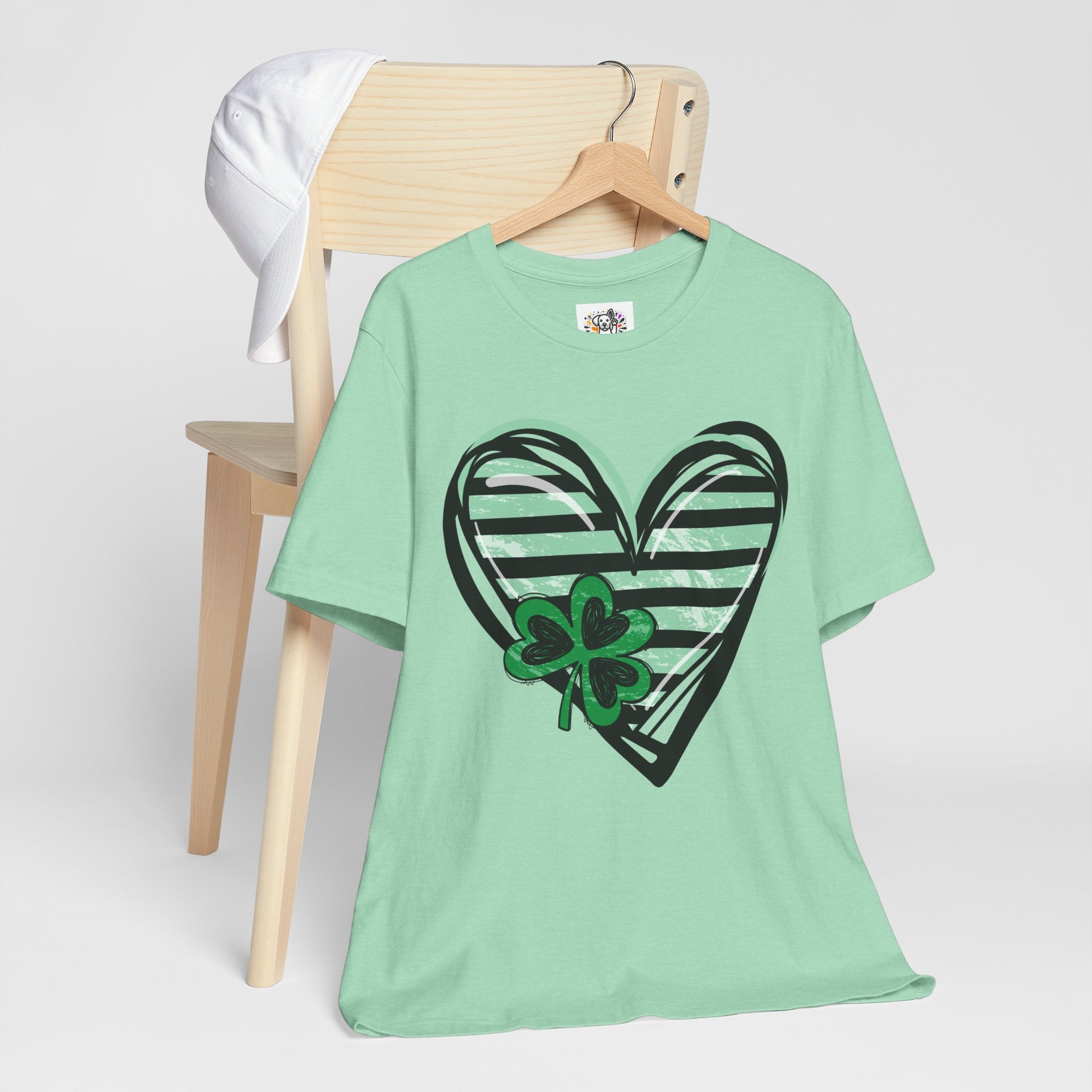 Introducing our versatile Unisex Jersey Short Sleeve Tee by Bella Canva, perfect for those who love both comfort and style. This tee features a charming design with a playful heart and a lucky four-leaf clover. The lightweight, breathable fabric makes it ideal for all-day wear, whether you’re running errands or enjoying a day out with friends. Embrace the spirit of St. Patrick's Day, casual gatherings, or simply add a touch of cheer to your wardrobe year-round!