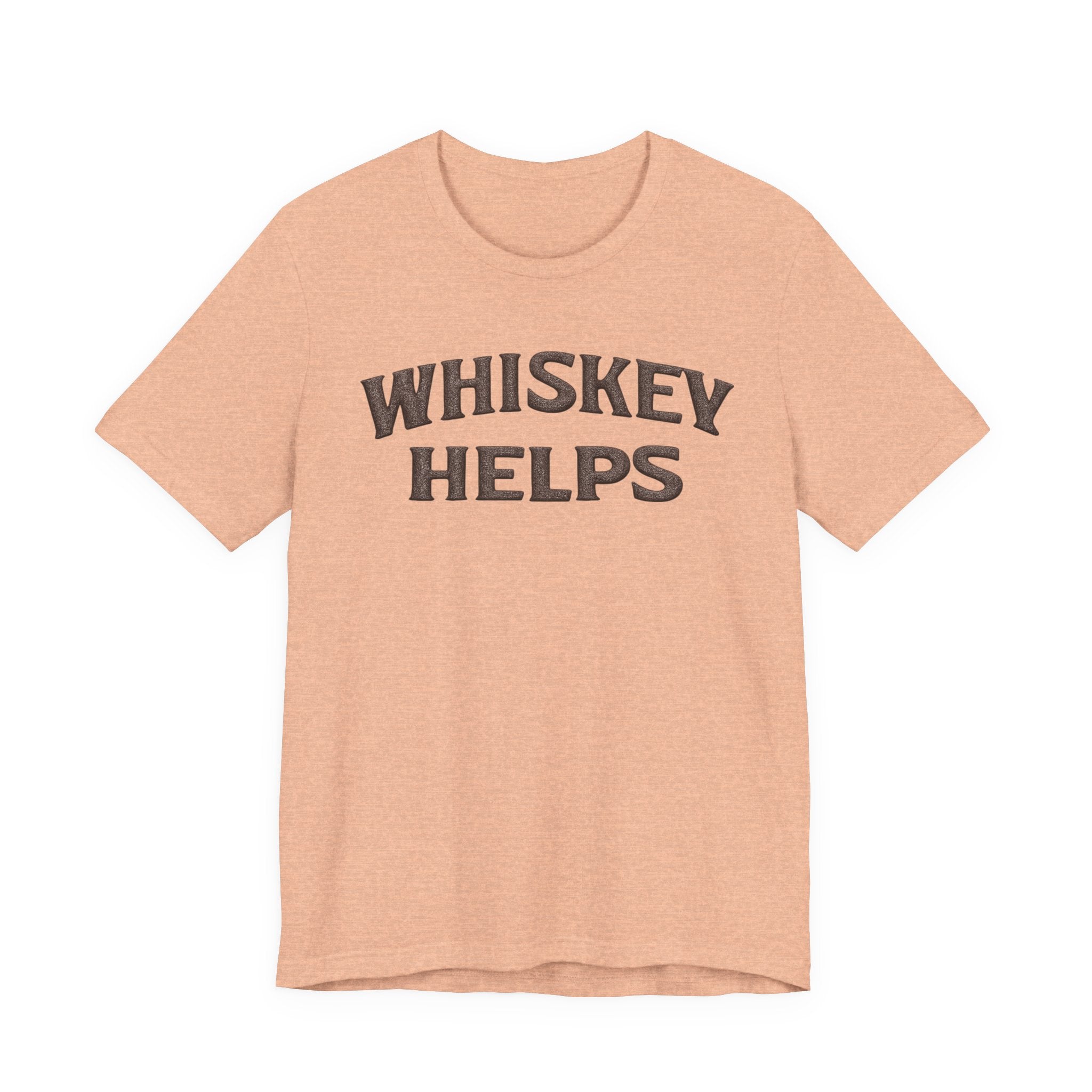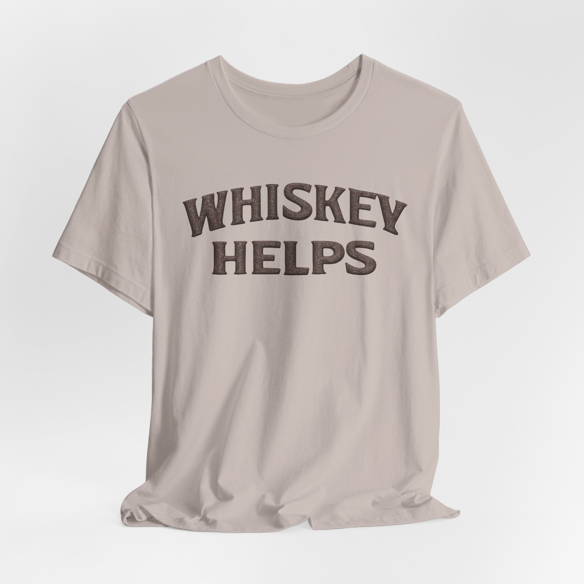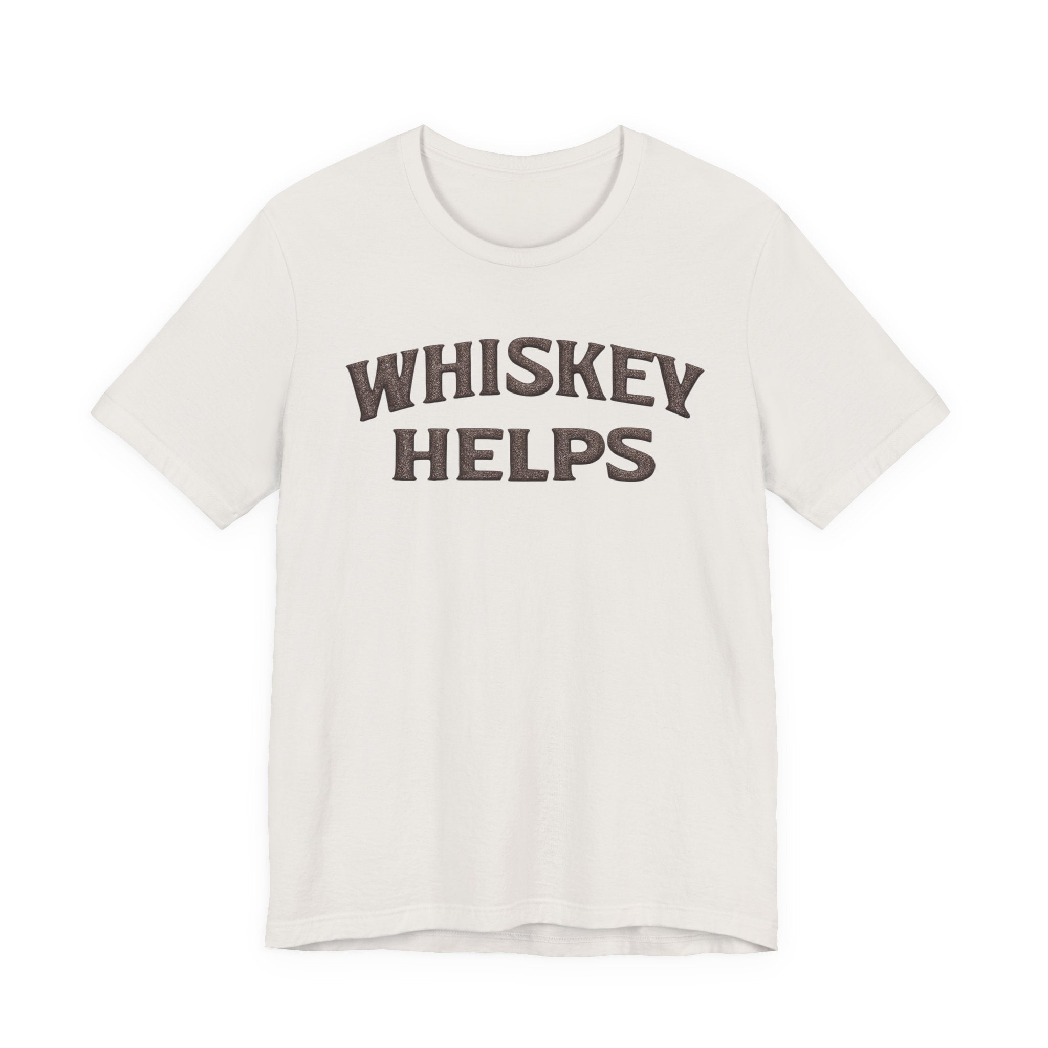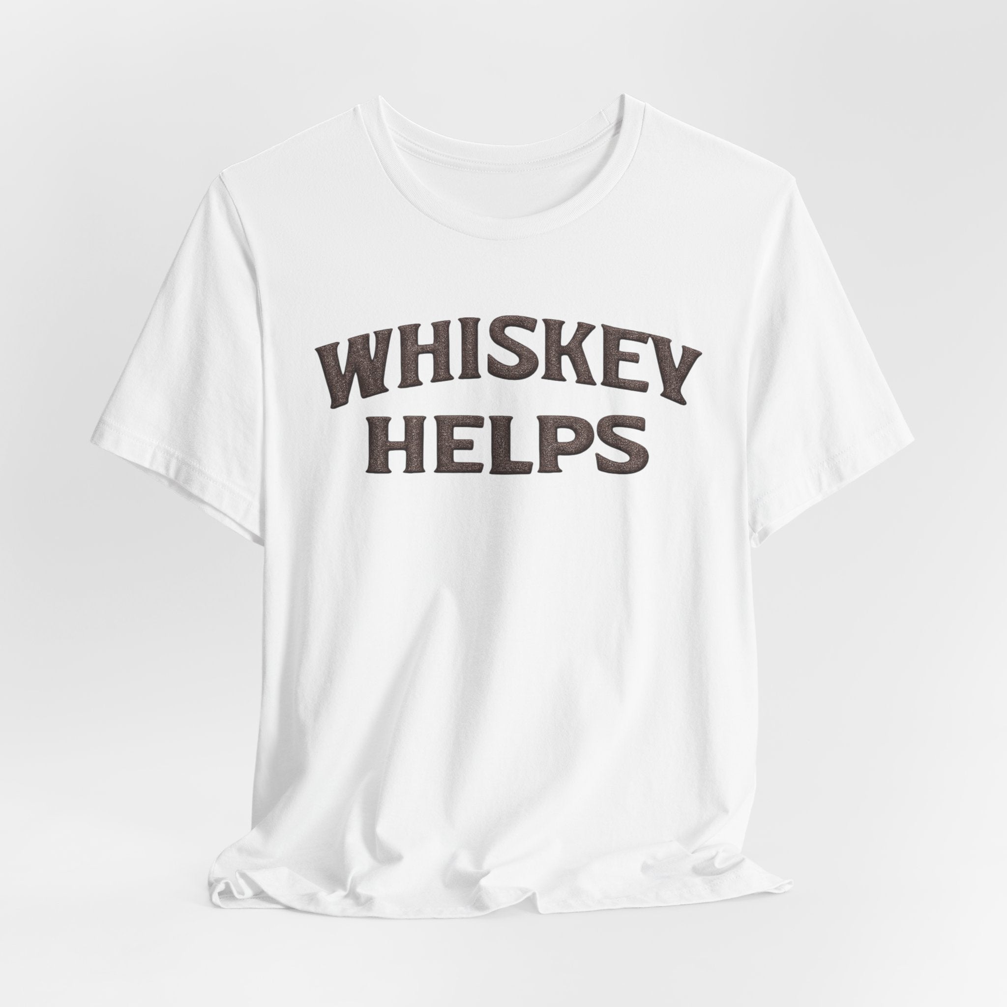 Lightweight, soft, and built for everyday wear — this classic crew tee carries a warm, wry message across the chest that reads “WHISKEY HELPS.” The vintage-inspired block lettering sits centered on a breathable 100% Airlume combed and ring-spun cotton canvas (with blended options in heathers), giving a lived-in look without sacrificing structure. Subtle construction details — side seams, ribbed knit collar with seam, shoulder tape and a tear-away label — keep the shirt comfortable and long-lasting. Ethically made and REACH certified, it layers easily under a flannel or wears solo on summer nights when friends gather for low-key conversation and slow sips.