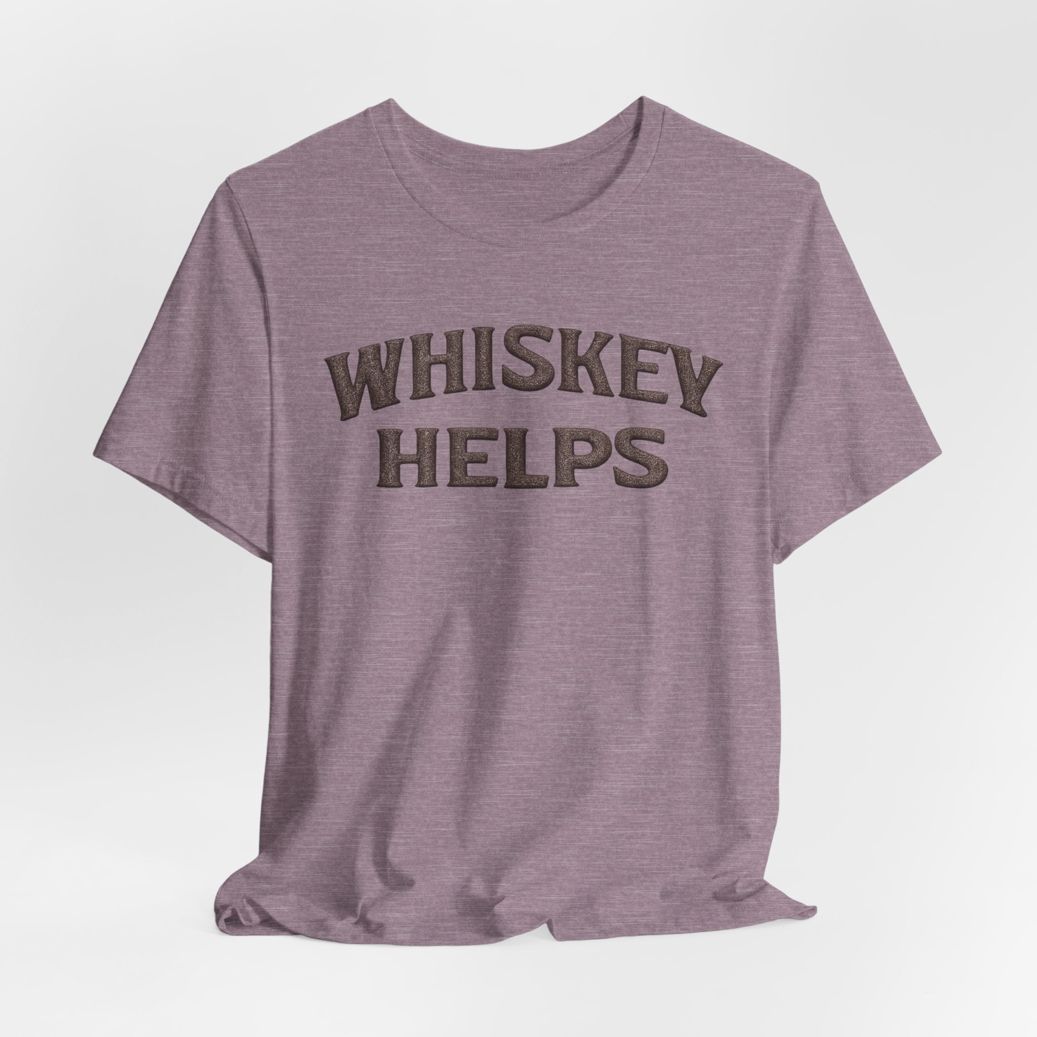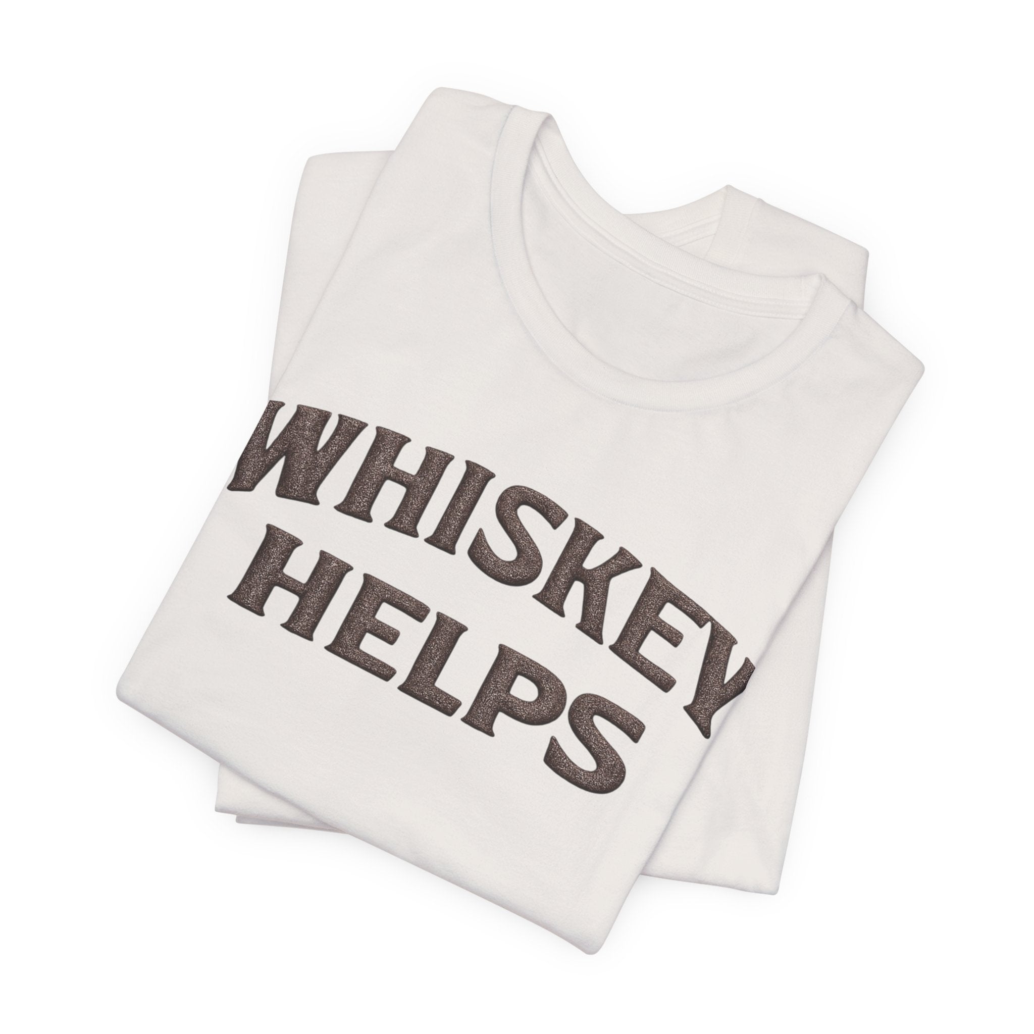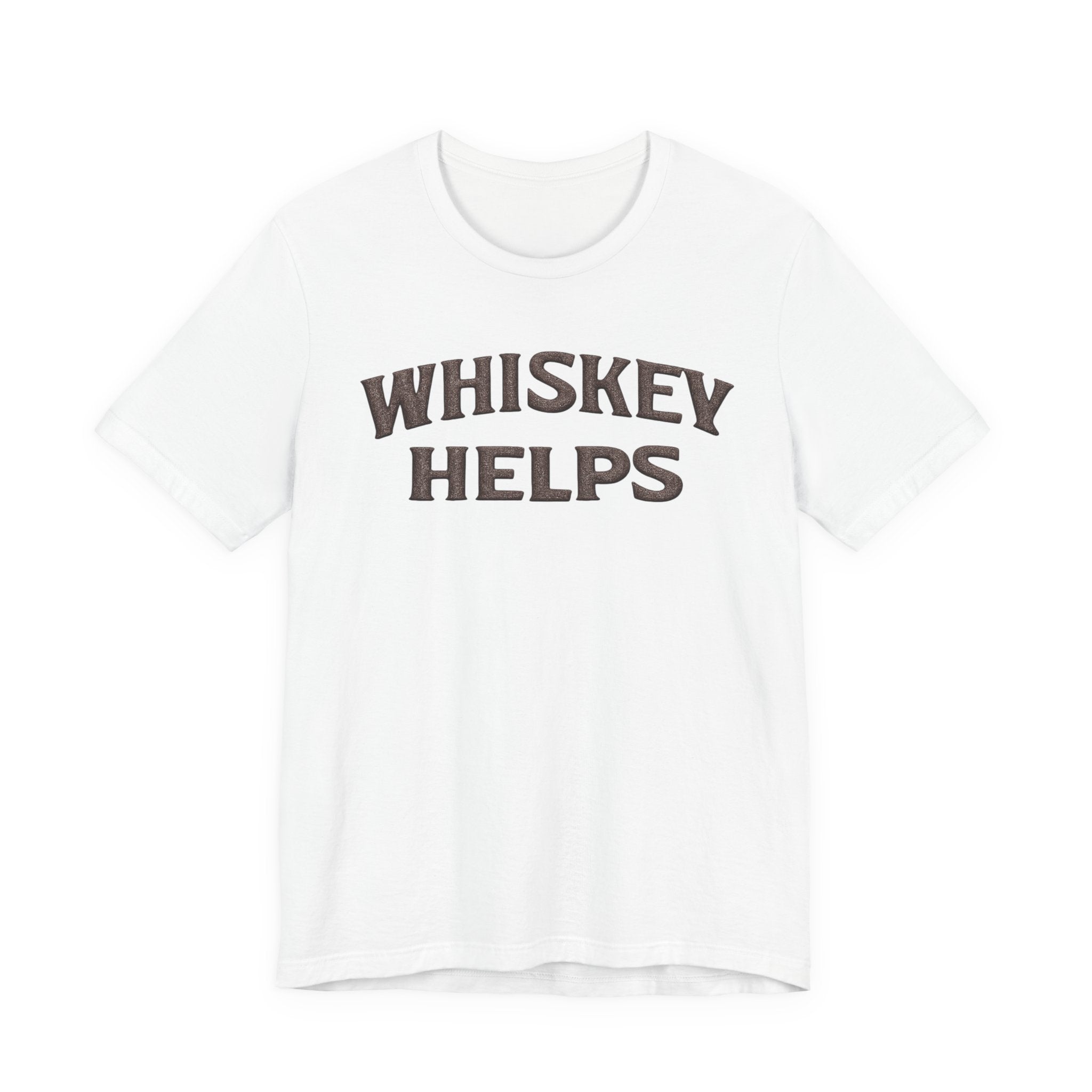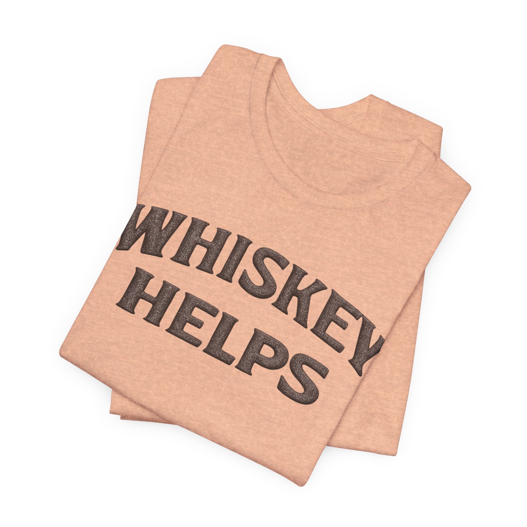 Lightweight, soft, and built for everyday wear — this classic crew tee carries a warm, wry message across the chest that reads “WHISKEY HELPS.” The vintage-inspired block lettering sits centered on a breathable 100% Airlume combed and ring-spun cotton canvas (with blended options in heathers), giving a lived-in look without sacrificing structure. Subtle construction details — side seams, ribbed knit collar with seam, shoulder tape and a tear-away label — keep the shirt comfortable and long-lasting. Ethically made and REACH certified, it layers easily under a flannel or wears solo on summer nights when friends gather for low-key conversation and slow sips.