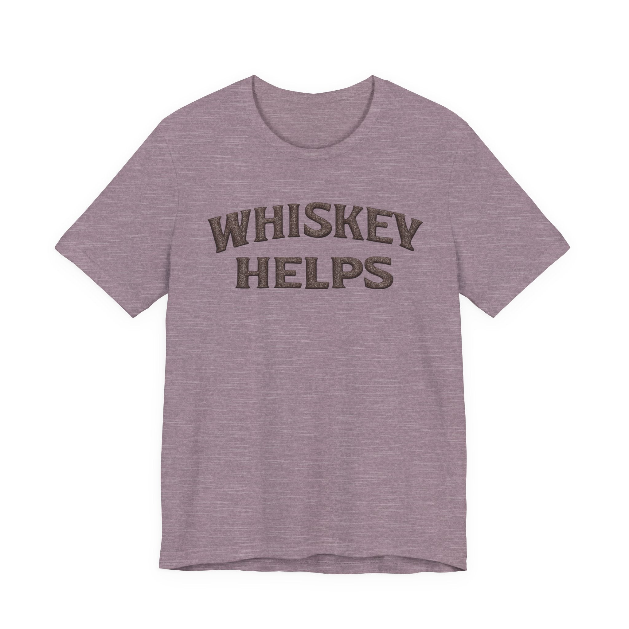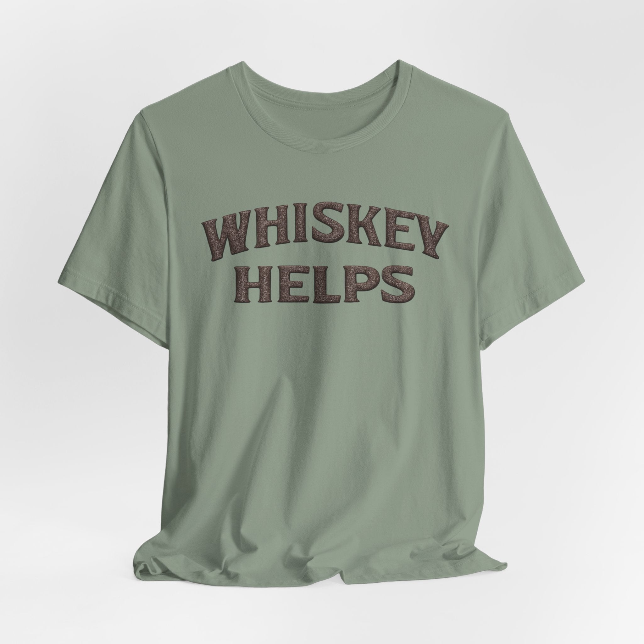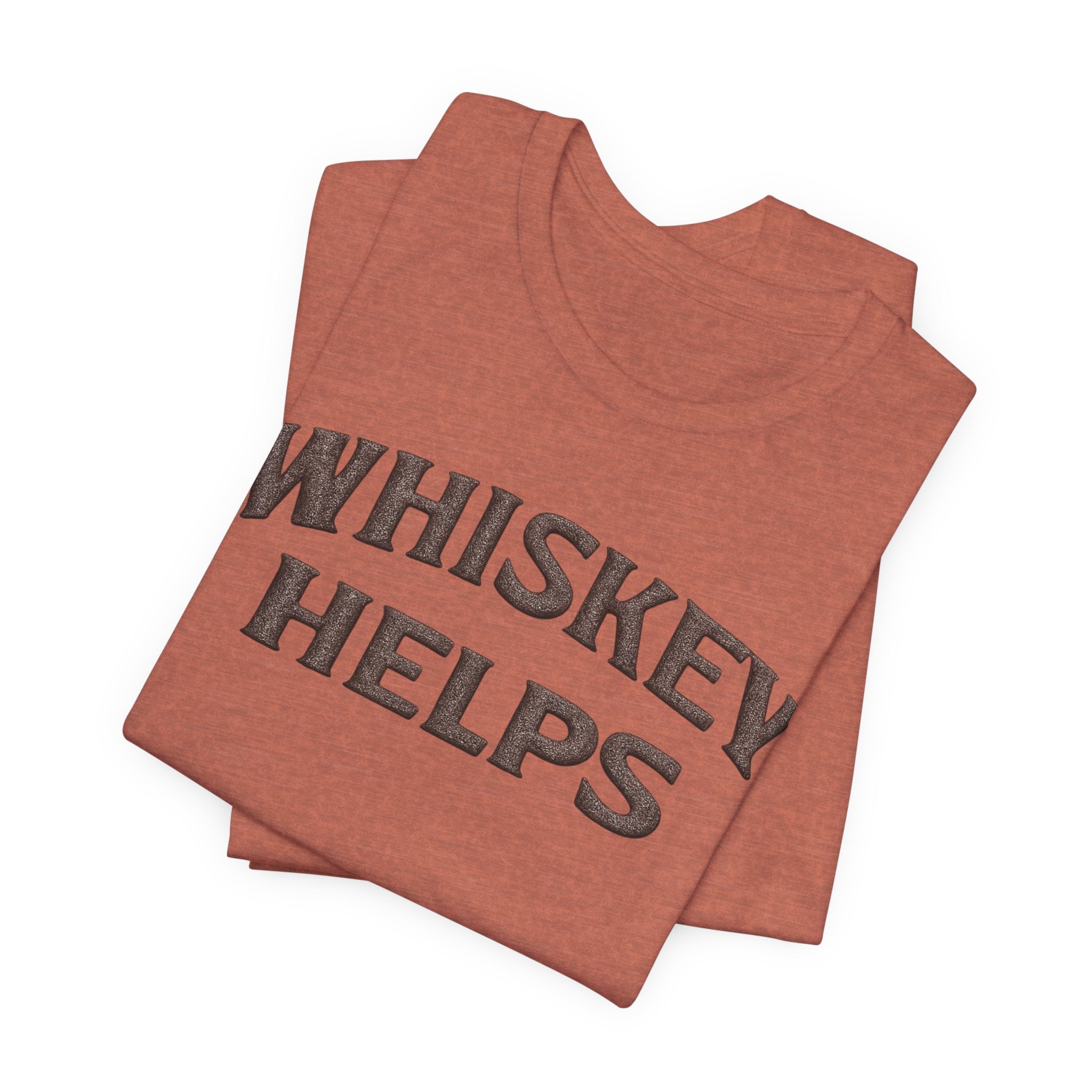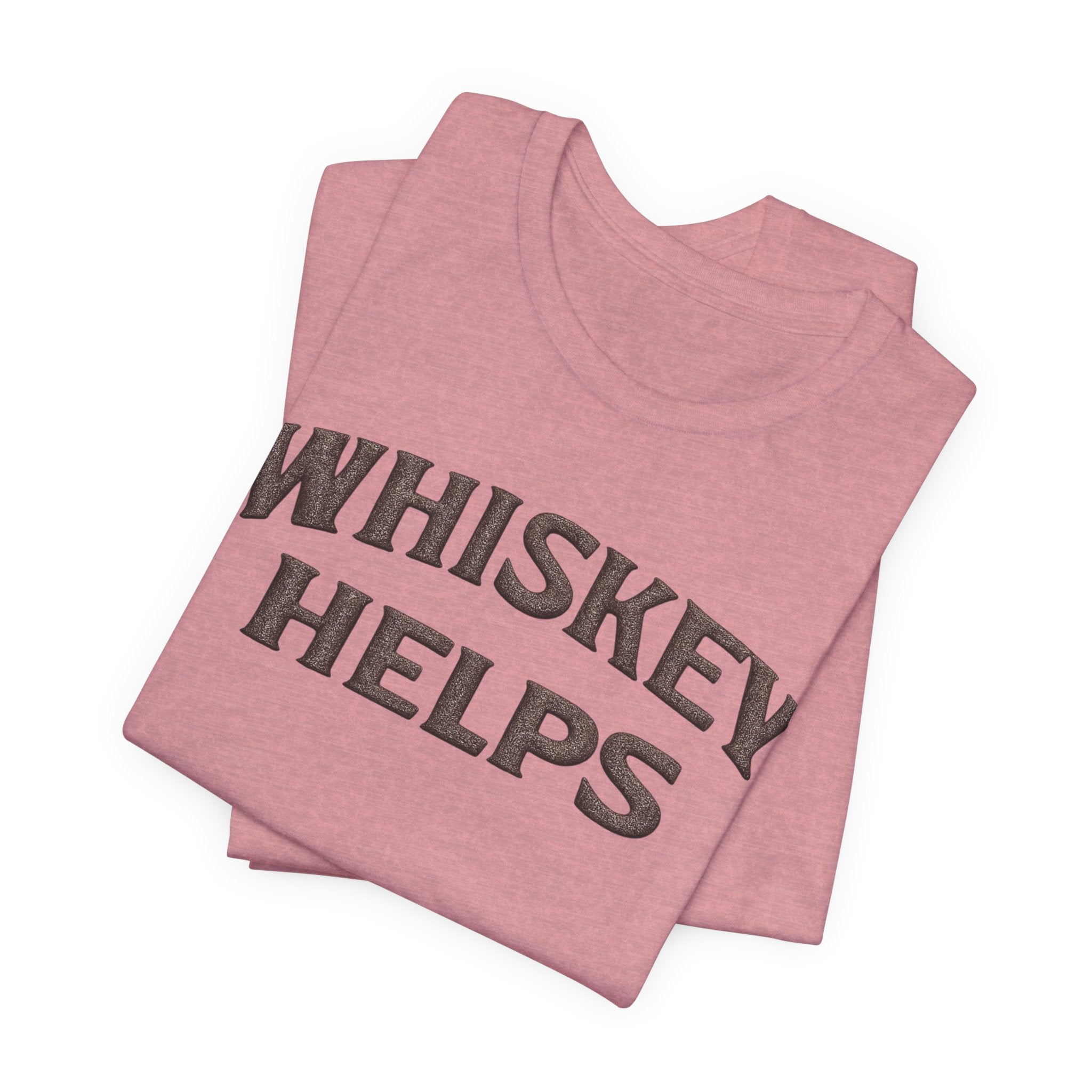 Lightweight, soft, and built for everyday wear — this classic crew tee carries a warm, wry message across the chest that reads “WHISKEY HELPS.” The vintage-inspired block lettering sits centered on a breathable 100% Airlume combed and ring-spun cotton canvas (with blended options in heathers), giving a lived-in look without sacrificing structure. Subtle construction details — side seams, ribbed knit collar with seam, shoulder tape and a tear-away label — keep the shirt comfortable and long-lasting. Ethically made and REACH certified, it layers easily under a flannel or wears solo on summer nights when friends gather for low-key conversation and slow sips.